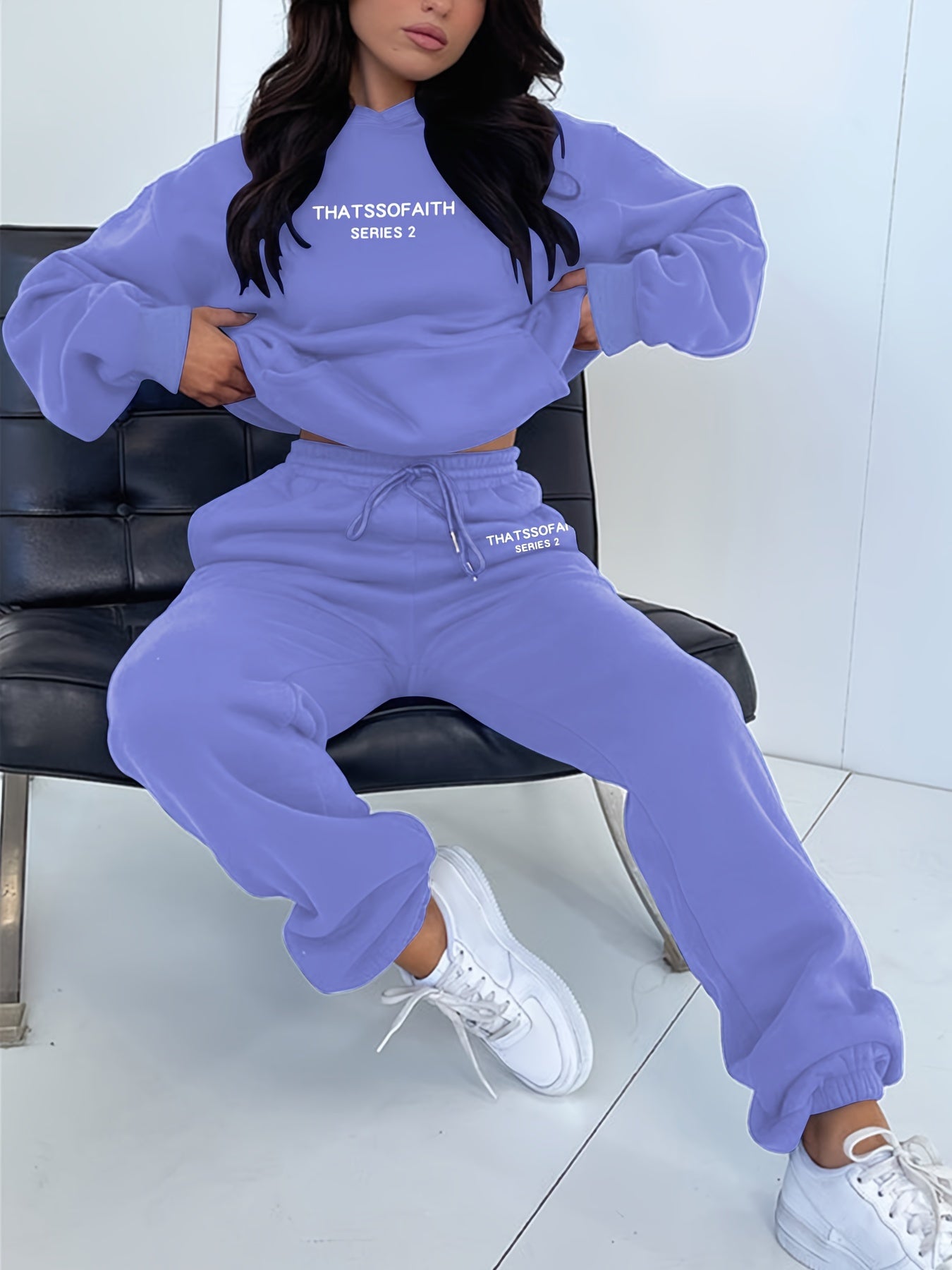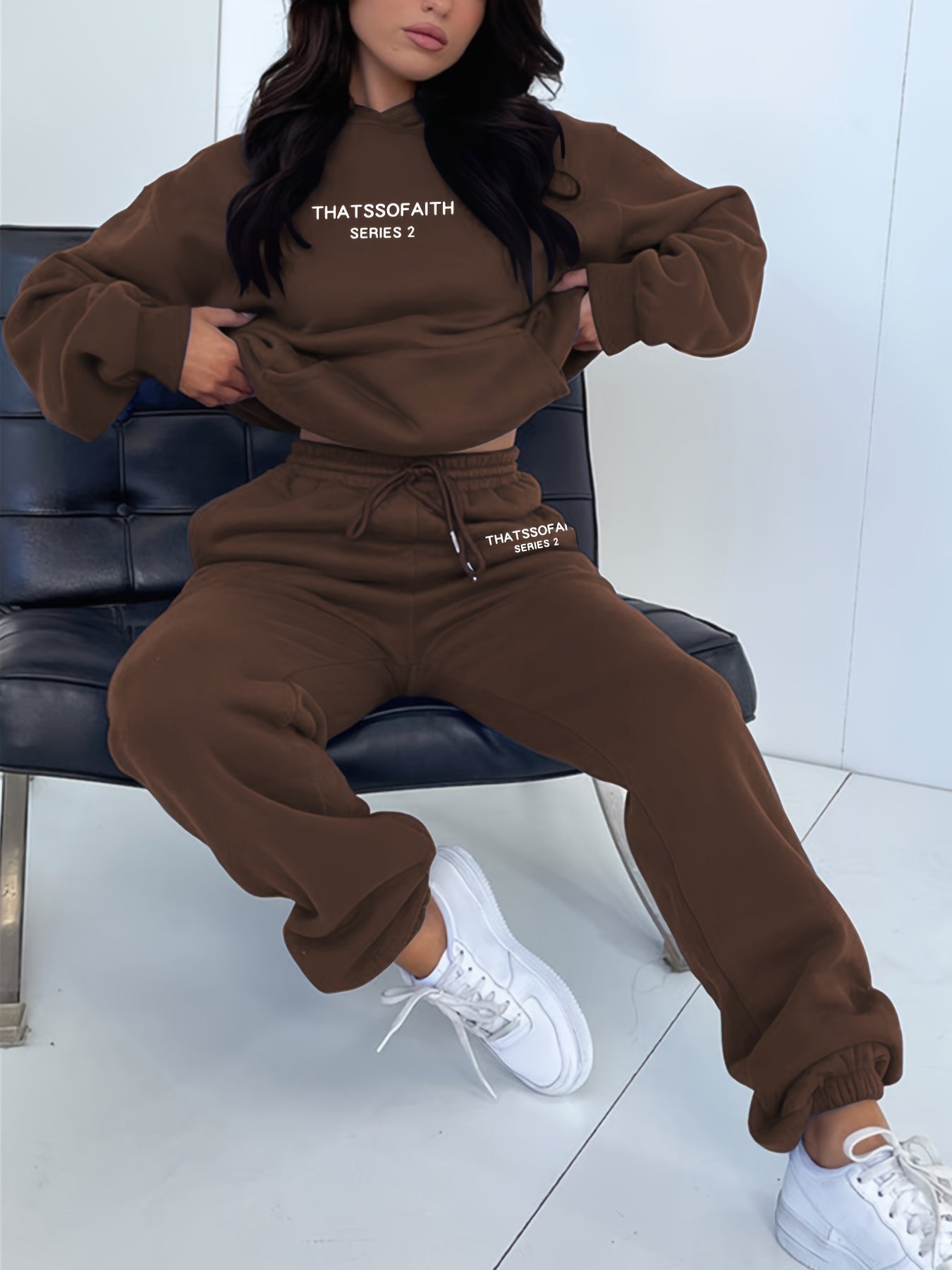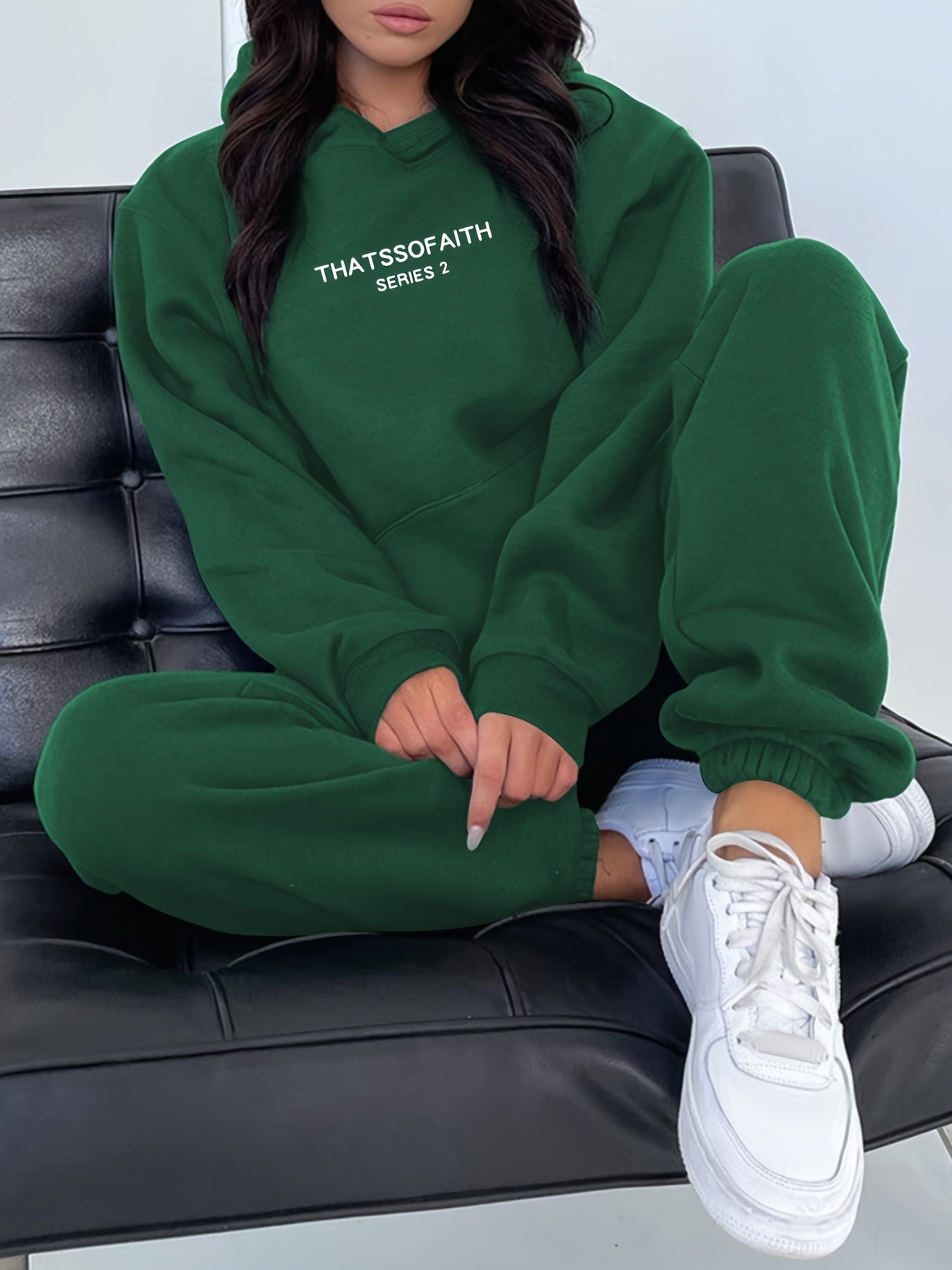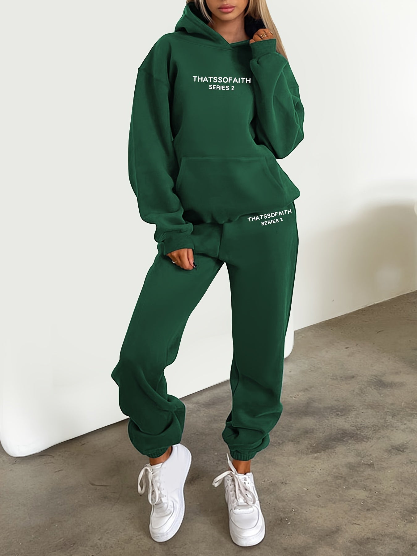 Letter Print Առօրյա երկկտոր հավաքածու, գլխարկով վերնաշապիկներ և պարաններով Jogger շալվարներ, կանացի հագուստ