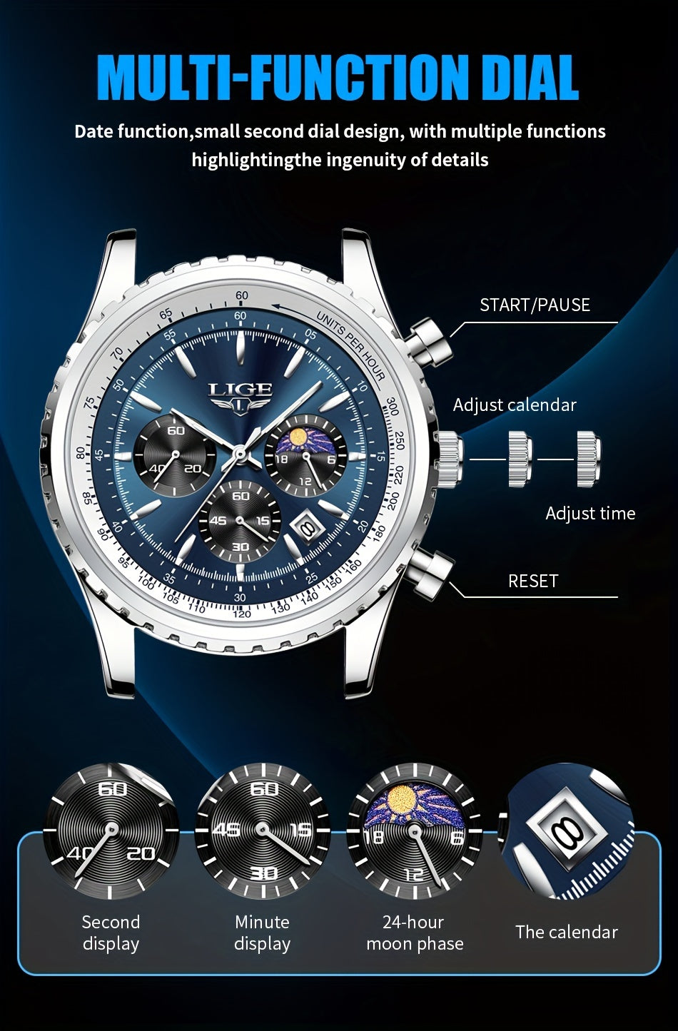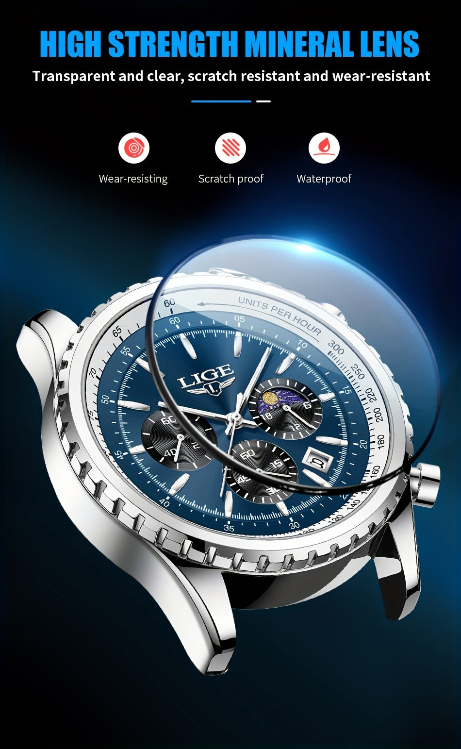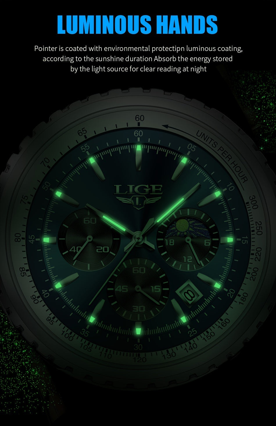 LIGE լավագույն ապրանքանիշի շքեղ նոր քվարցային ժամացույց կանանց համար, լուսավոր նորաձև ժամացույց կանանց համար, ամսաթվի քրոնոգրաֆ սպորտային ձեռքի ժամացույց, տղամարդու ժամացույց