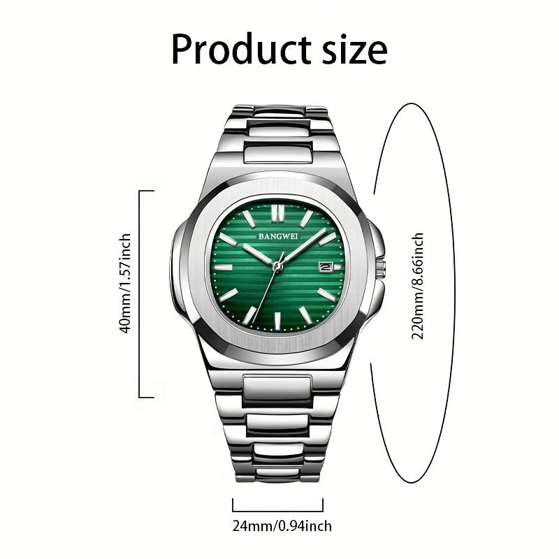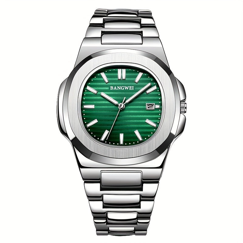 LIGE ունիսեքս չժանգոտվող պողպատից քվարցային ժամացույց՝ կանաչ և սպիտակ ցուցատախտակով, քրոնոգրաֆով, ամսաթվի ցուցիչով, պտտվող շրջանակով, գործնական և սպորտային դիզայնով տղամարդկանց և կանանց համար