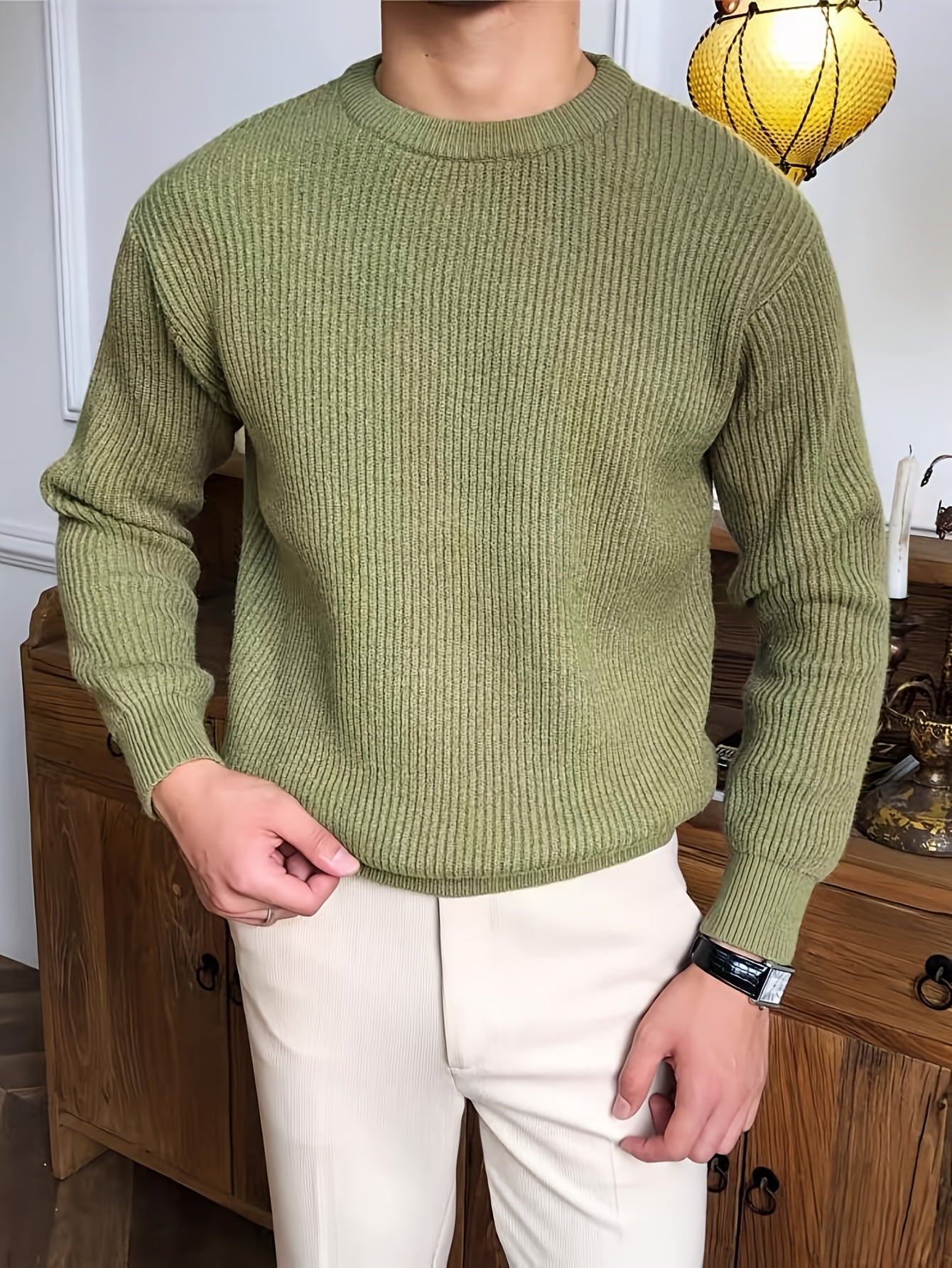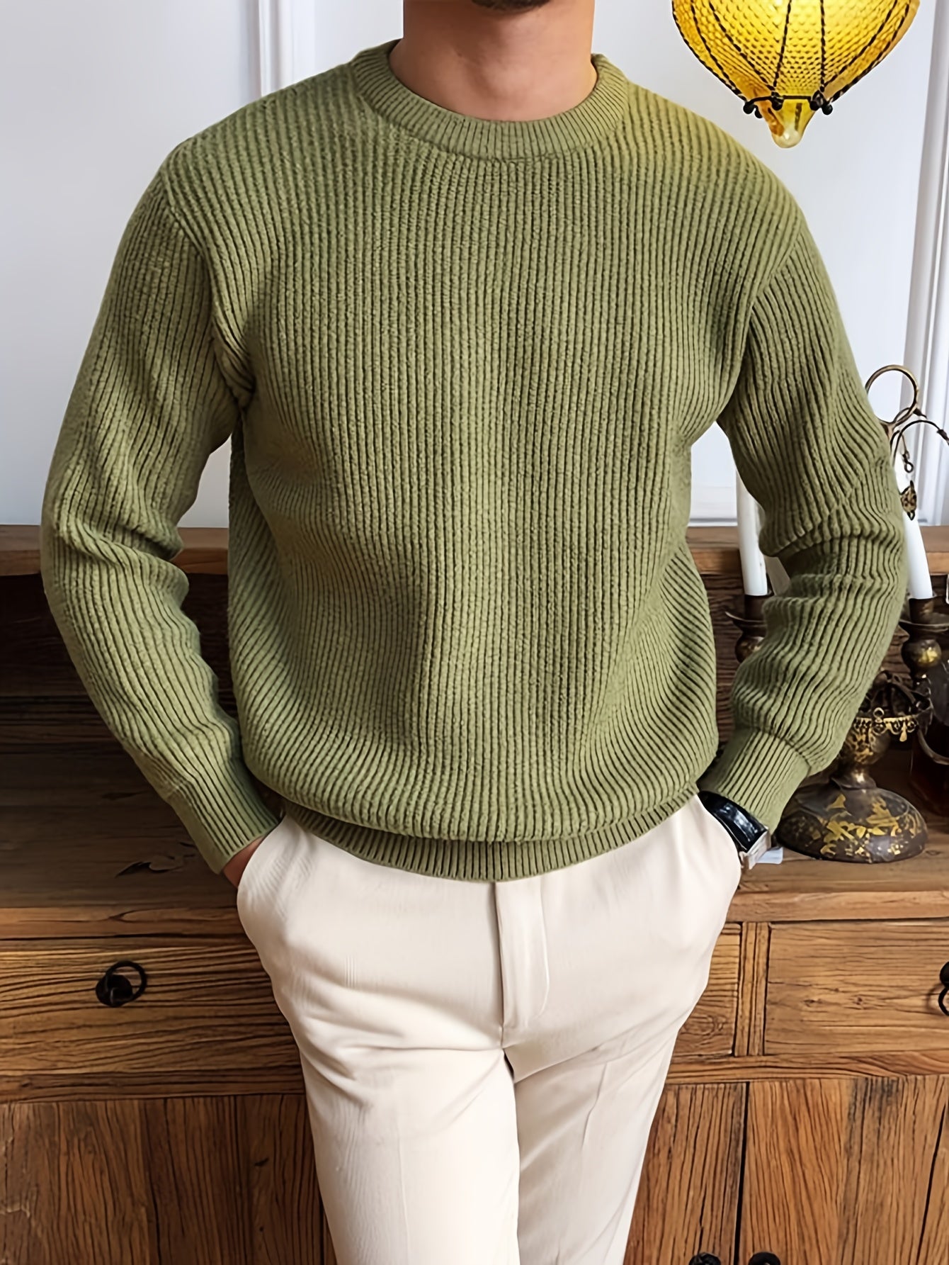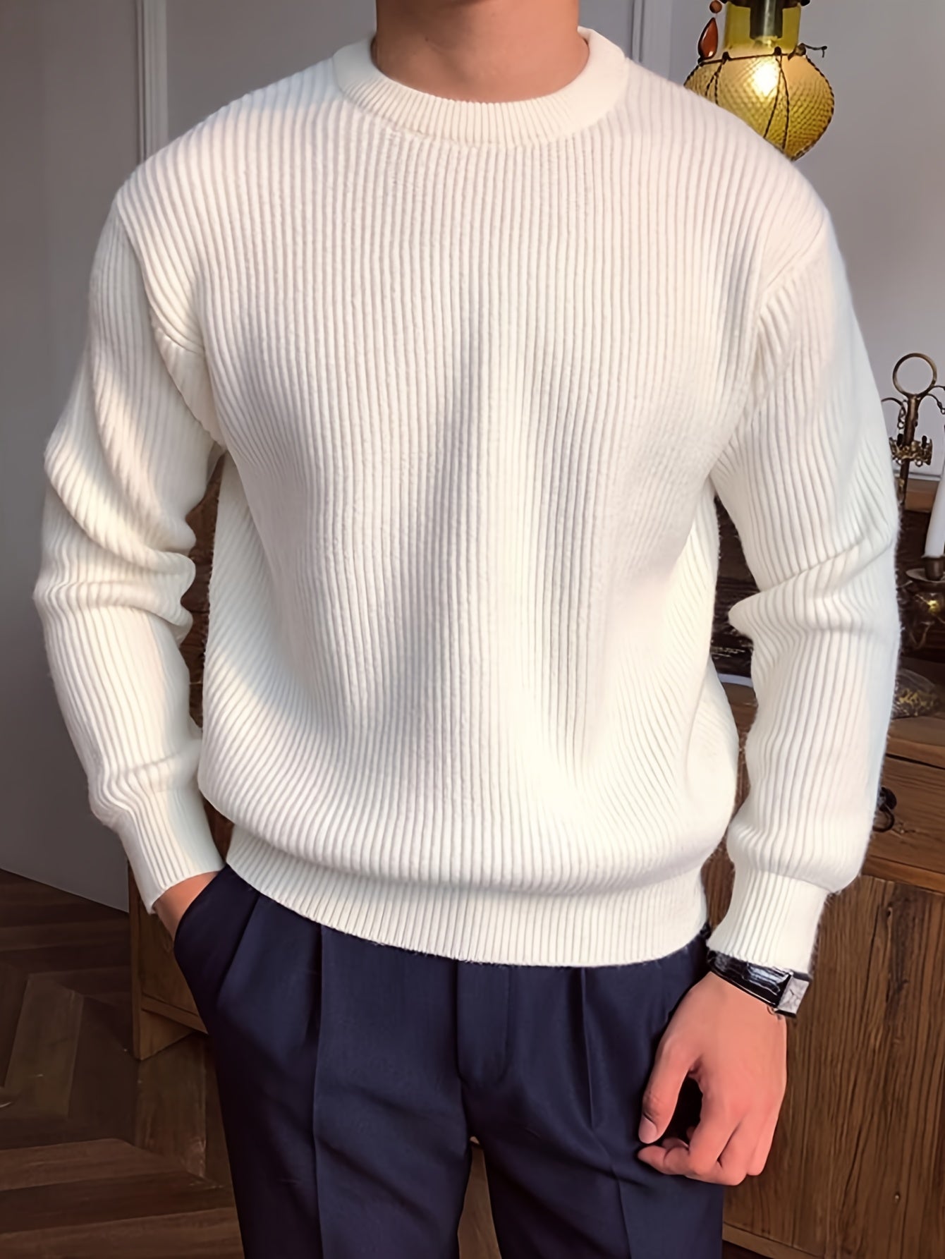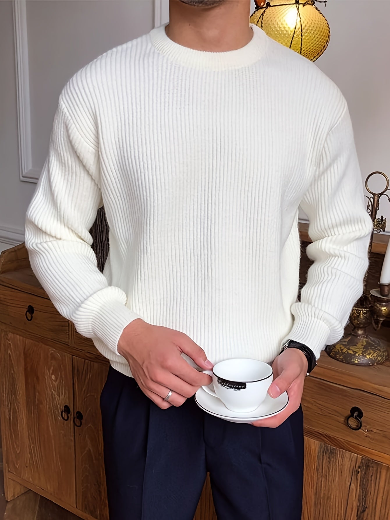 Բաց գույնի, հասուն ոճի աշուն/ձմեռ, հիմնական, տղամարդկանց համար, երկար թևքերով, առօրյա, բրիտանական, կլոր վզնոցով, տրիկոտաժե, բարձր օձիքավոր վերնաշապիկով