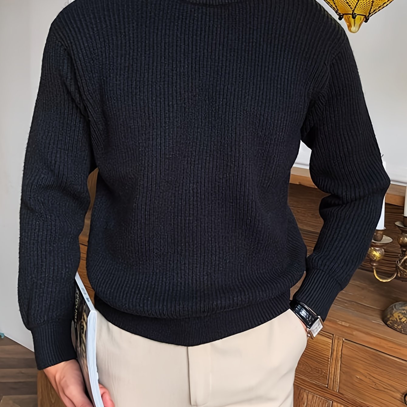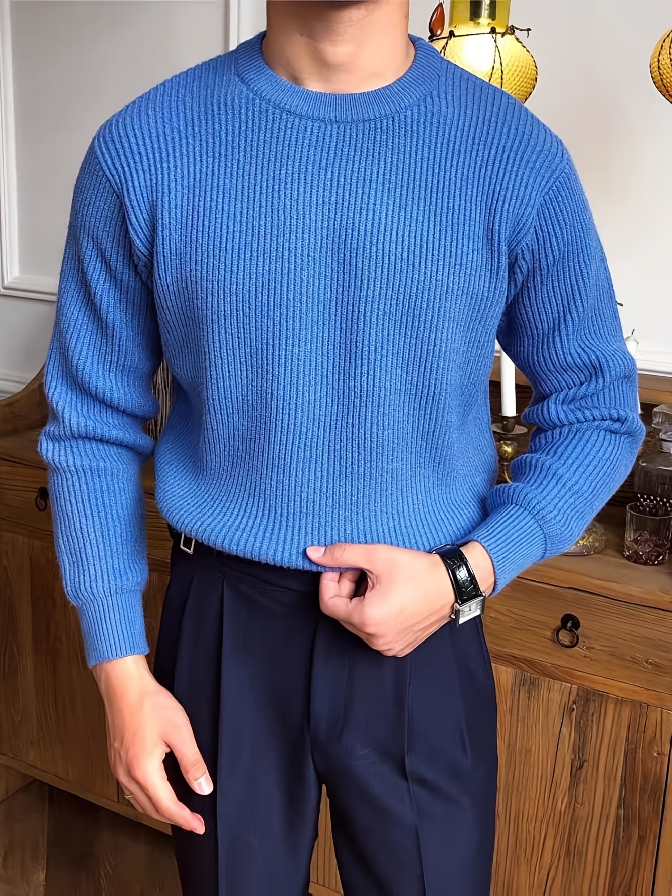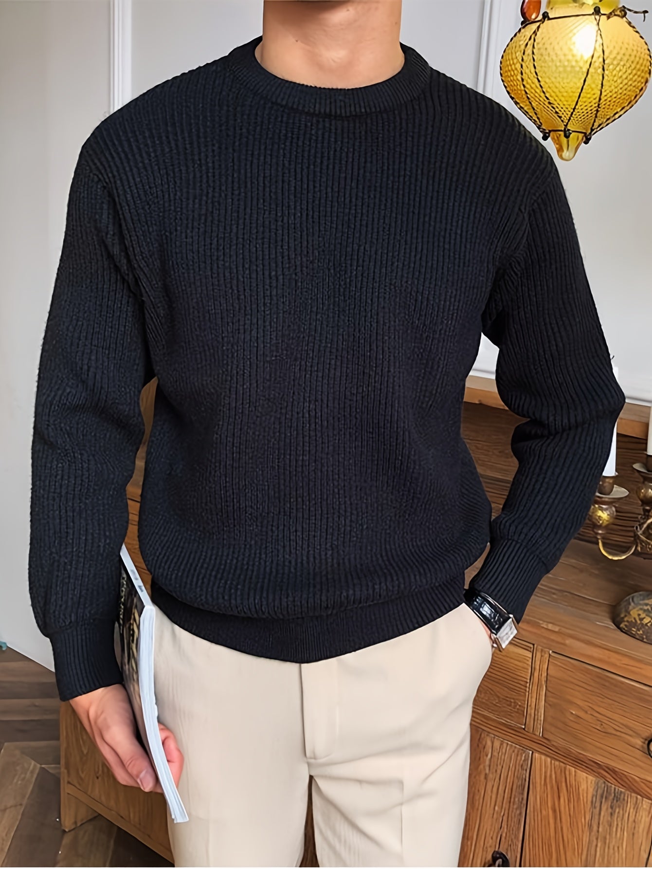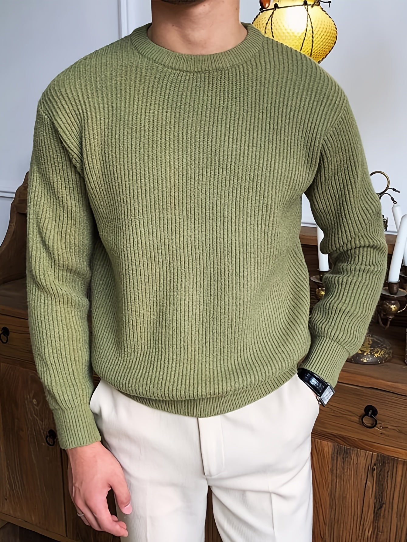 Բաց գույնի, հասուն ոճի աշուն/ձմեռ, հիմնական, տղամարդկանց համար, երկար թևքերով, առօրյա, բրիտանական, կլոր վզնոցով, տրիկոտաժե, բարձր օձիքավոր վերնաշապիկով