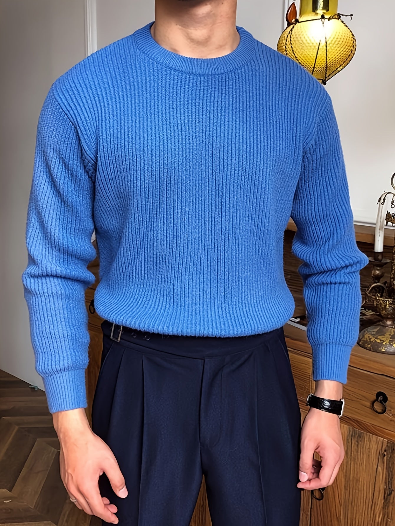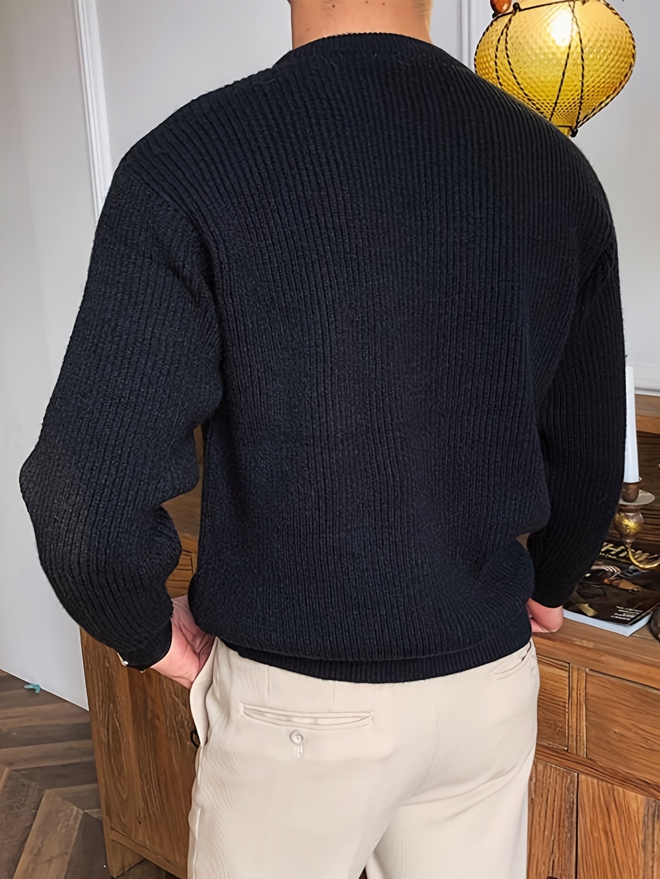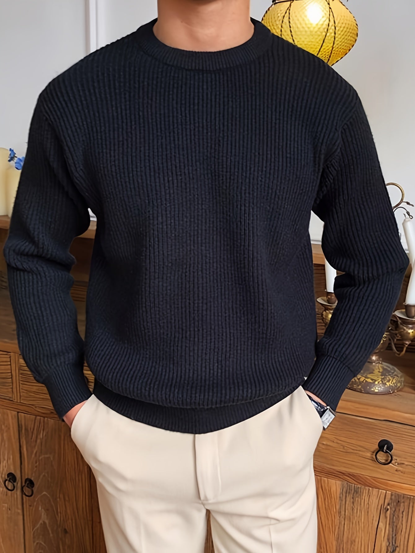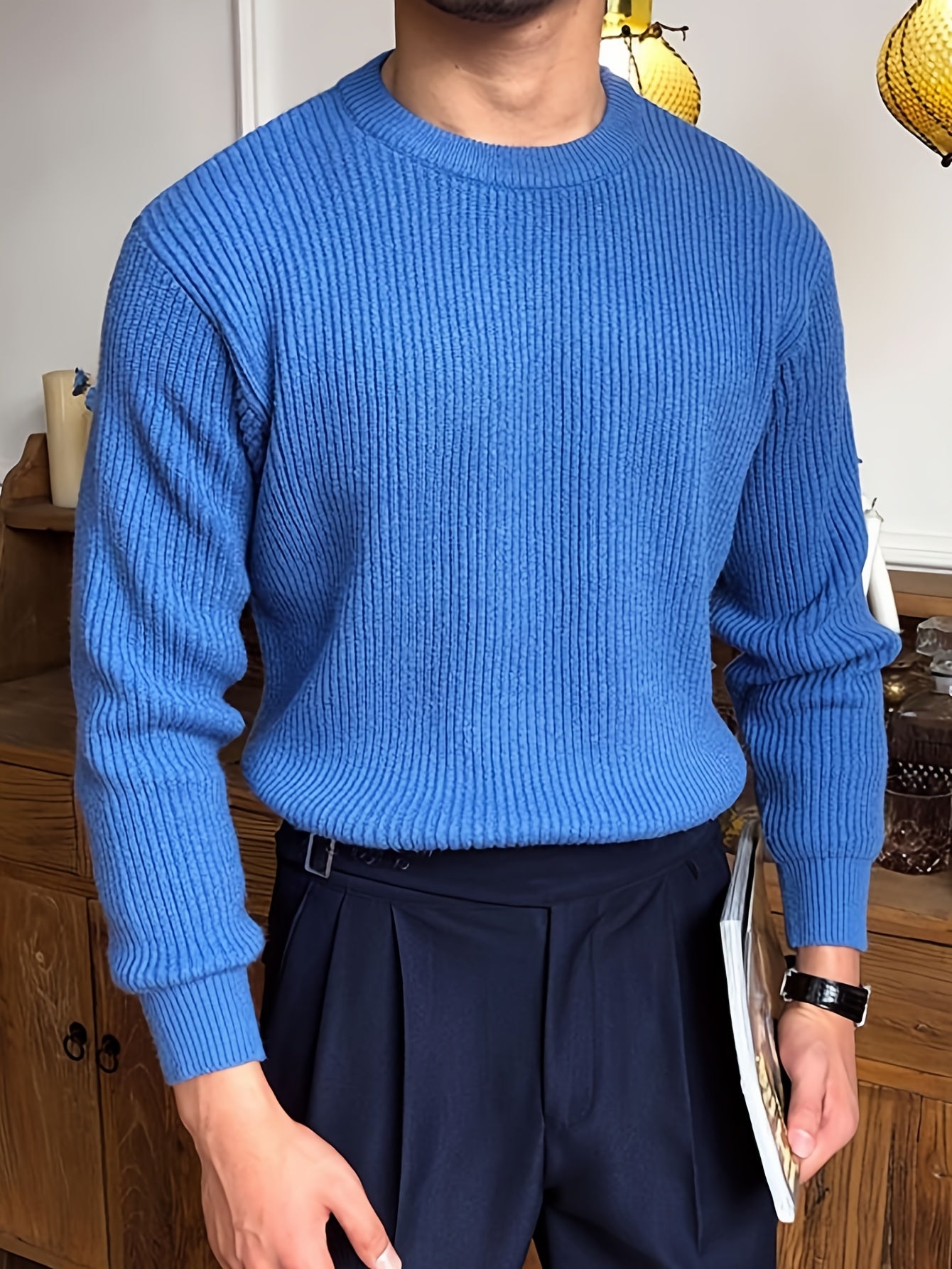 Բաց գույնի, հասուն ոճի աշուն/ձմեռ, հիմնական, տղամարդկանց համար, երկար թևքերով, առօրյա, բրիտանական, կլոր վզնոցով, տրիկոտաժե, բարձր օձիքավոր վերնաշապիկով