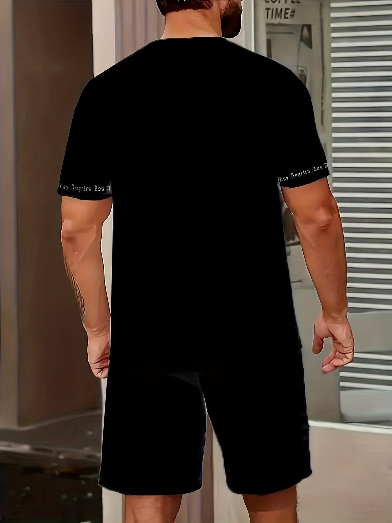 Լոս Անջելեսի անգլիական նախշերով տղամարդու կարճ թևքով վերնաշապիկ + առօրյա սպորտային հավաքածու, շնչող, փափուկ ամառային հագուստ՝ գրպաններով վերնաշապիկով և լարերով շորտերով
