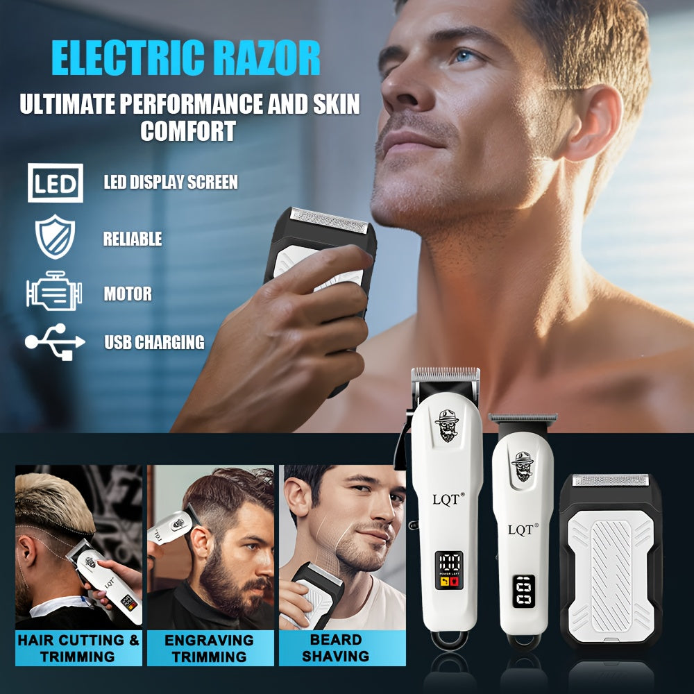 LQT 2/3 հատ էլեկտրական վարսահարդարման հավաքածու/Տղամարդկանց պրոֆեսիոնալ գեղեցկության և վարսահարդարման հավաքածու/Տոնական նվերների տուփ/Հարմար է ընտանիքների և վարսավիրանոցների համար/Թվային էկրան/LCD էկրան/USB լիցքավորիչ/Կատարյալ տոնական նվեր հայրիկի համար