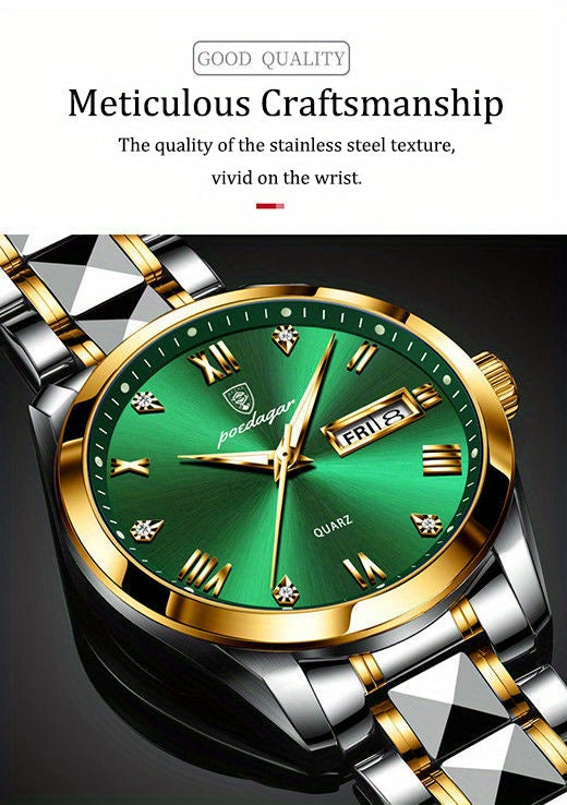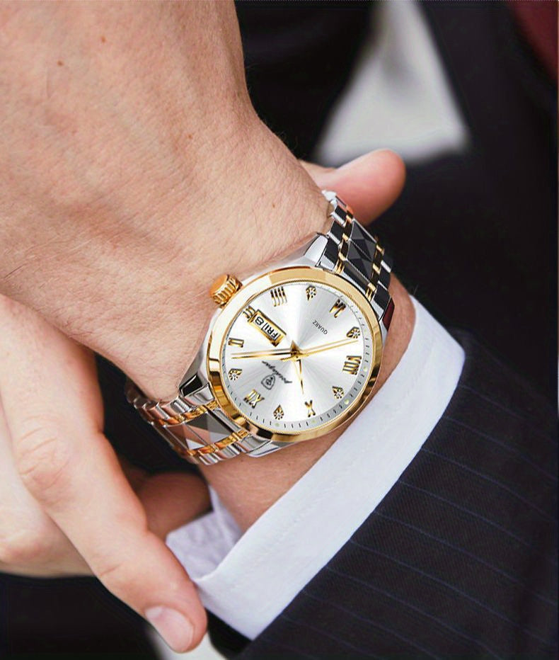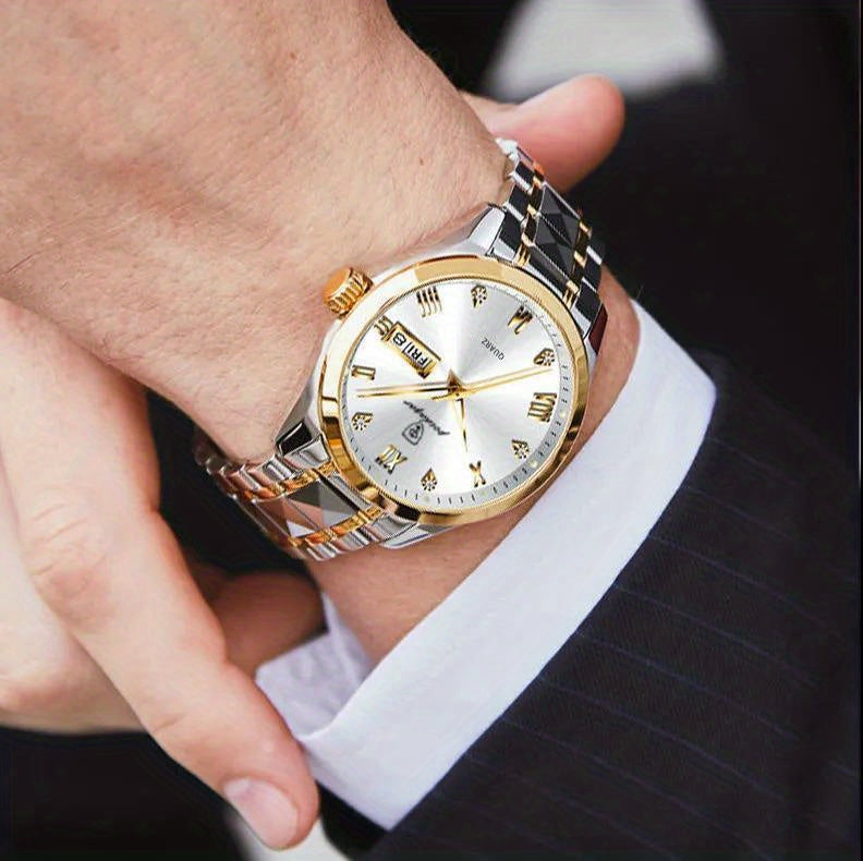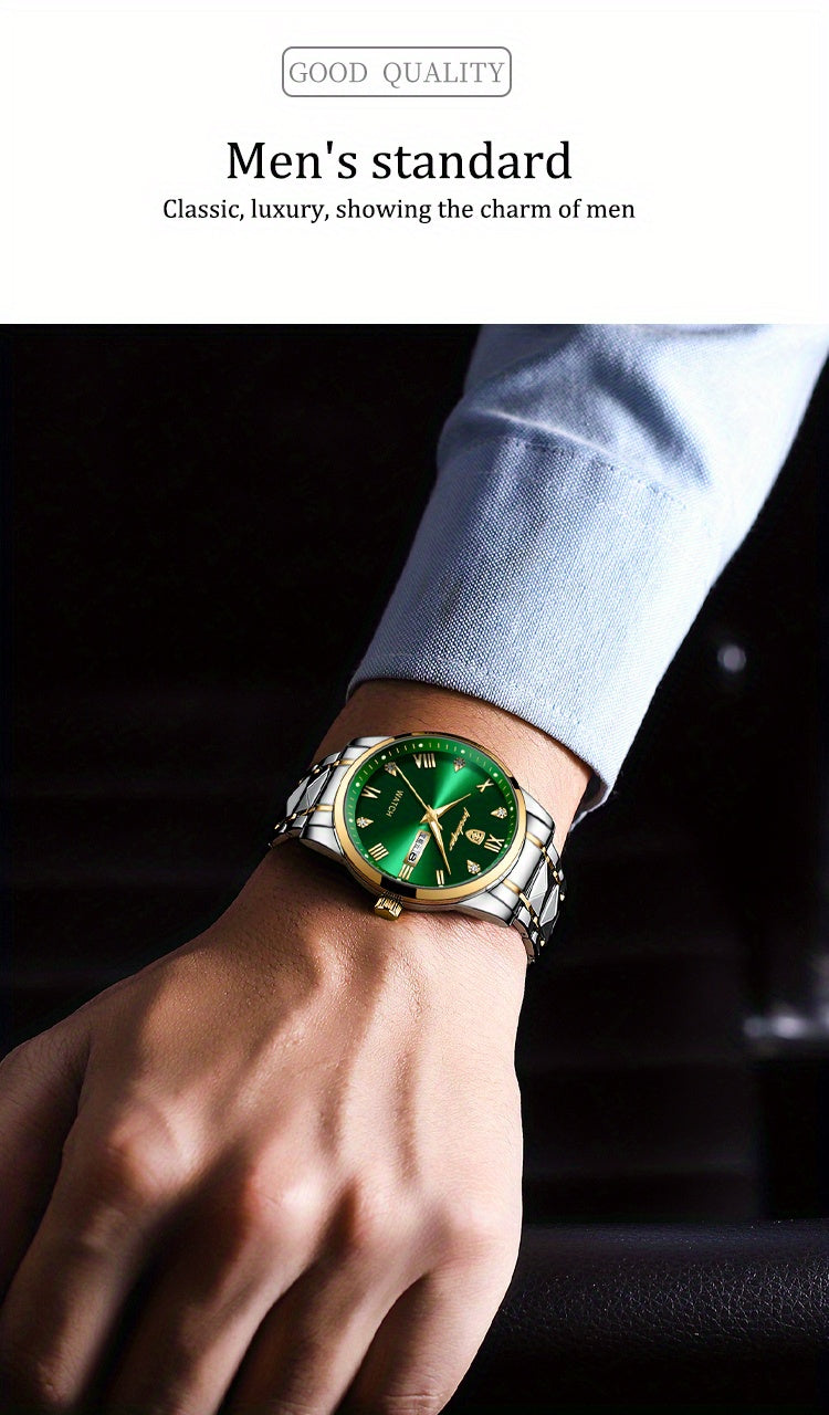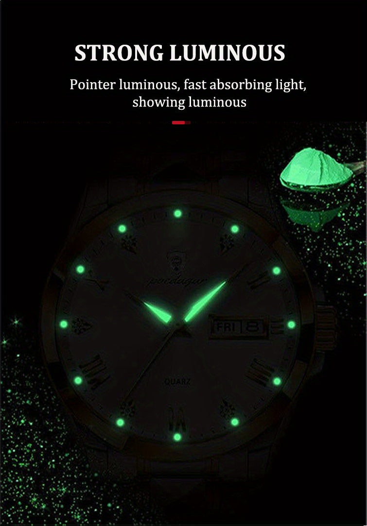 Լուսավոր օրացույց տղամարդկանց քվարցային ժամացույց, բիզնես, սպորտ, դեռահասների համար, թրենդային չժանգոտվող պողպատից պատրաստված, ուսանողական ձեռքի ժամացույցներ, իդեալական ընտրություն Սուրբ Ծննդյան նվերների և Սուրբ Վալենտինի օրվա համար