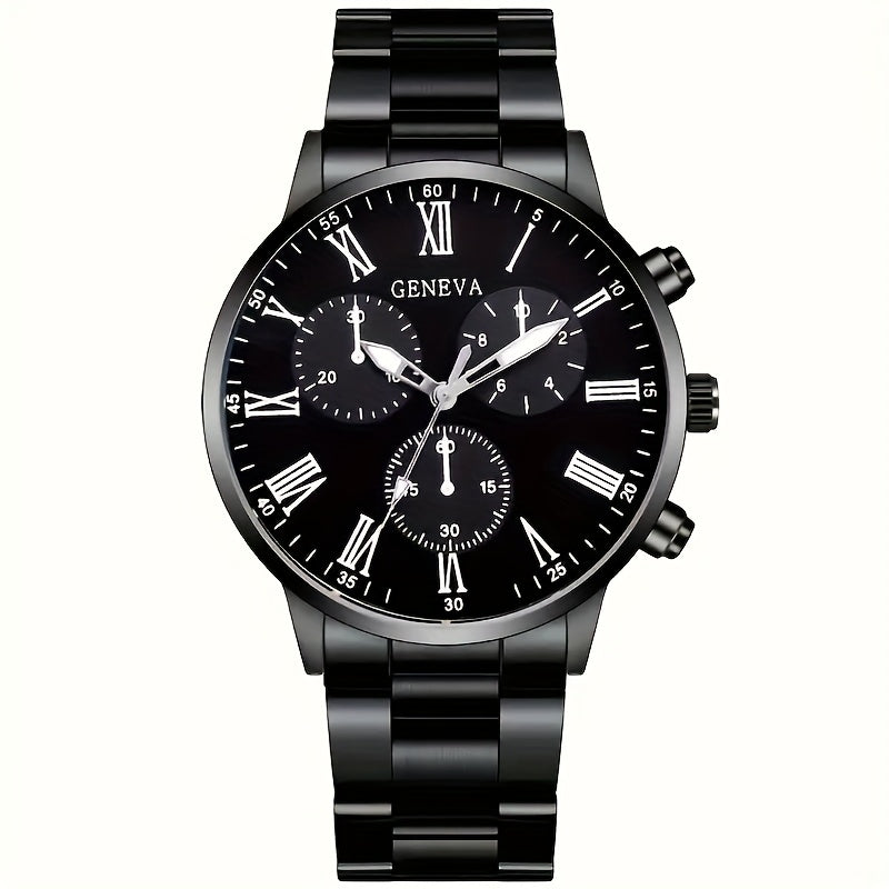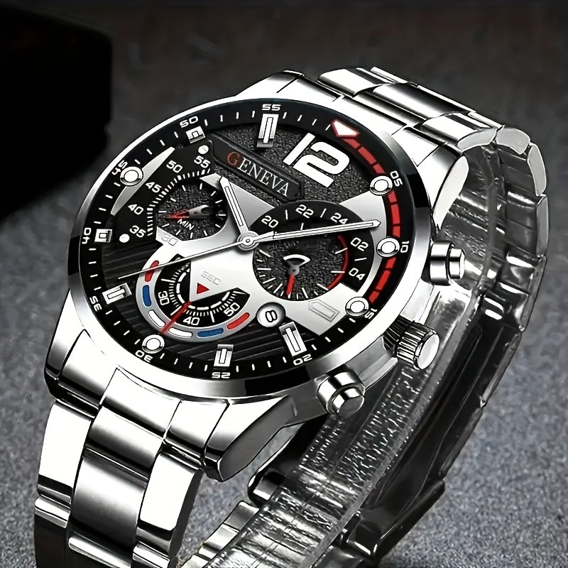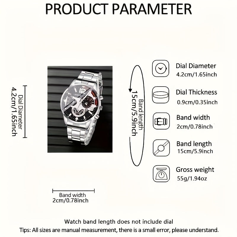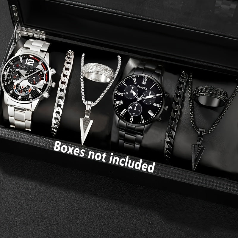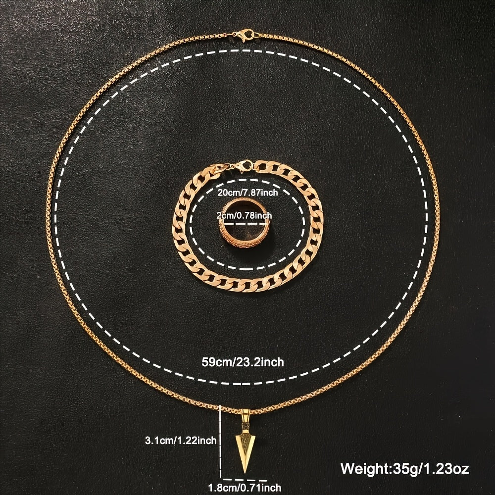 Luxury 8pcs Men'S Gift Set: Stainless Steel Quartz Watch with Calendar, Golden Arrow Necklace, Bracelet & Ring - Elegant Business Casual Accessories for Valentine's, New Year, Easter, Ramadan, Birthdays, Christmas, Halloween