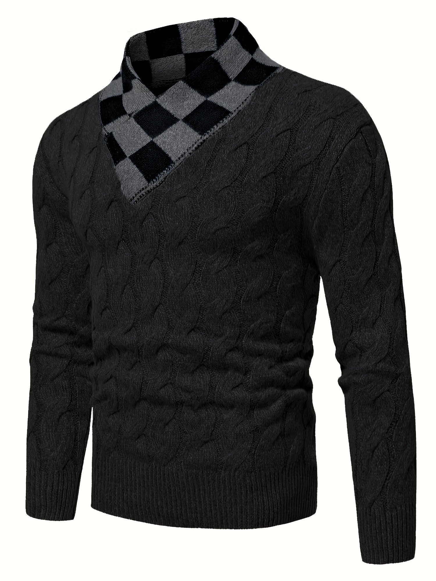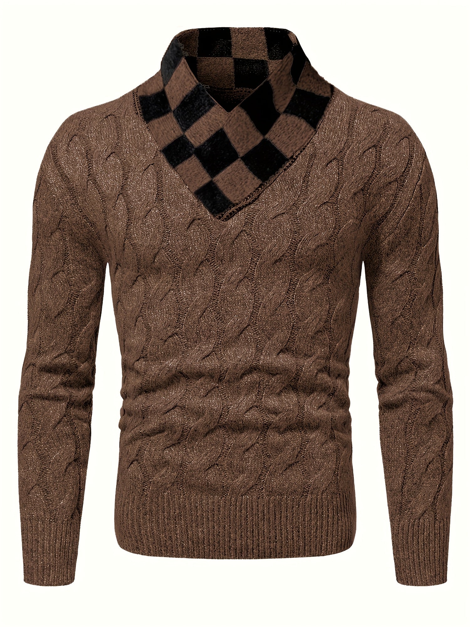 Maqiqiobm բարակ չափսի տղամարդու սվիտեր - 1 հատ աշուն/ձմեռ, հաստ, նոր ոճի, հարմարավետ, տաք, միագույն, պտտվող, տրիկոտաժե, երկար թևքերով, շախմատաձև օձիքի դիզայնով, գործնական, ամենօրյա, շերտավոր տրիկոտաժե վերնաշապիկ, հարմար է աշնանը։