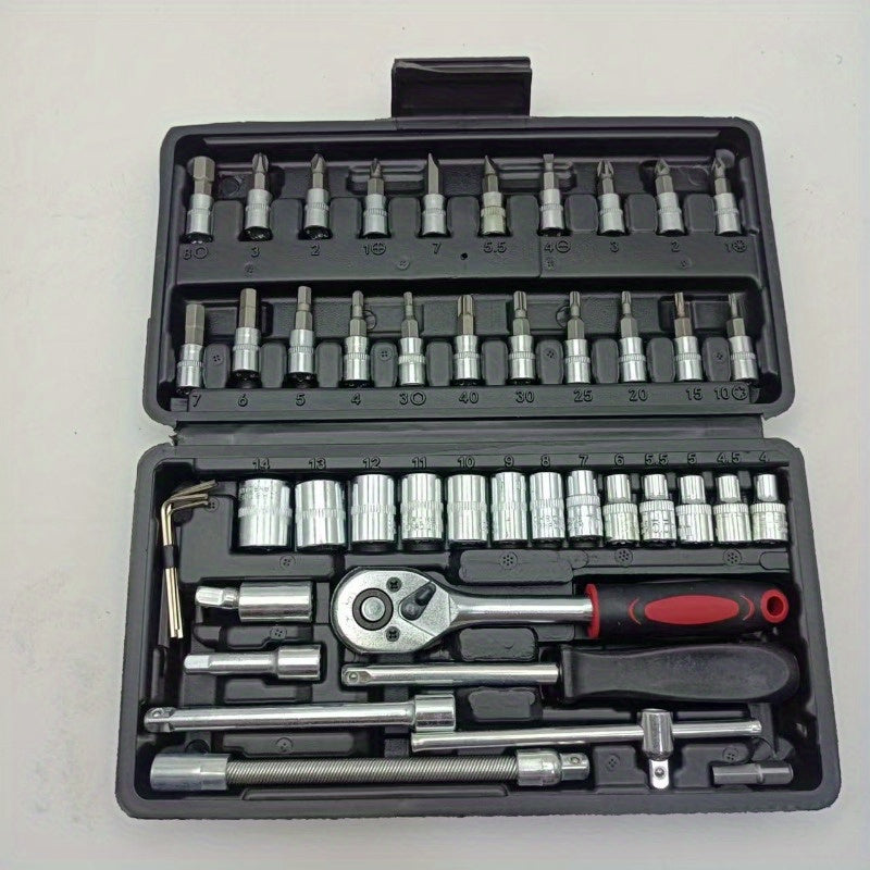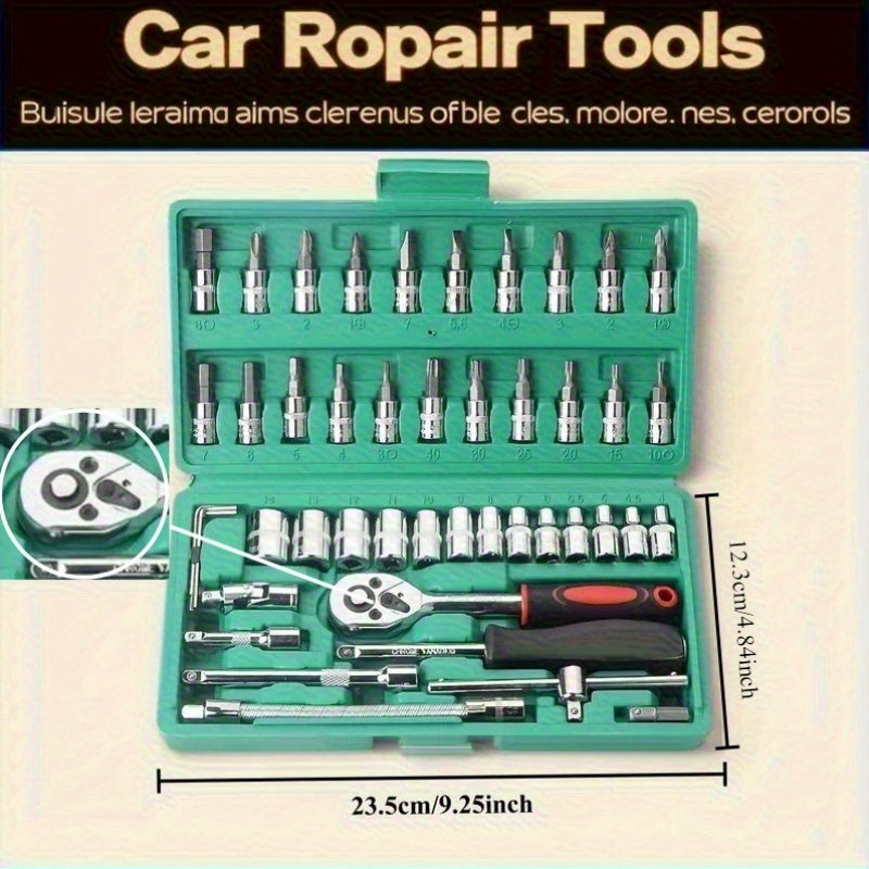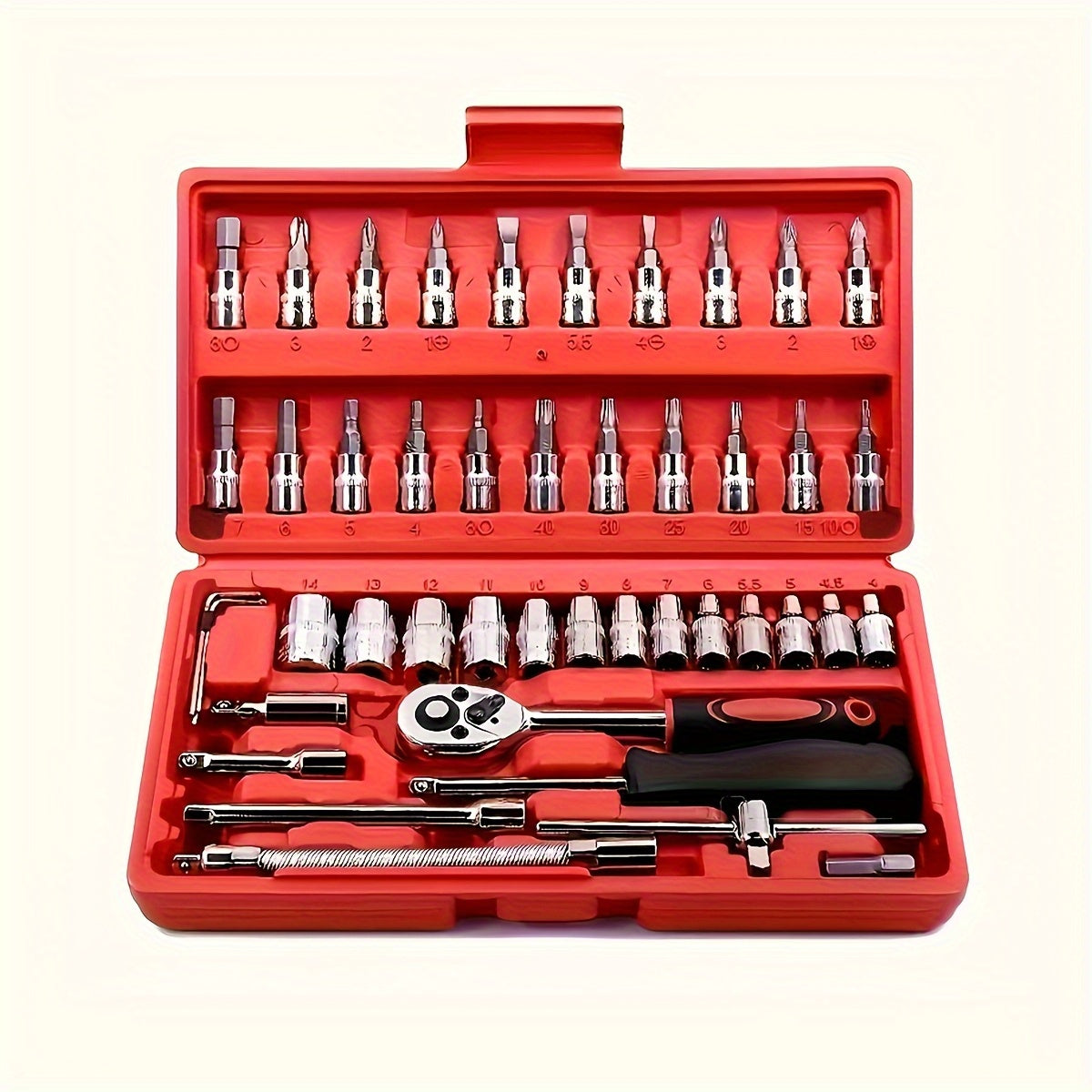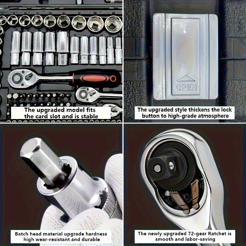 Mechanical Tool Set, Multifunctional Car Repair Toolbox, Suitable for Cars, Bicycles, Motorcycles and 1/2" 3/8" SAE & Metric Sizes Universal Wrench Kit Including Tooth Ratchet Wrenches, Household, Garage, Bicycle Trunk Specia