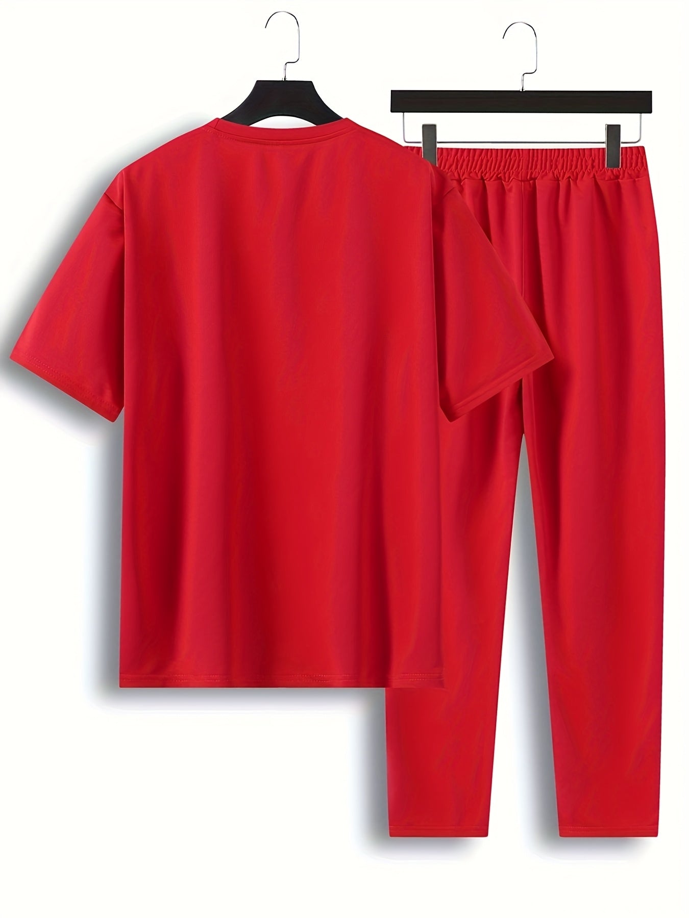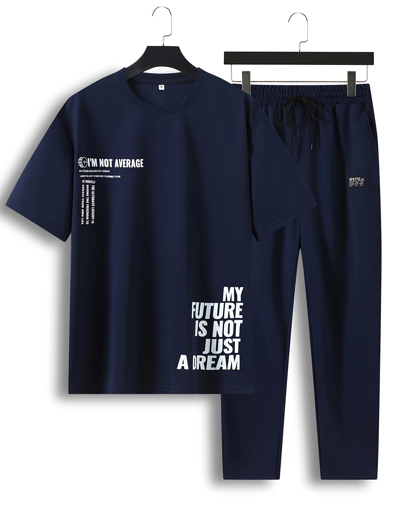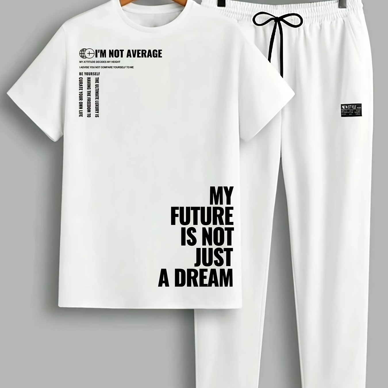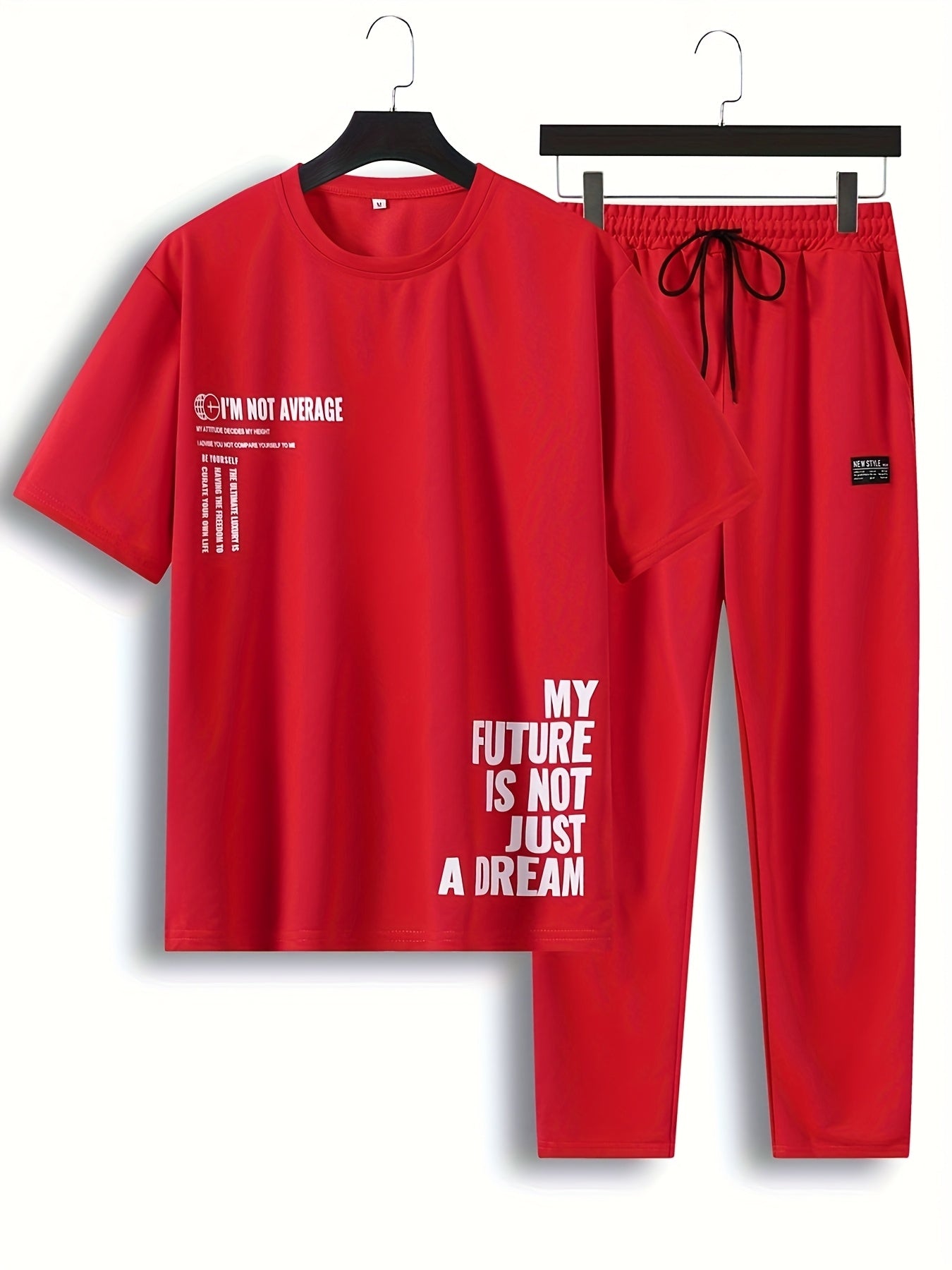 Տղամարդկանց 2 հատ ամառային «ԻՄ ԱՊԱԳԱՆ ՊԱՐԶԱՊԵՍ ԵՐԱԶԱՆՔ ՉԷ» մարզաշապիկի և տաբատի հավաքածու - Հարմար է սպորտային զբոսանքների համար - Starry OB