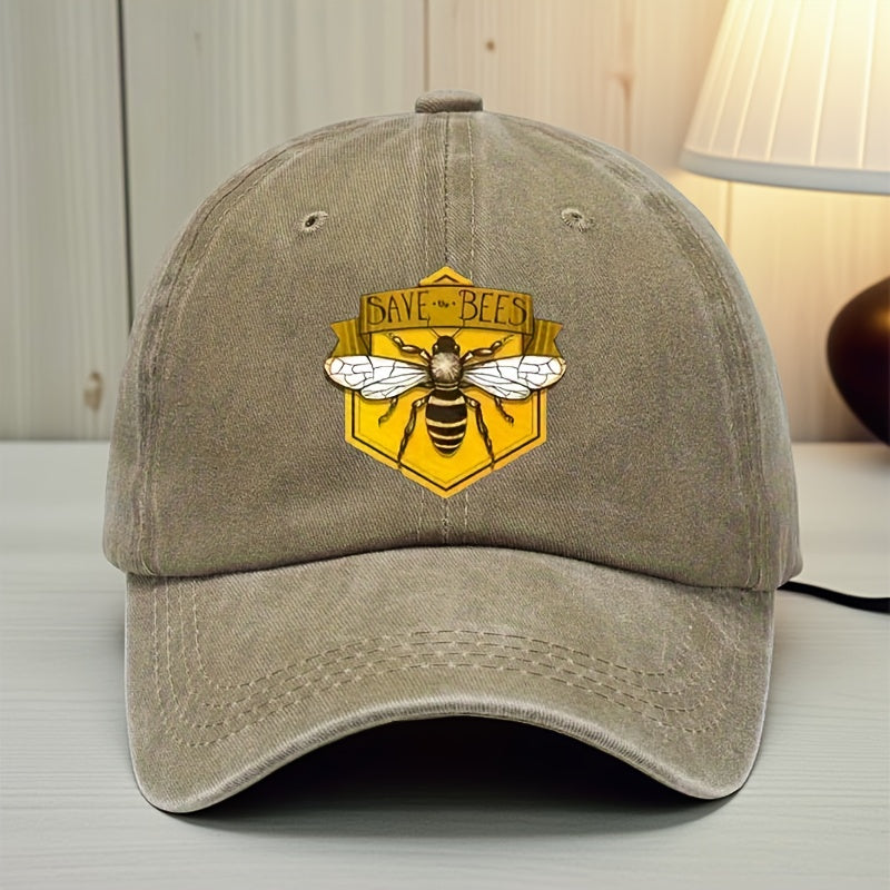 Տղամարդու կարգավորվող բեյսբոլի գլխարկ՝ վեցանկյուն մեղվի գրաֆիկայով և «SAVE THE BEES» տպագրությամբ - շնչող արևապաշտպան, ձեռքով լվացվող, տղամարդկանց համար նախատեսված ամենօրյա սպորտային գլխարկ, շնչող գործվածք, բեյսբոլի գլխարկ