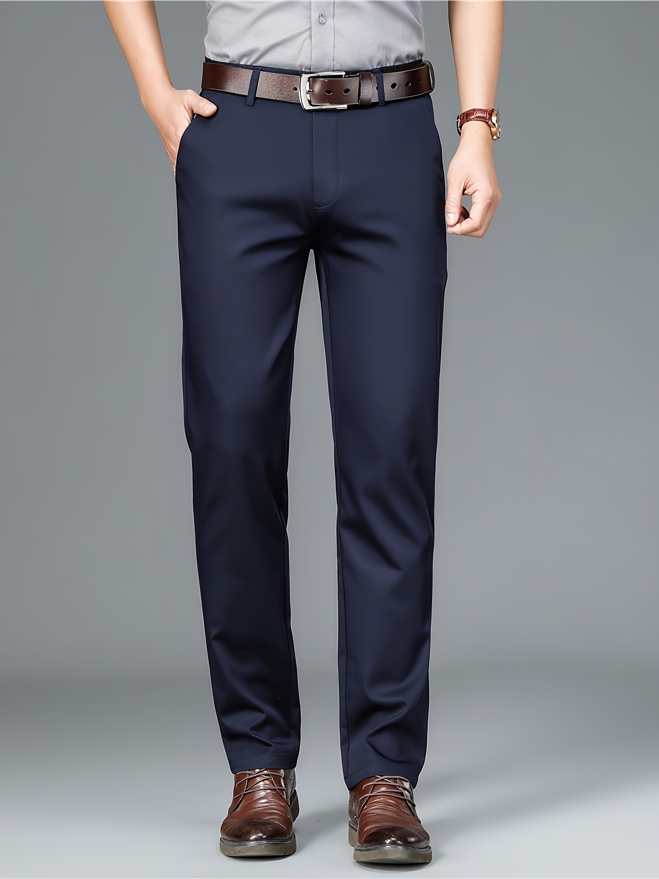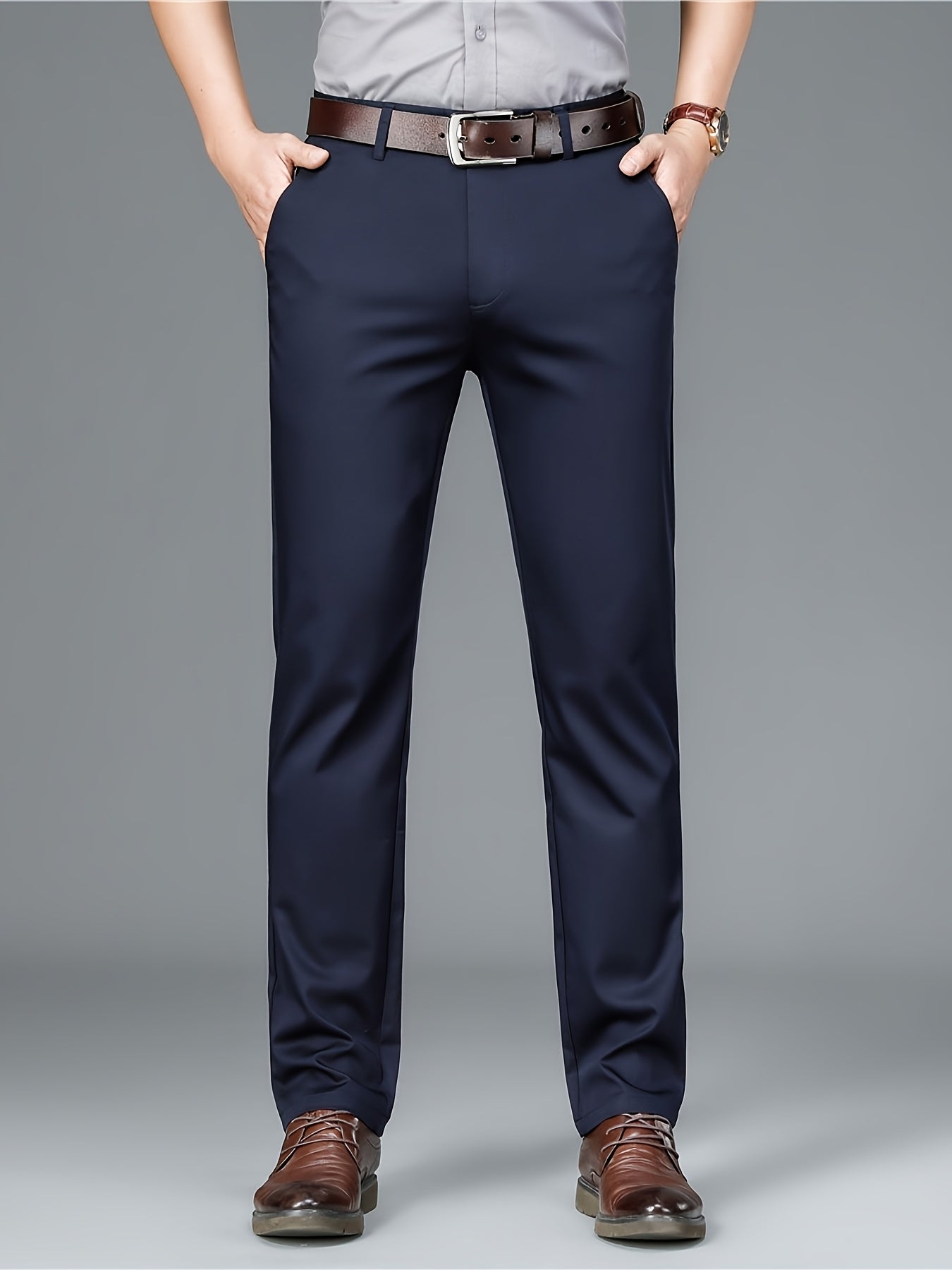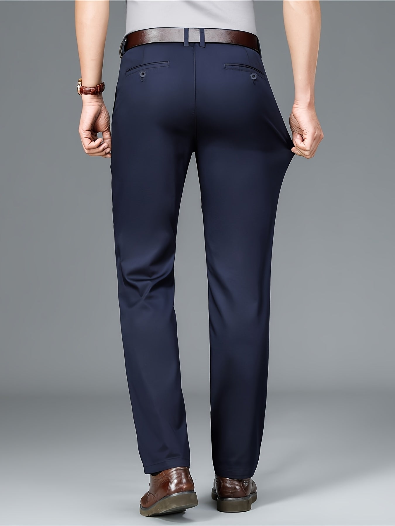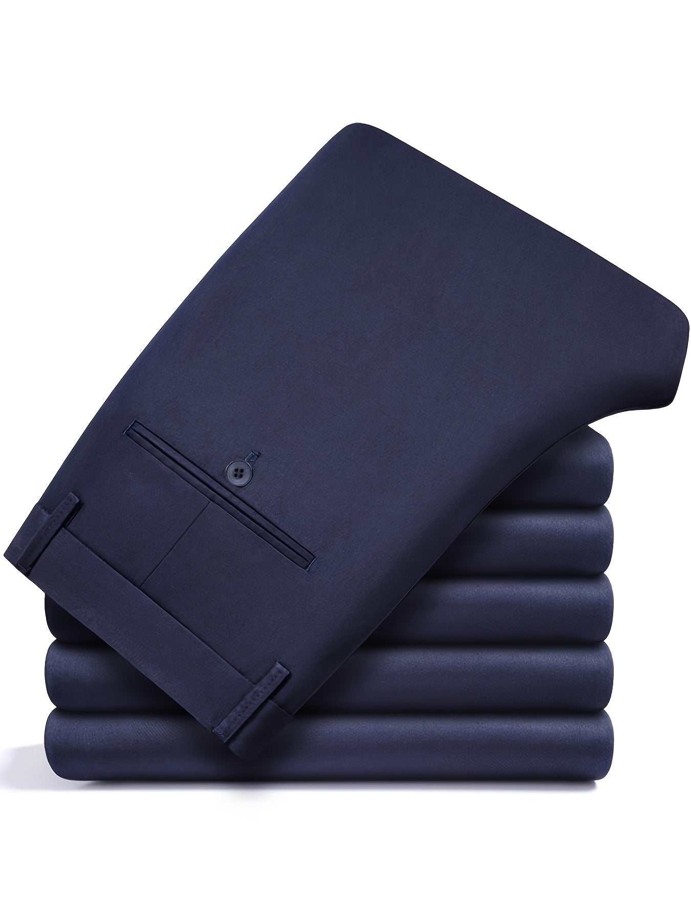 Տղամարդկանց ամբողջ սեզոնային շալվար - մուգ կապույտ, ձգվող պոլիեսթեր, դասական ուղիղ ոտքերի բիզնես պատահական տաբատ, լվացվող մեքենայում