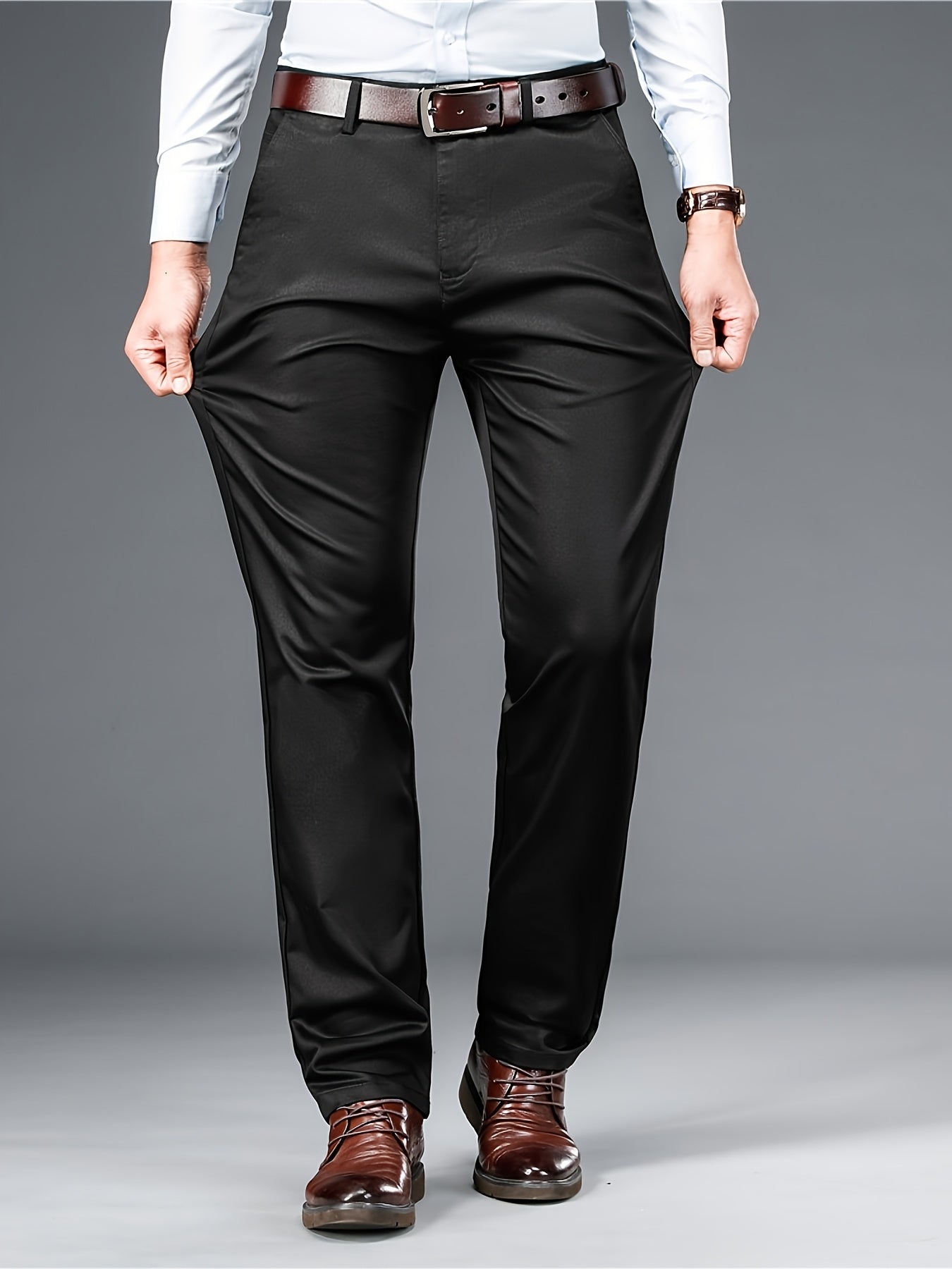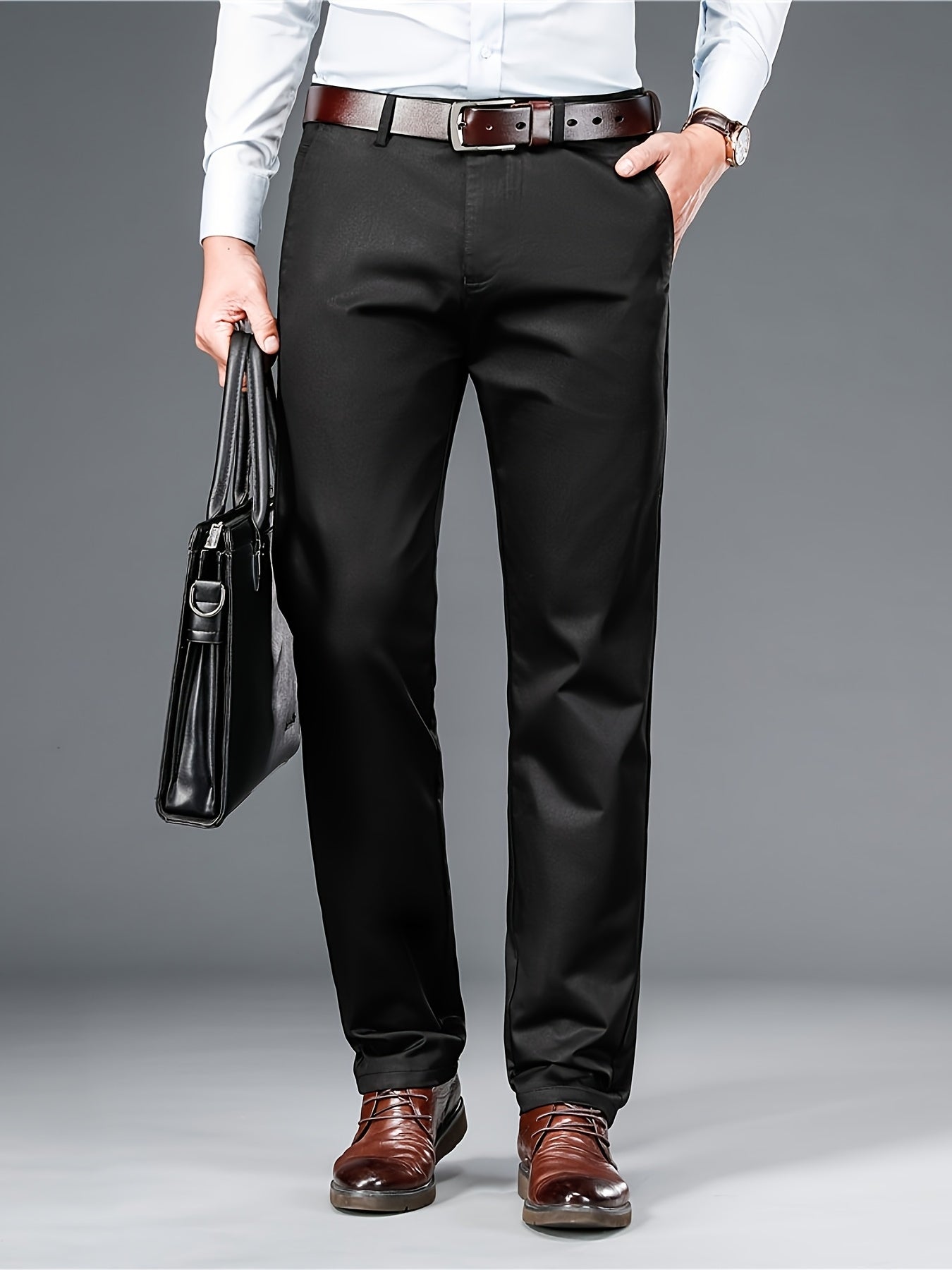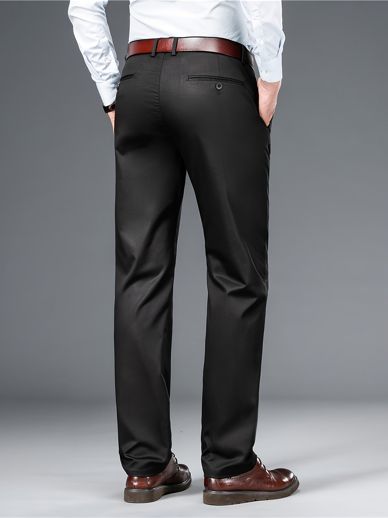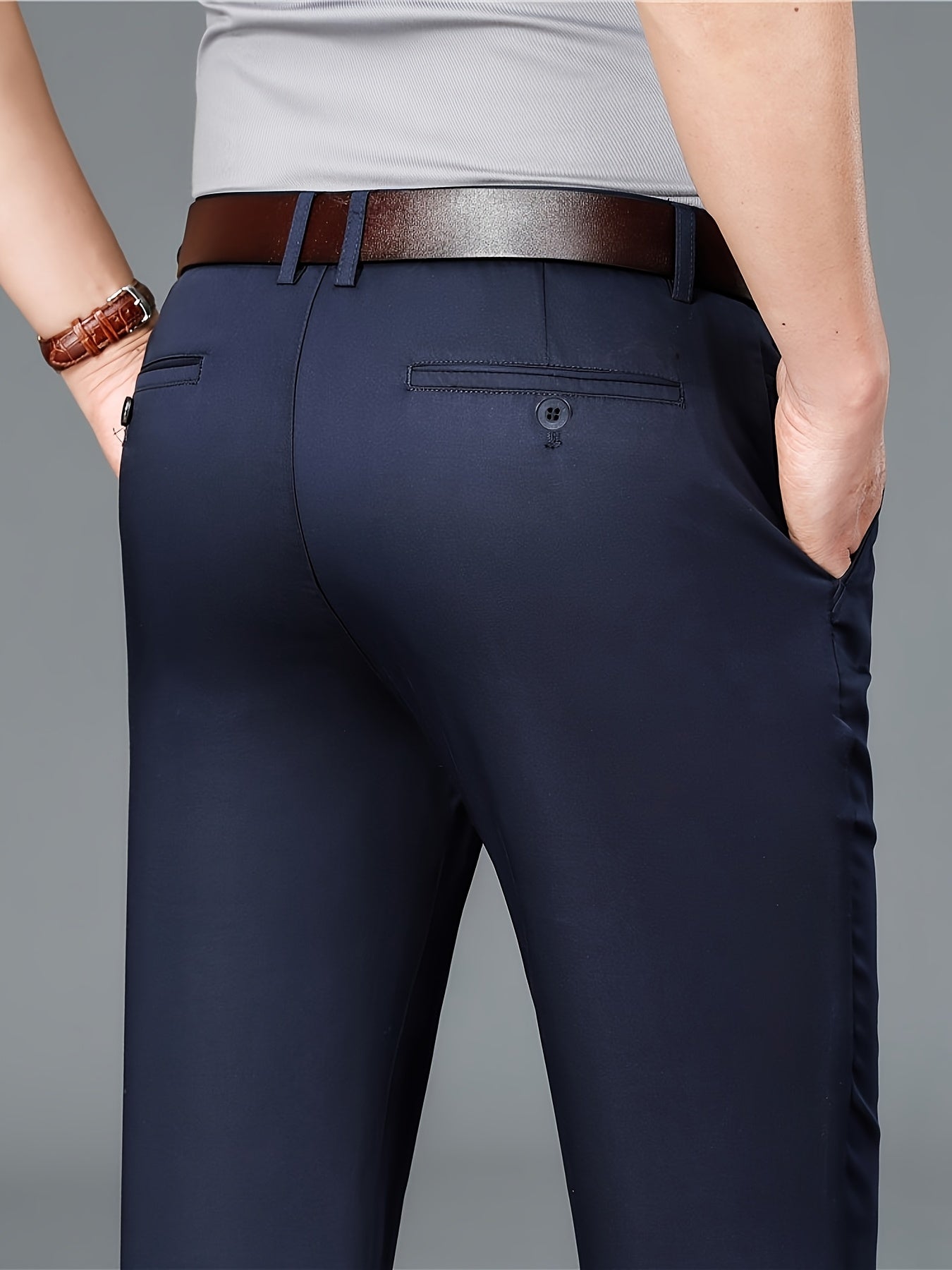 Տղամարդկանց ամբողջ սեզոնային շալվար - մուգ կապույտ, ձգվող պոլիեսթեր, դասական ուղիղ ոտքերի բիզնես պատահական տաբատ, լվացվող մեքենայում