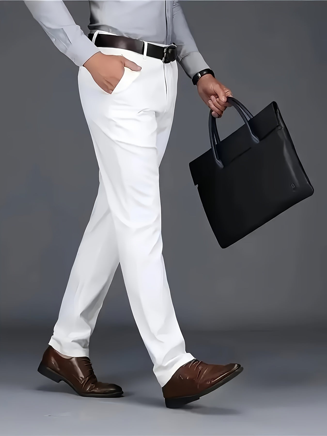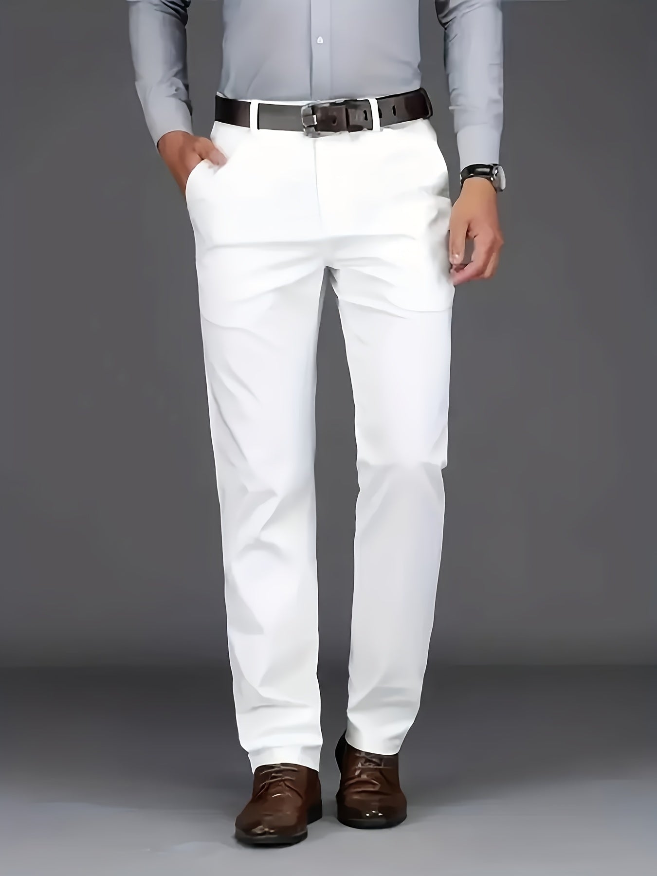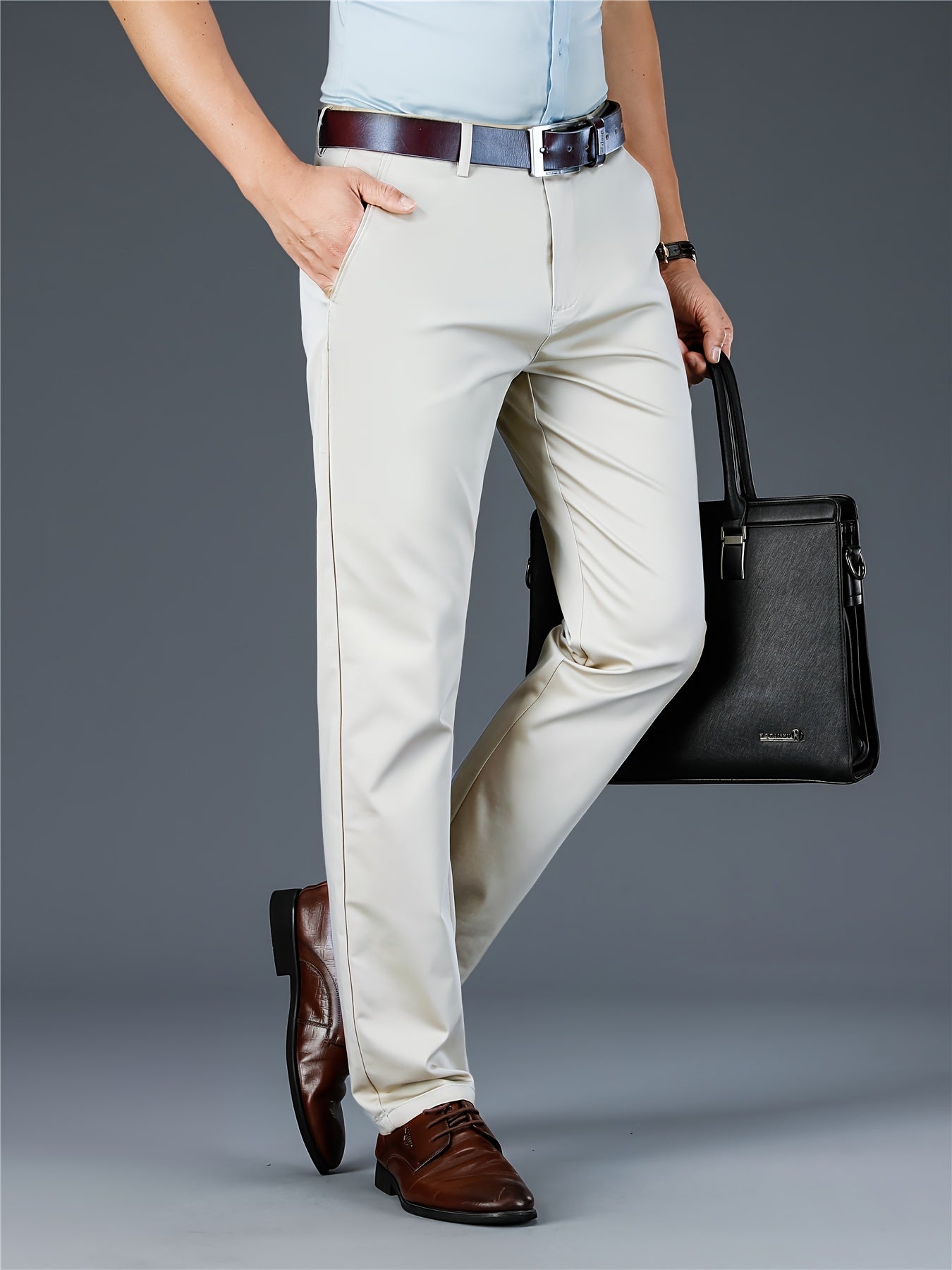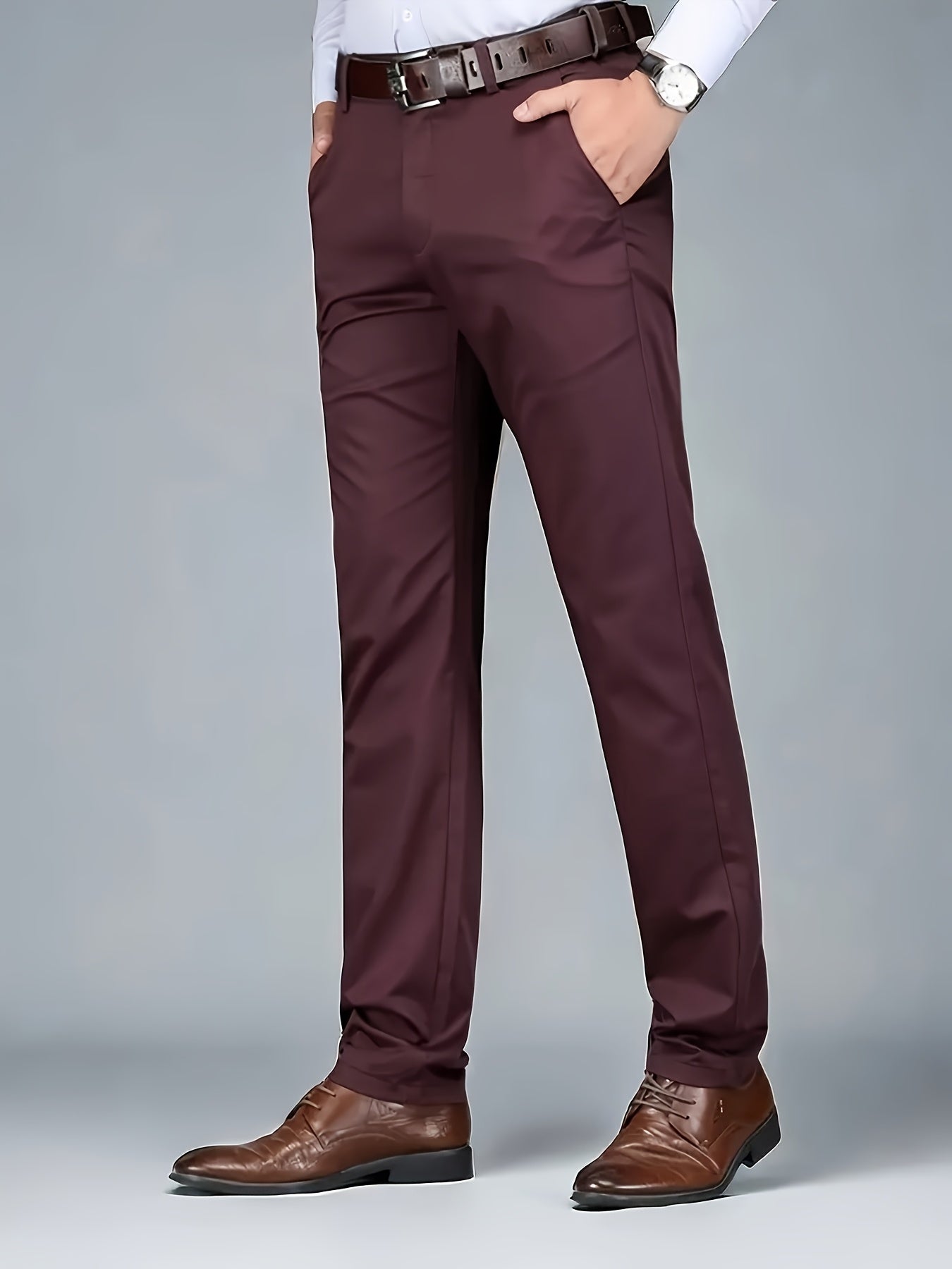 Տղամարդկանց ամբողջ սեզոնային շալվար - մուգ կապույտ, ձգվող պոլիեսթեր, դասական ուղիղ ոտքերի բիզնես պատահական տաբատ, լվացվող մեքենայում
