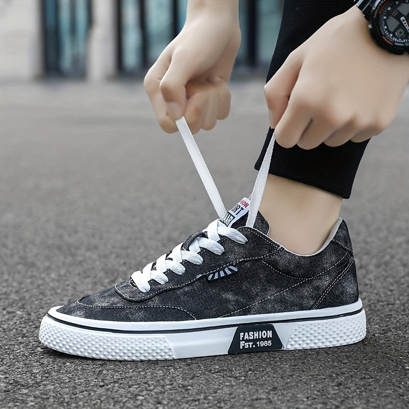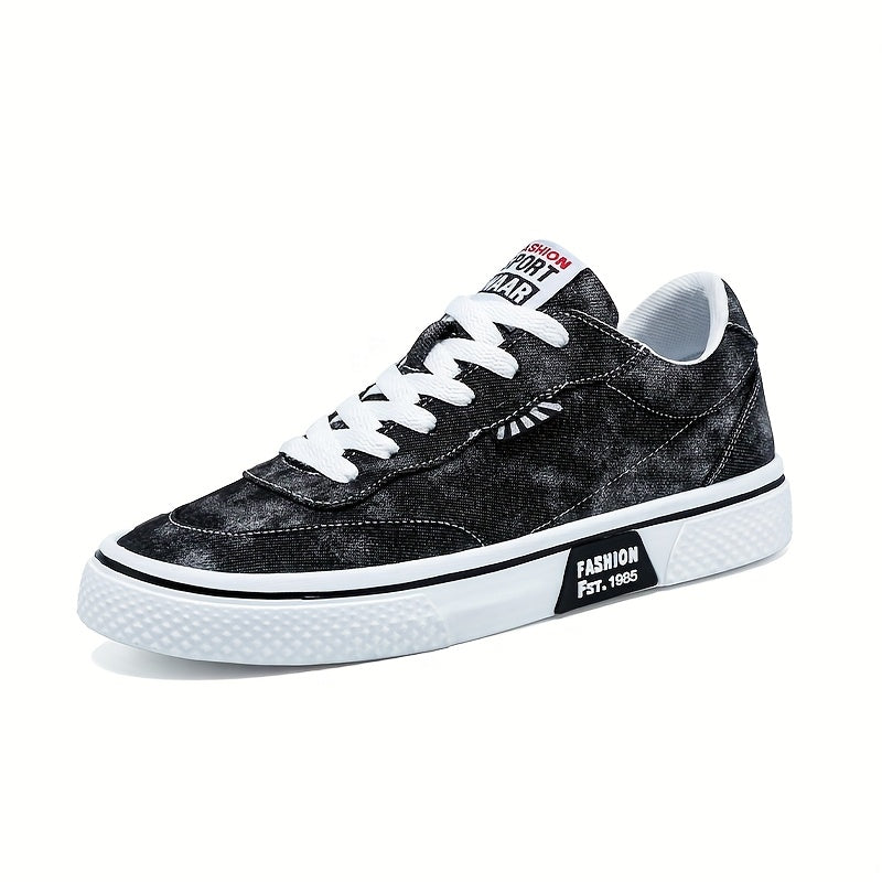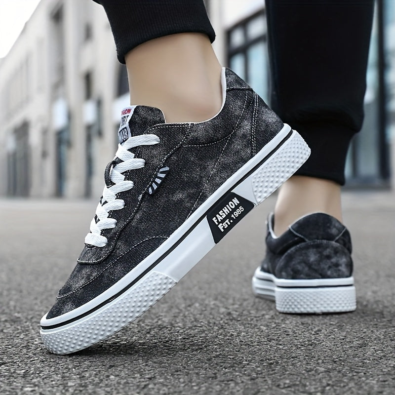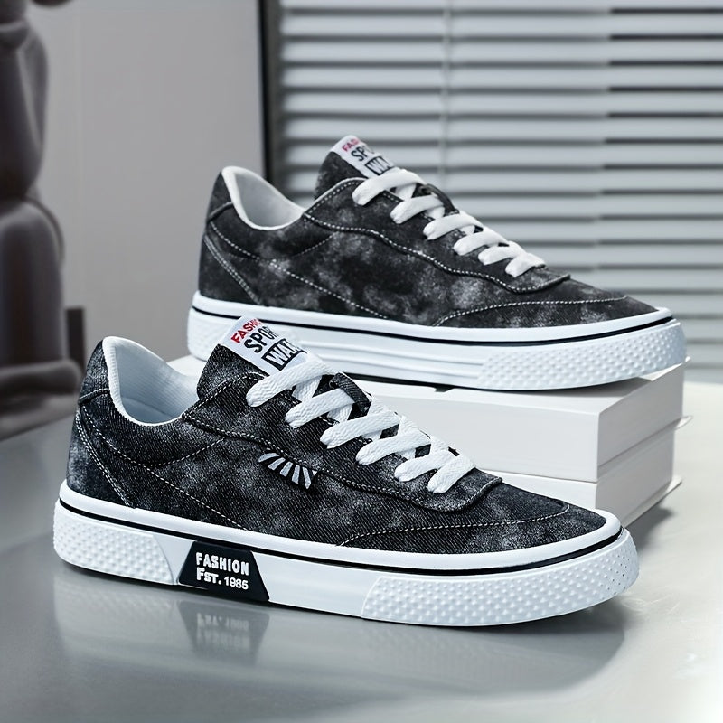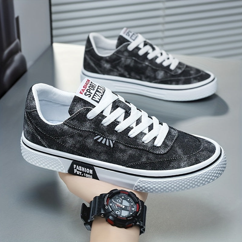 Men's All-Season Sneakers - Lace-Up Low-Top Shoes with Non-Slip PVC Sole, Breathable Fabric Upper - Cushioned Insole for Gym, Running, Everyday - Classic Round Toe - All-Season Casual Shoes for Men, Gym Footwear, Modern Canva