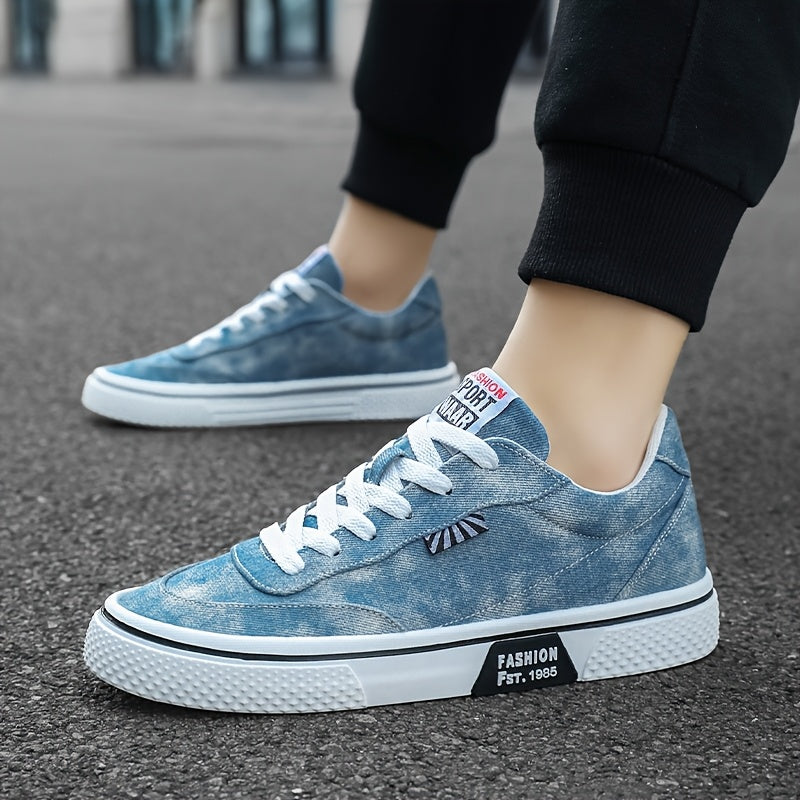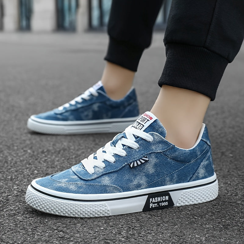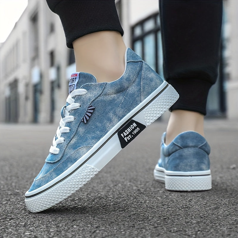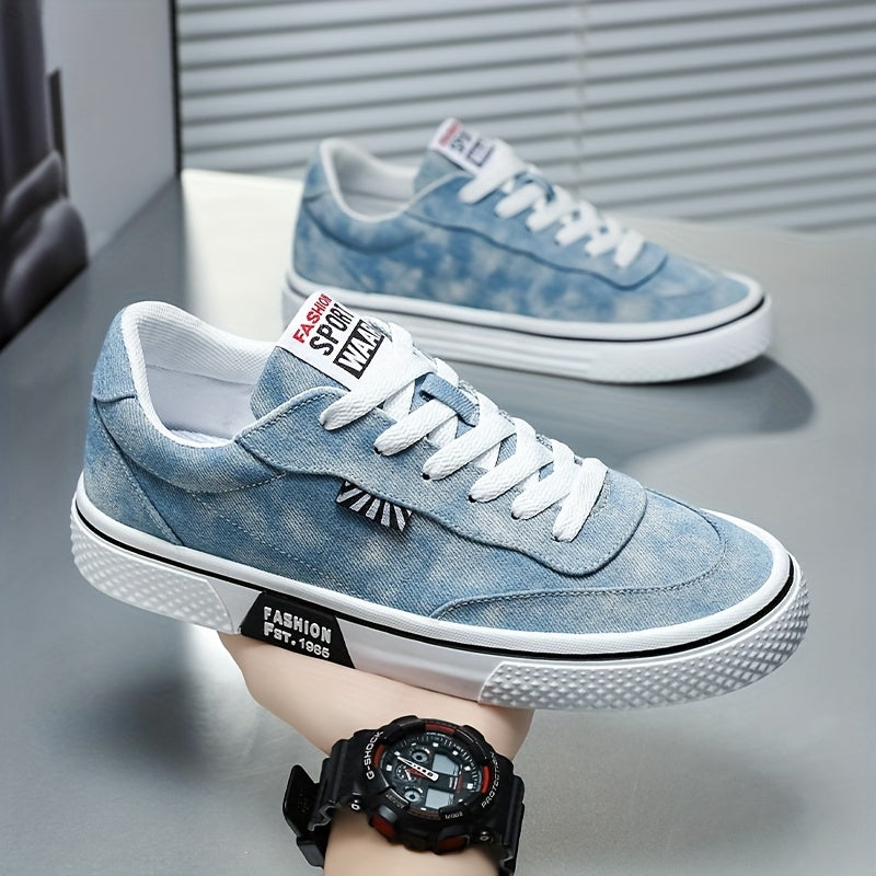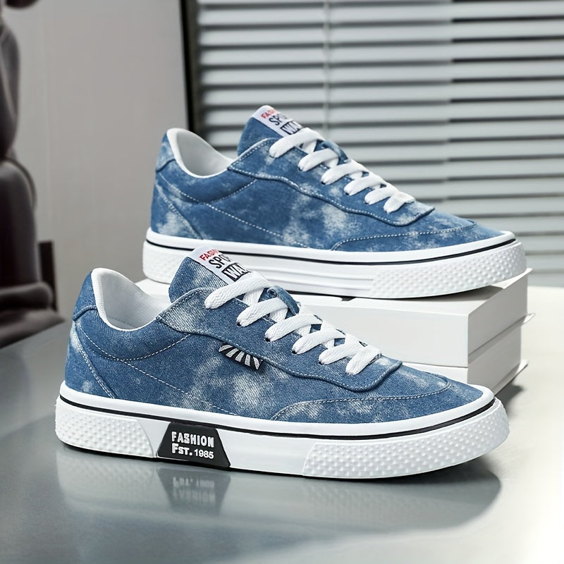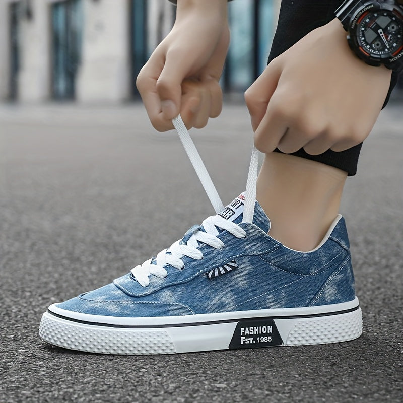 Men's All-Season Sneakers - Lace-Up Low-Top Shoes with Non-Slip PVC Sole, Breathable Fabric Upper - Cushioned Insole for Gym, Running, Everyday - Classic Round Toe - All-Season Casual Shoes for Men, Gym Footwear, Modern Canva