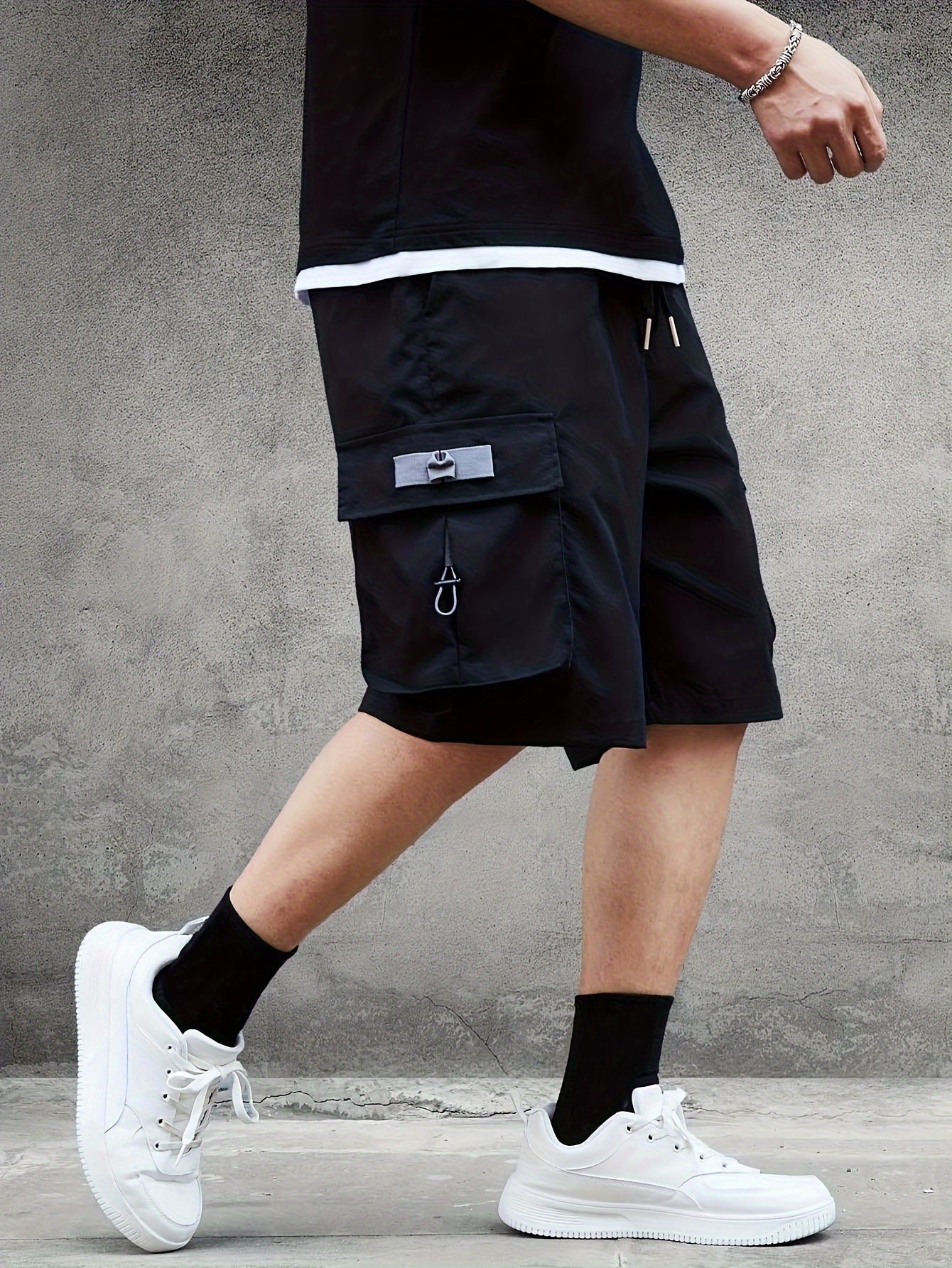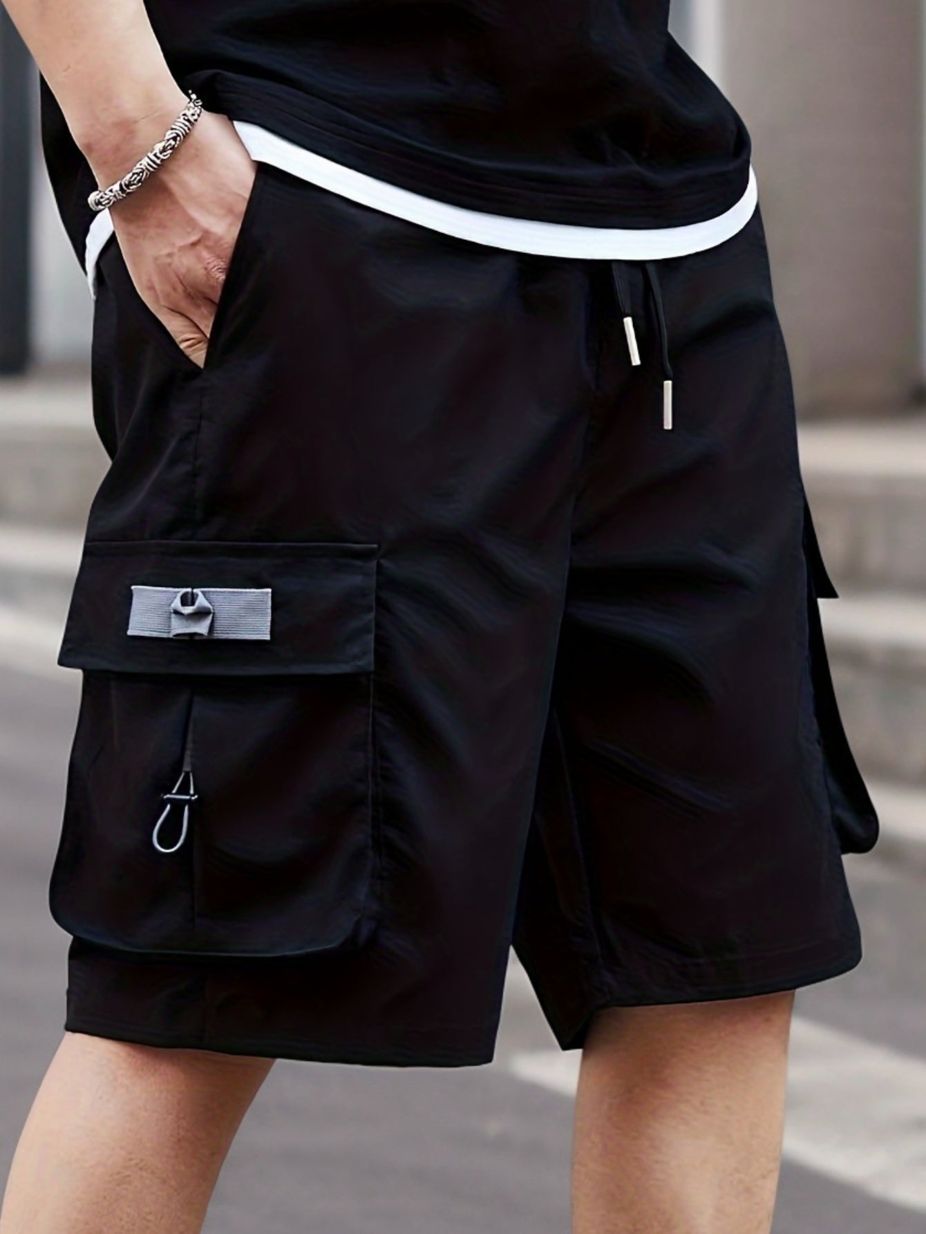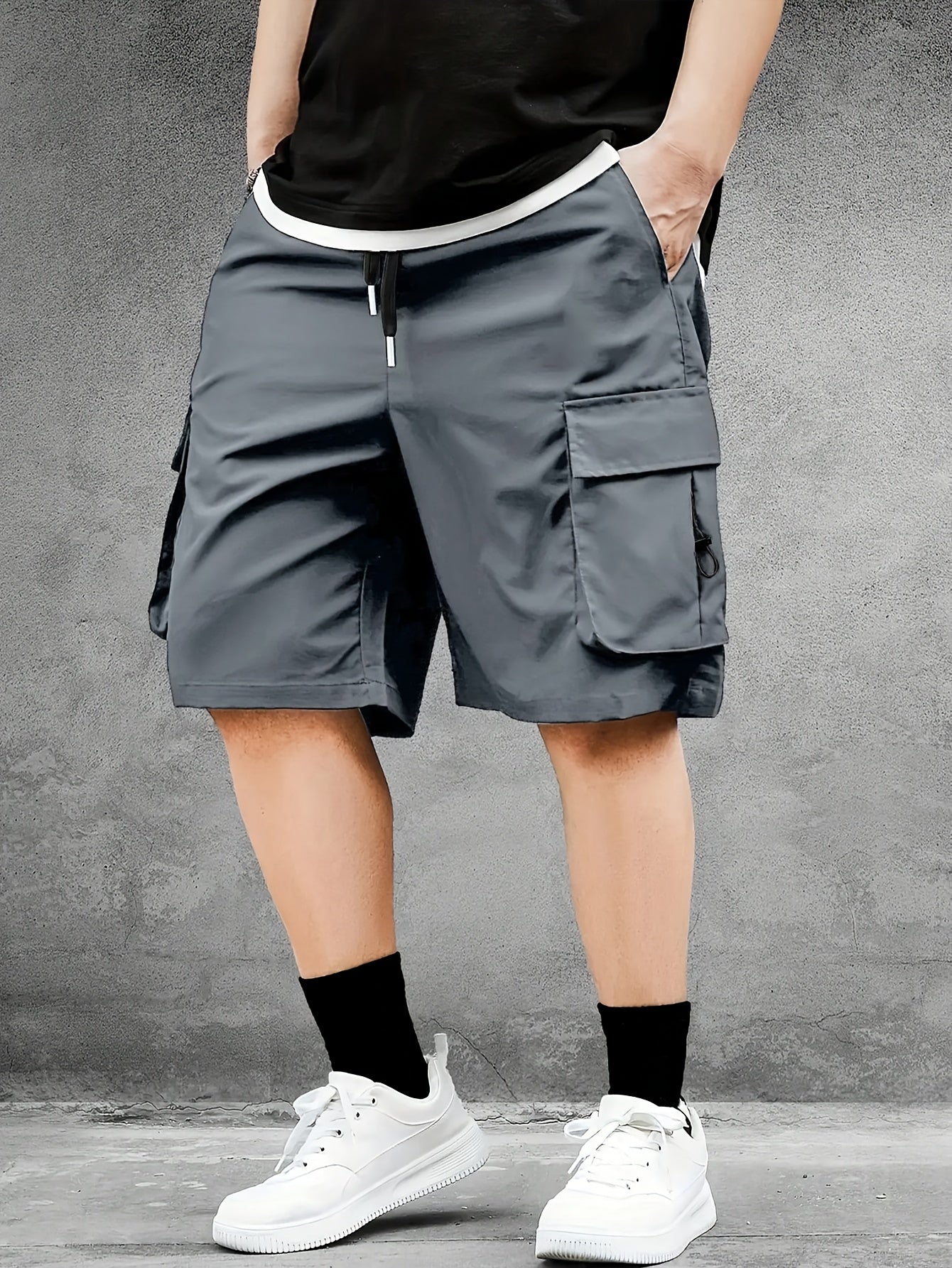 Տղամարդկանց ամերիկյան աշխատանքային շորտեր, սովորական, միաձույլ գույնի, չամրացված, պոլիեսթեր, հյուսված, մեծ տարողունակ գրպանով և անհատականության պարանով դիզայնով