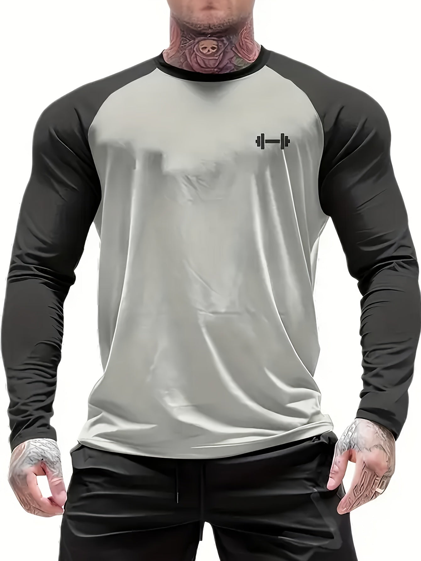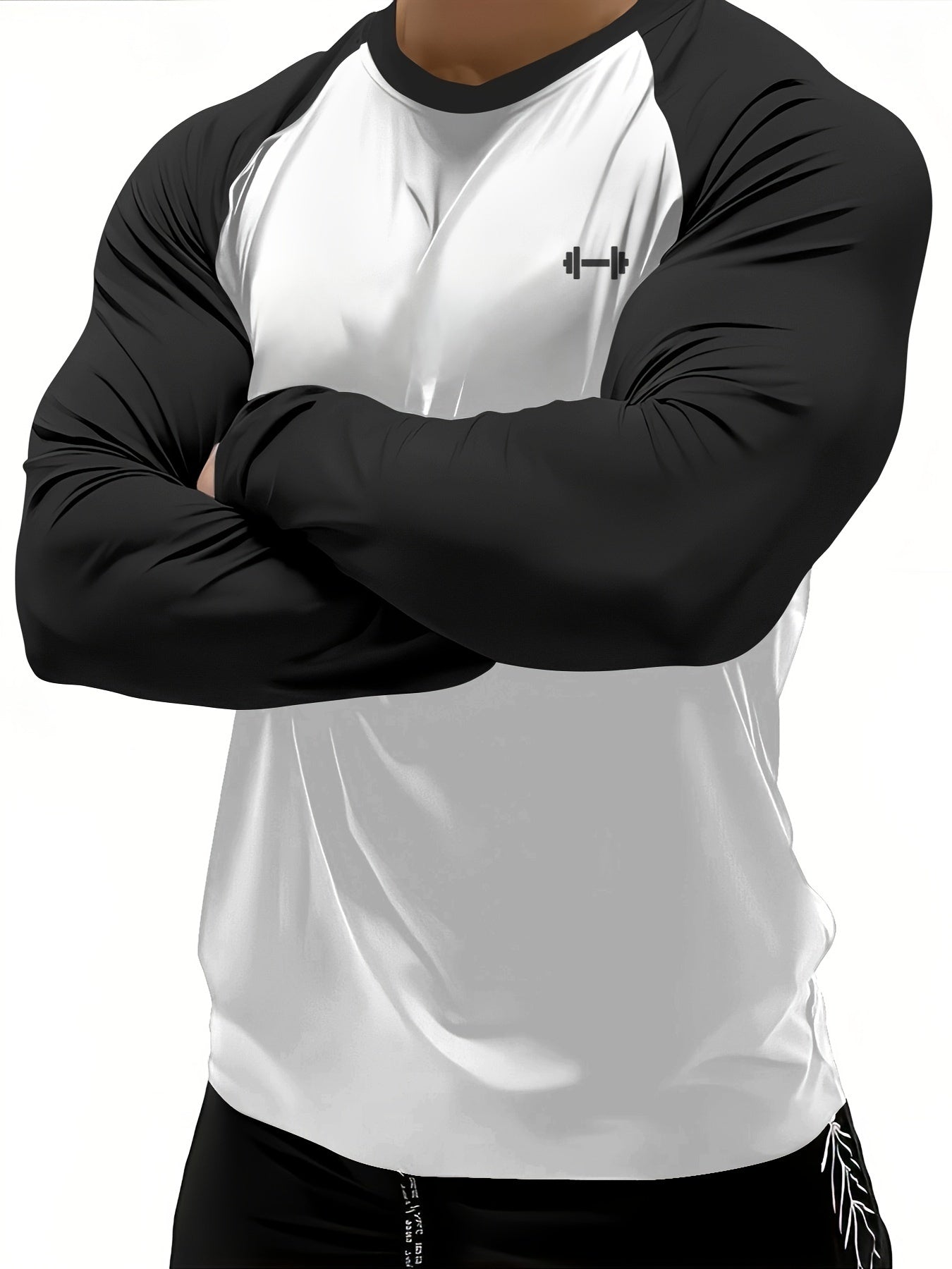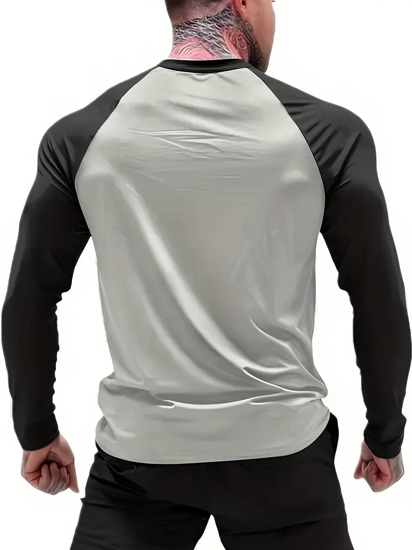 Տղամարդկանց սպորտային կոմպրեսիոն երկարաթև շապիկ՝ արագ չորացող, շնչող, գրաֆիկական տպագրությամբ, պարանոցով, ձգվող գործվածքով.