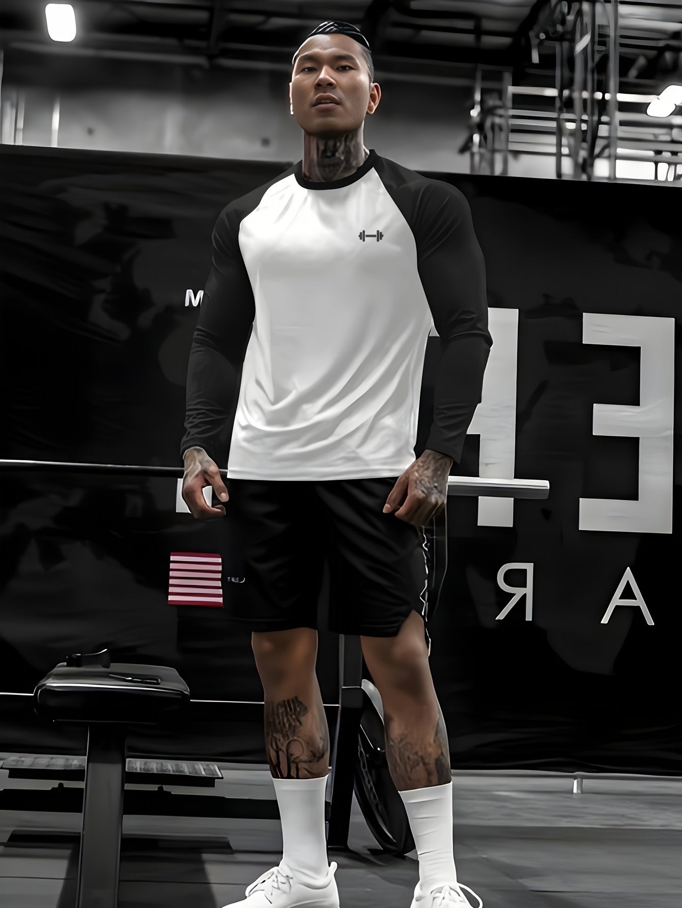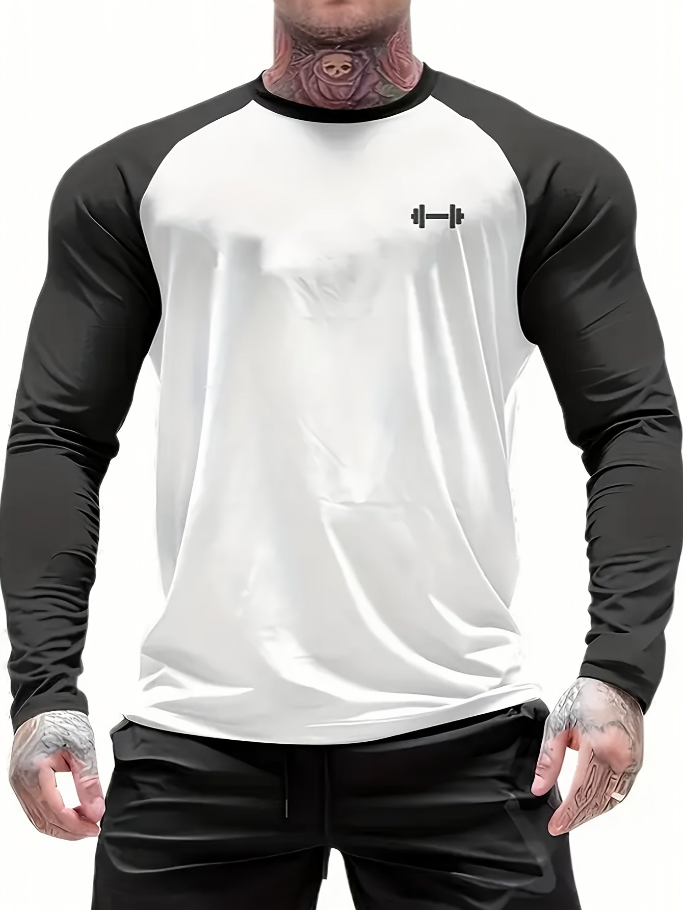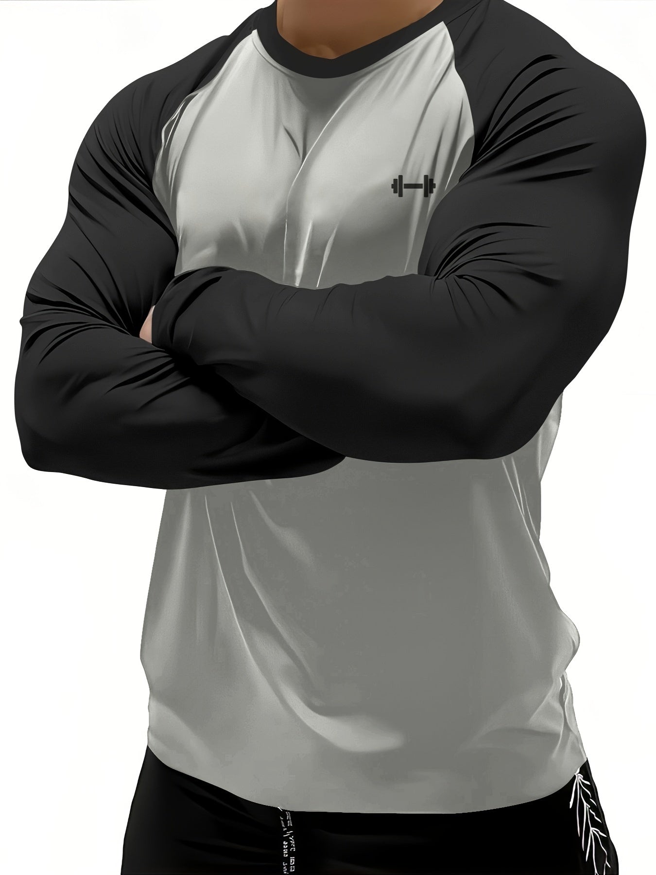 Տղամարդկանց սպորտային կոմպրեսիոն երկարաթև շապիկ՝ արագ չորացող, շնչող, գրաֆիկական տպագրությամբ, պարանոցով, ձգվող գործվածքով.
