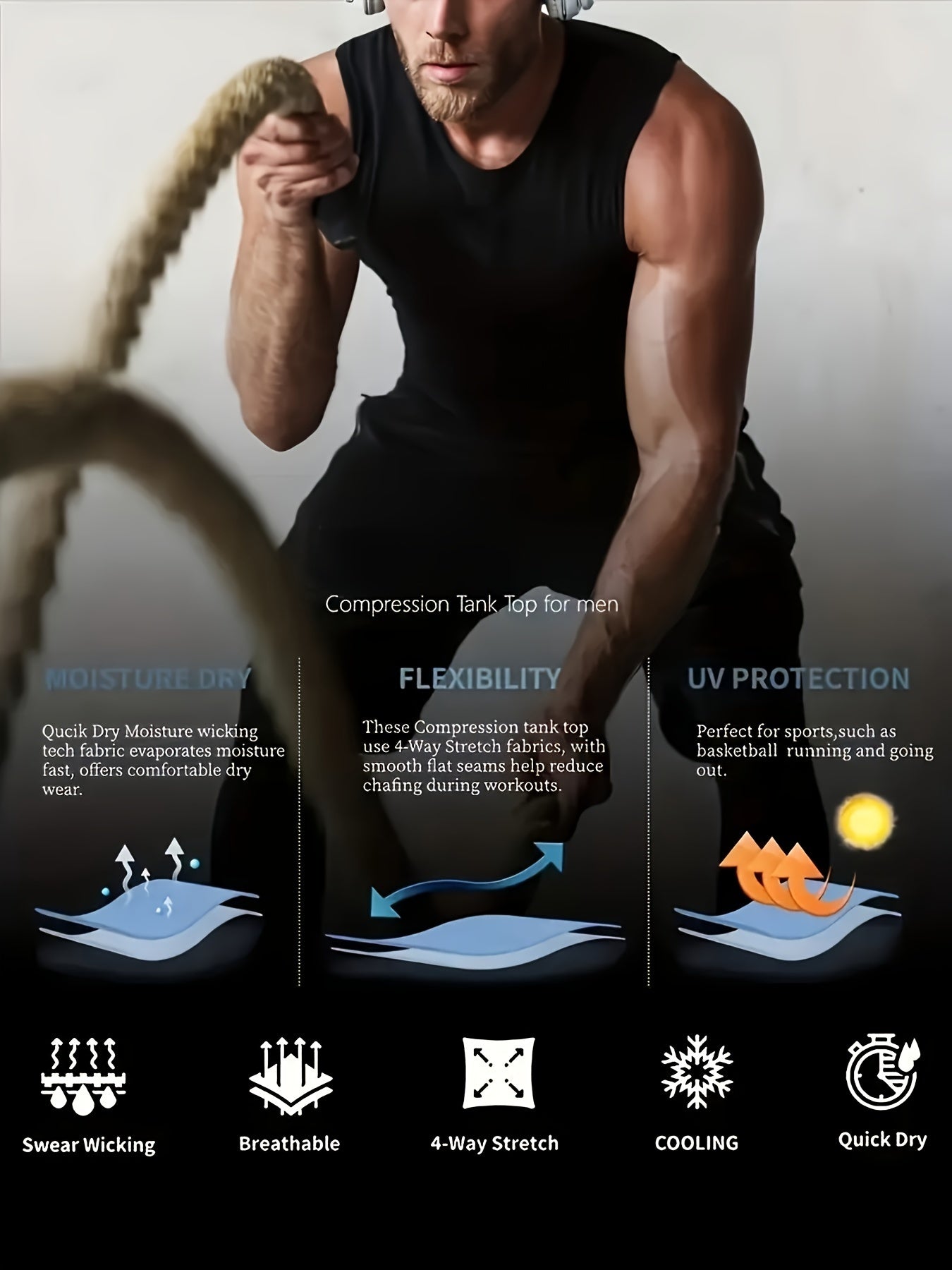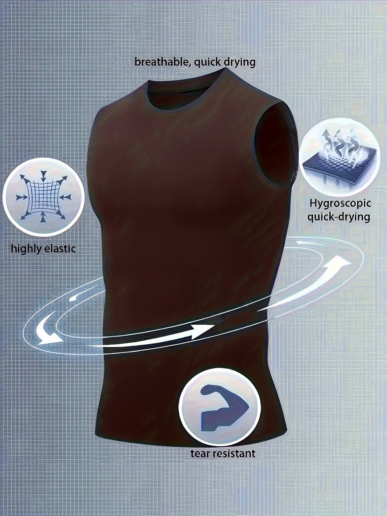 Տղամարդկանց սպորտային անթև վերնաշապիկ, բարձր ձգվող տրիկոտաժե գործվածք, միաձույլ գույն, պոլիեսթեր 94% սպանդեքս 6%, պարանոց, նիհար ֆիտ, արագ չորացում մարզասրահ մարզման ժիլետ