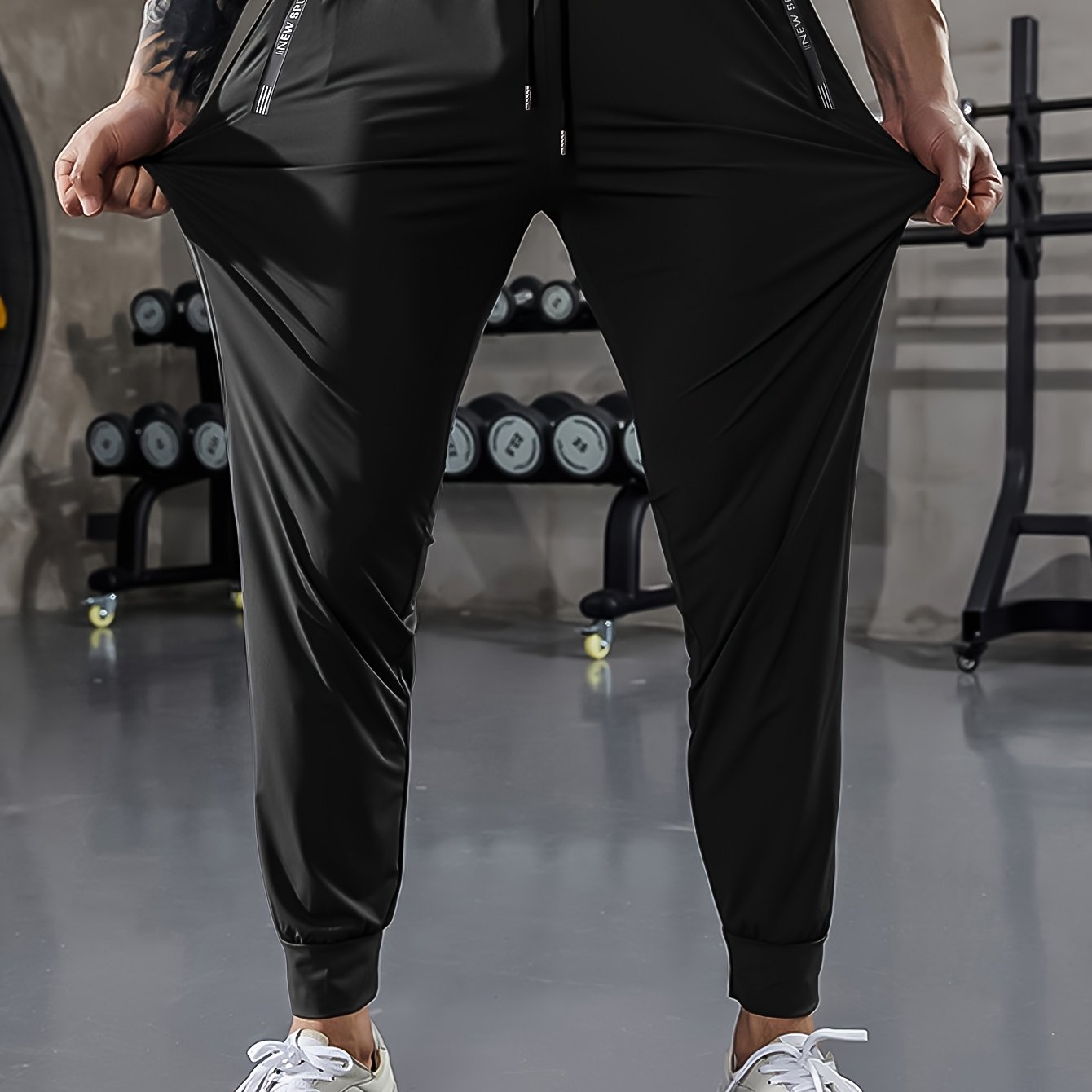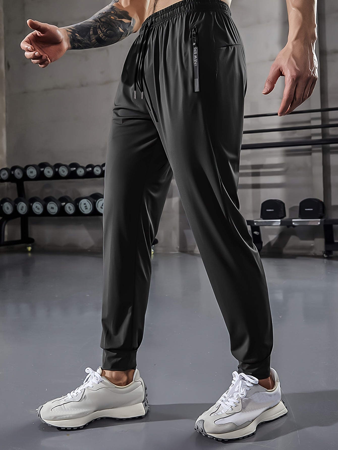 Տղամարդկանց սպորտային ձգվող տաբատ՝ կարգավորվող գոտկատեղով, կայծակաճարմանդ գրպաններով և միաձույլ գույնով, արագ չորացող ջոջեր, կատարյալ ֆիթնեսի և վազքի մարզումների համար: