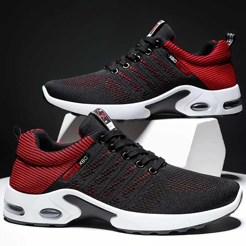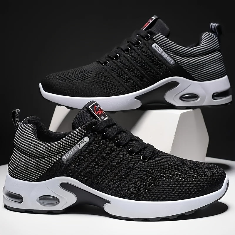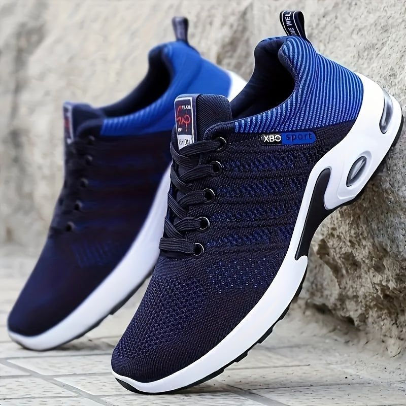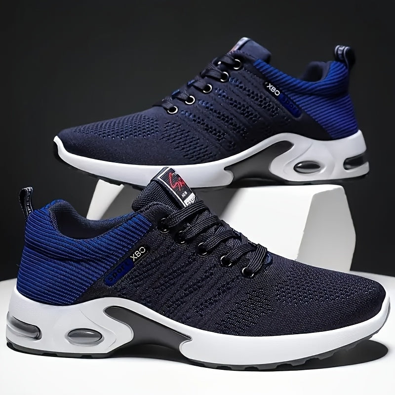 Տղամարդու շնչող սպորտային կոշիկներ - Թեթև, չսահող վազքի կոշիկներ՝ օդային բարձիկով, քայլելու, մարզվելու և սպորտաձևերի համար, մուգ կապույտ տրիկոտաժե վերնամասով, միջին ներբանով, կապիչներով փակվող, քայլքի սպորտային կոշիկներ | Նրբագեղ սպորտային կոշիկներ | Brea