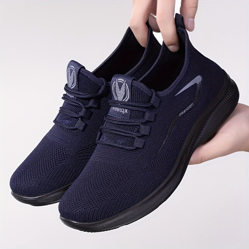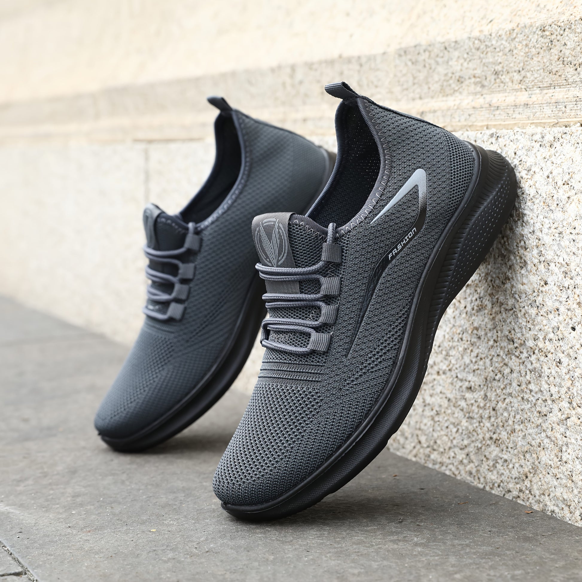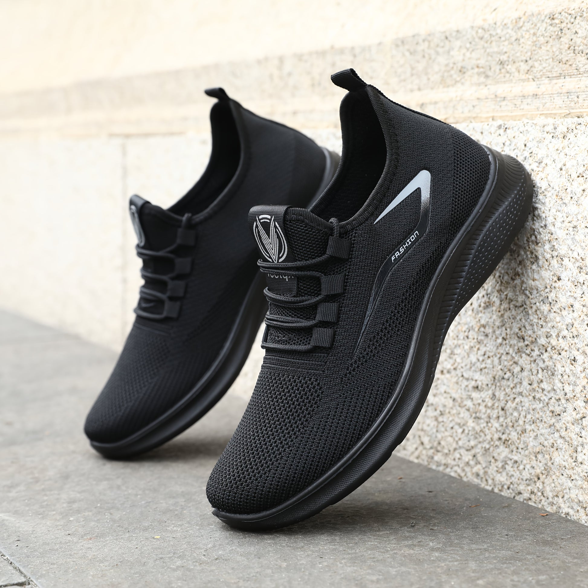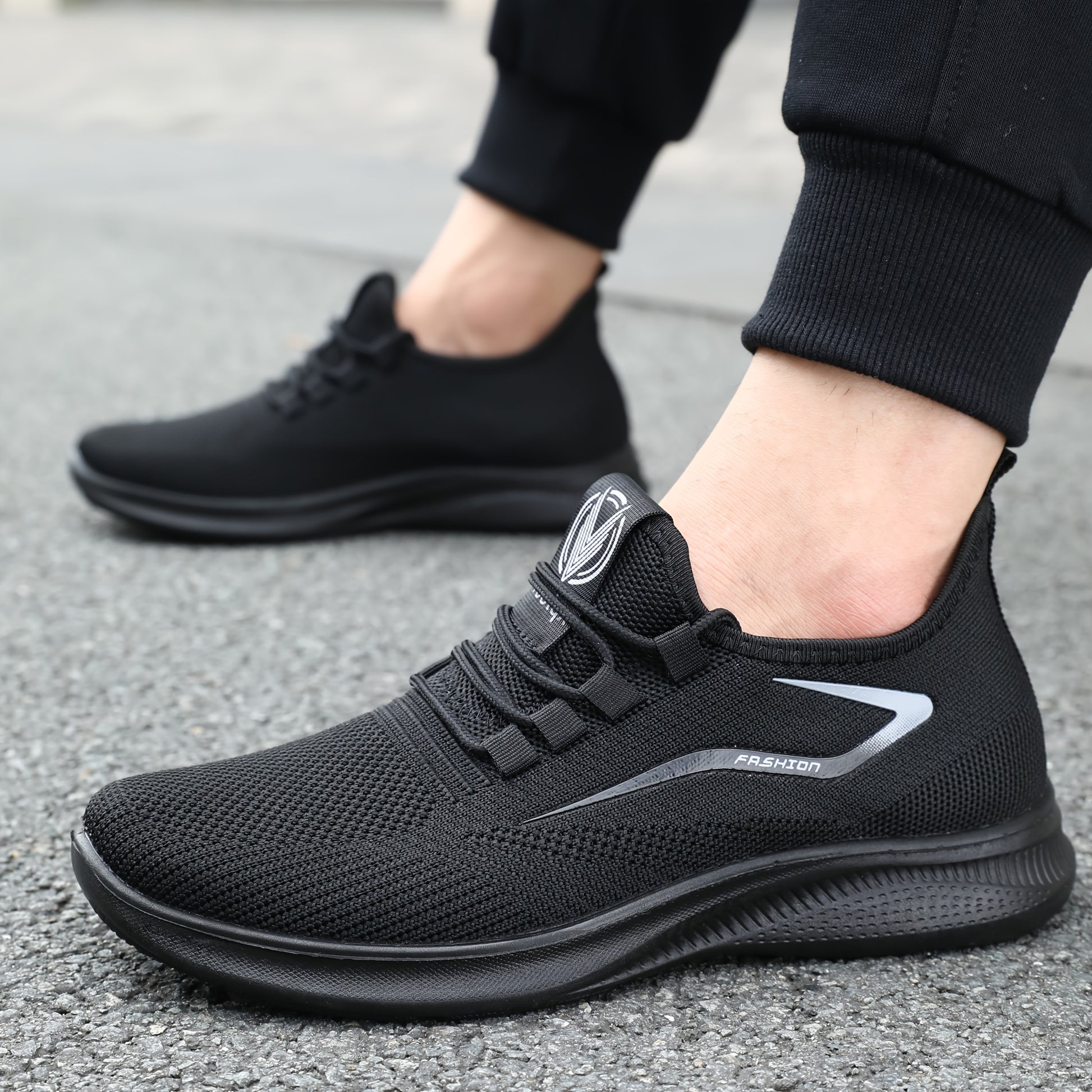 Տղամարդու շնչող սև վազքի կոշիկներ - առօրյա, կապվող սպորտային կոշիկներ՝ ոճային լոգոտիպով, ռետինե ներբան՝ բոլոր եղանակների հարմարավետության համար, վազքի կոշիկ | Նորաձև առօրյա կոշիկներ | Շնչող գործվածք
