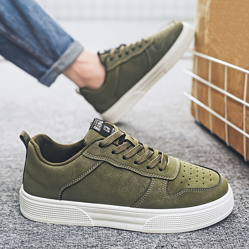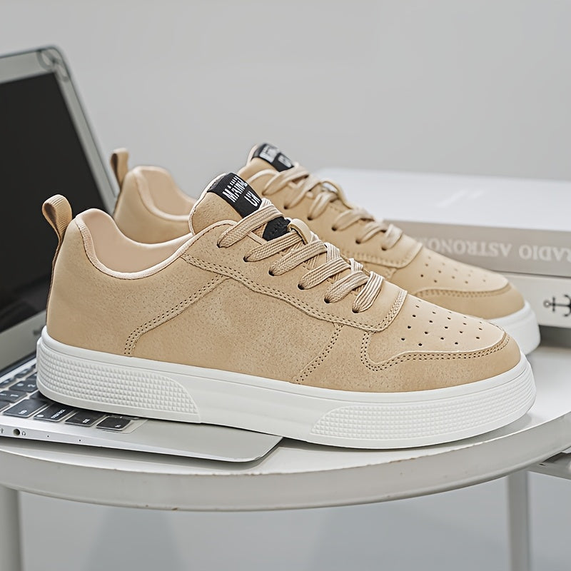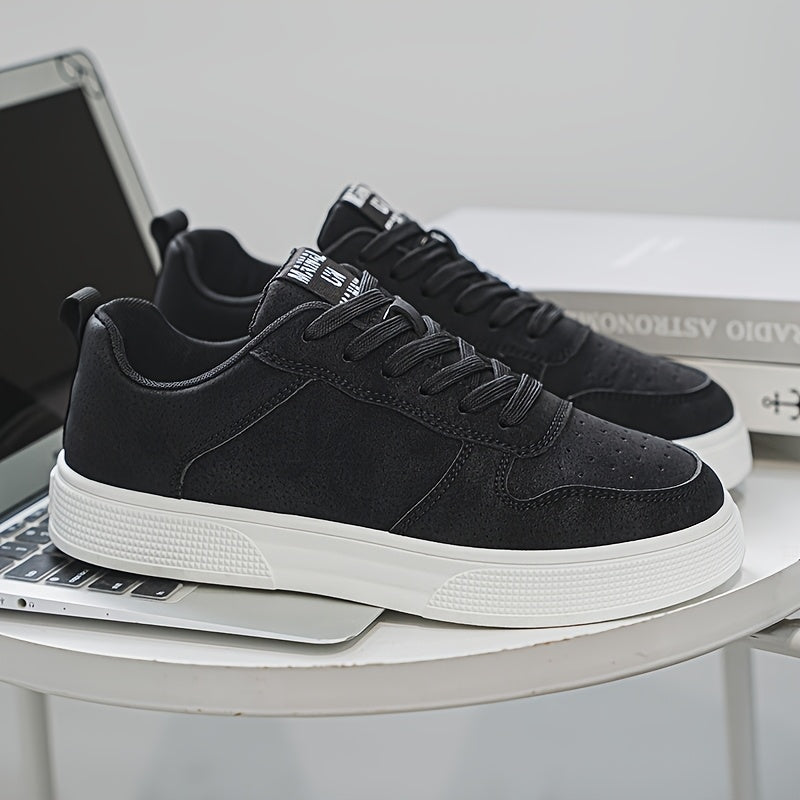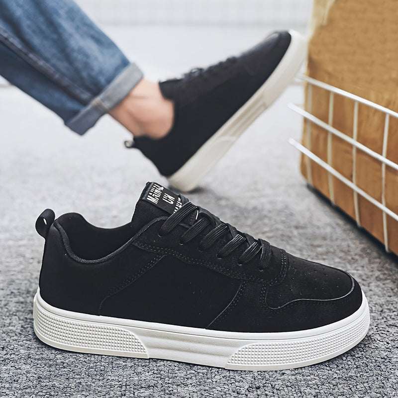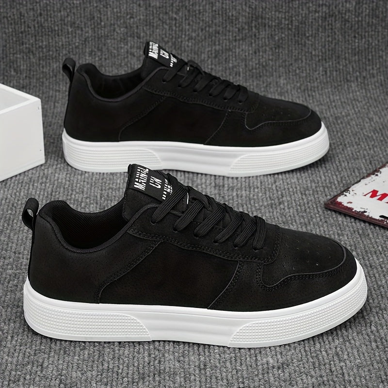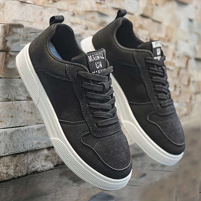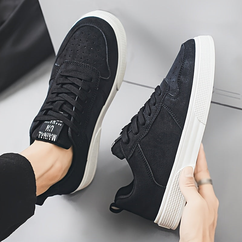 Տղամարդկանց շնչող պատահական սքեյթ կոշիկներ. ոճային ցածր վերնամասով սպորտային կոշիկներ «MANUAL» գրաֆիկայով, ժանյակներով, սպիտակ ներբաններով՝ ամենօրյա հագուստի և բացօթյա գործունեության համար