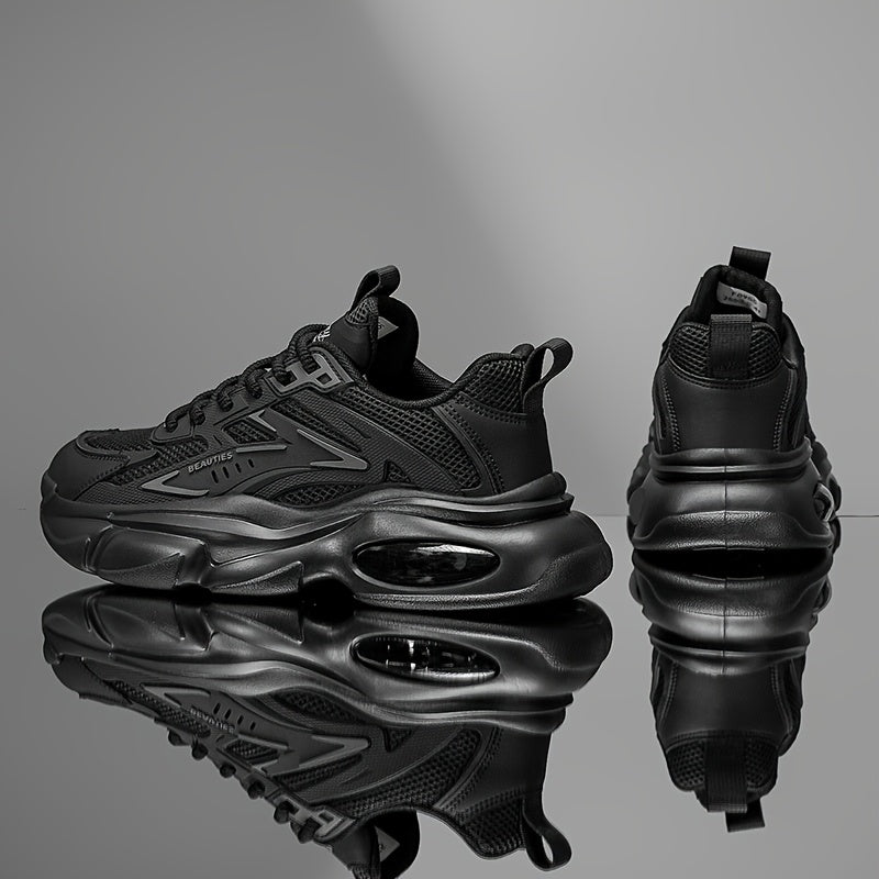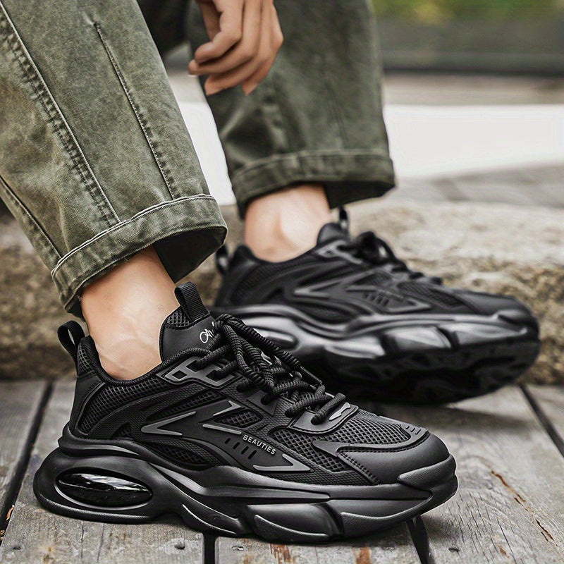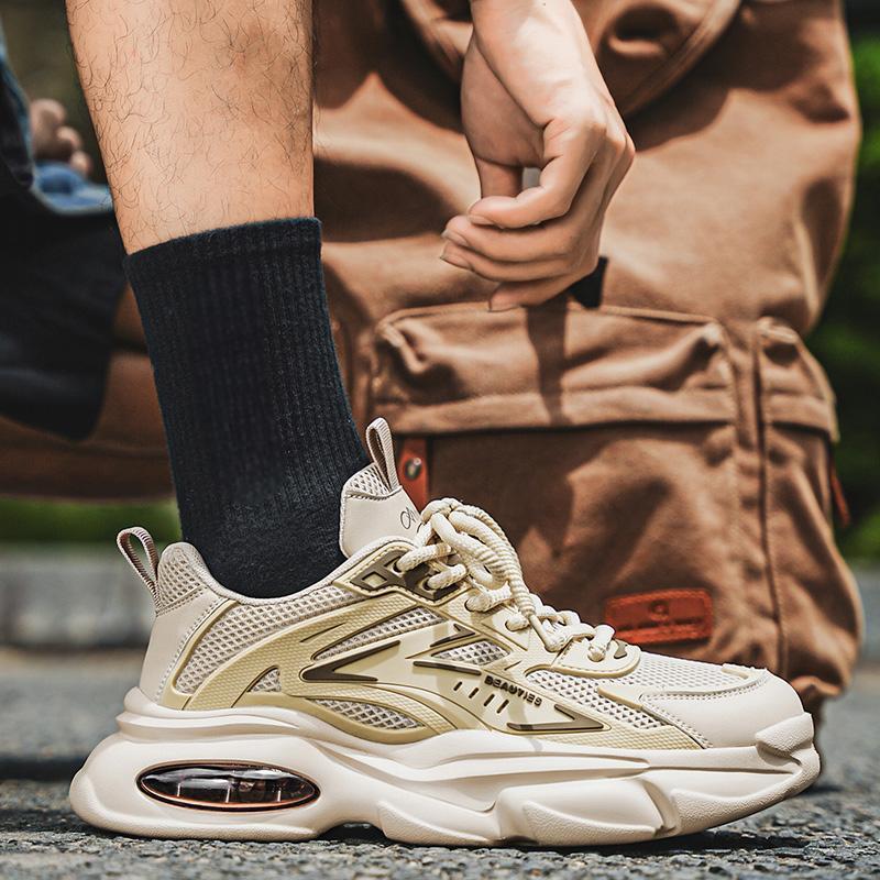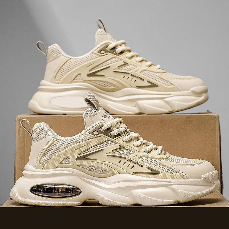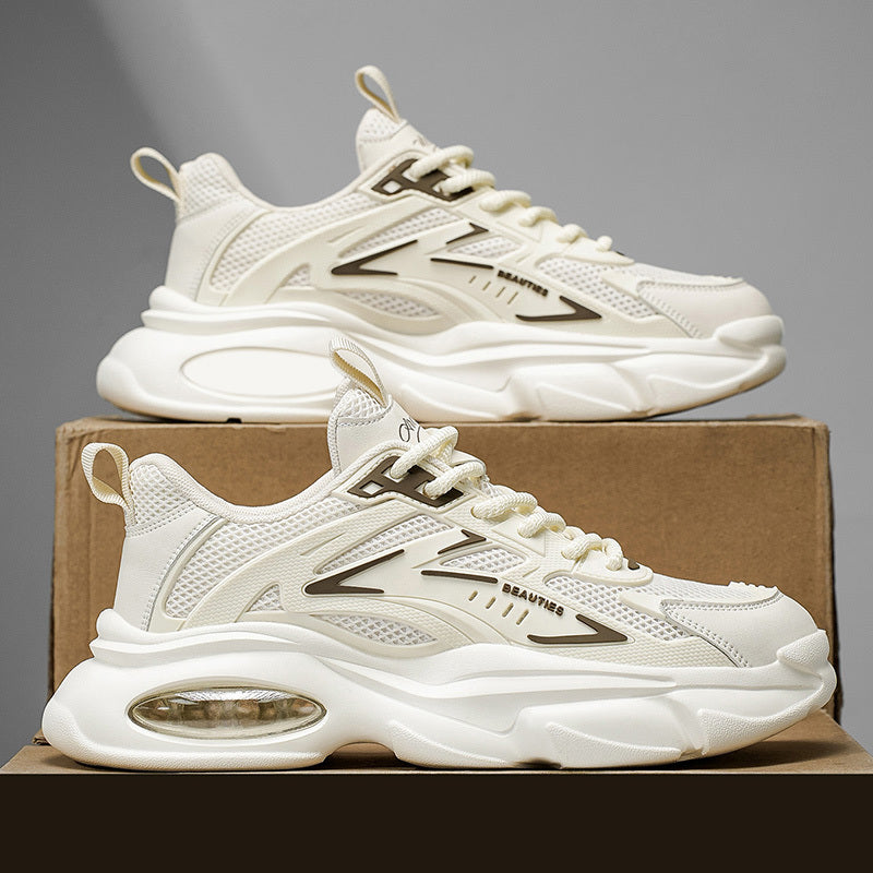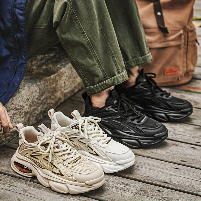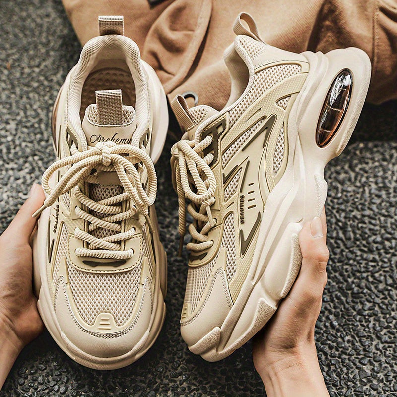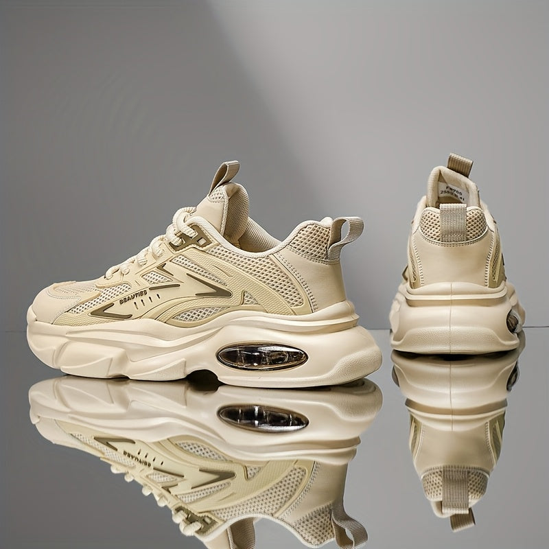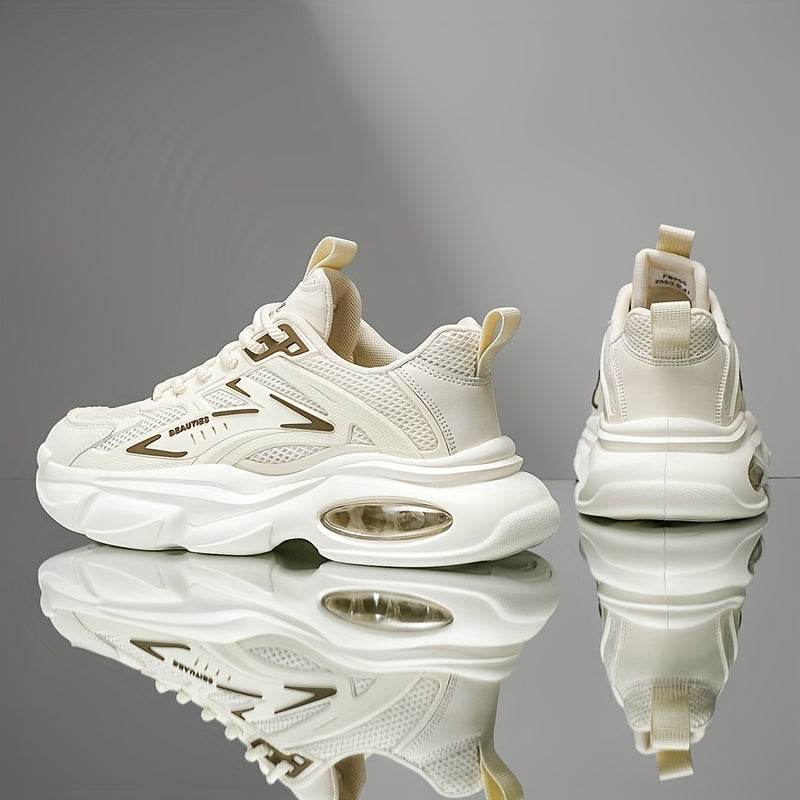 Men'S Breathable Mesh Faux Low-Top Sneakers - Lightweight Cushioned Air Cushioning, White Golden Accents, Lace-Up Casual Shoes for Running, Hiking, Gym Casual Attire, Gym Shoes, Modern Sneakers, Fabric Lined Interior