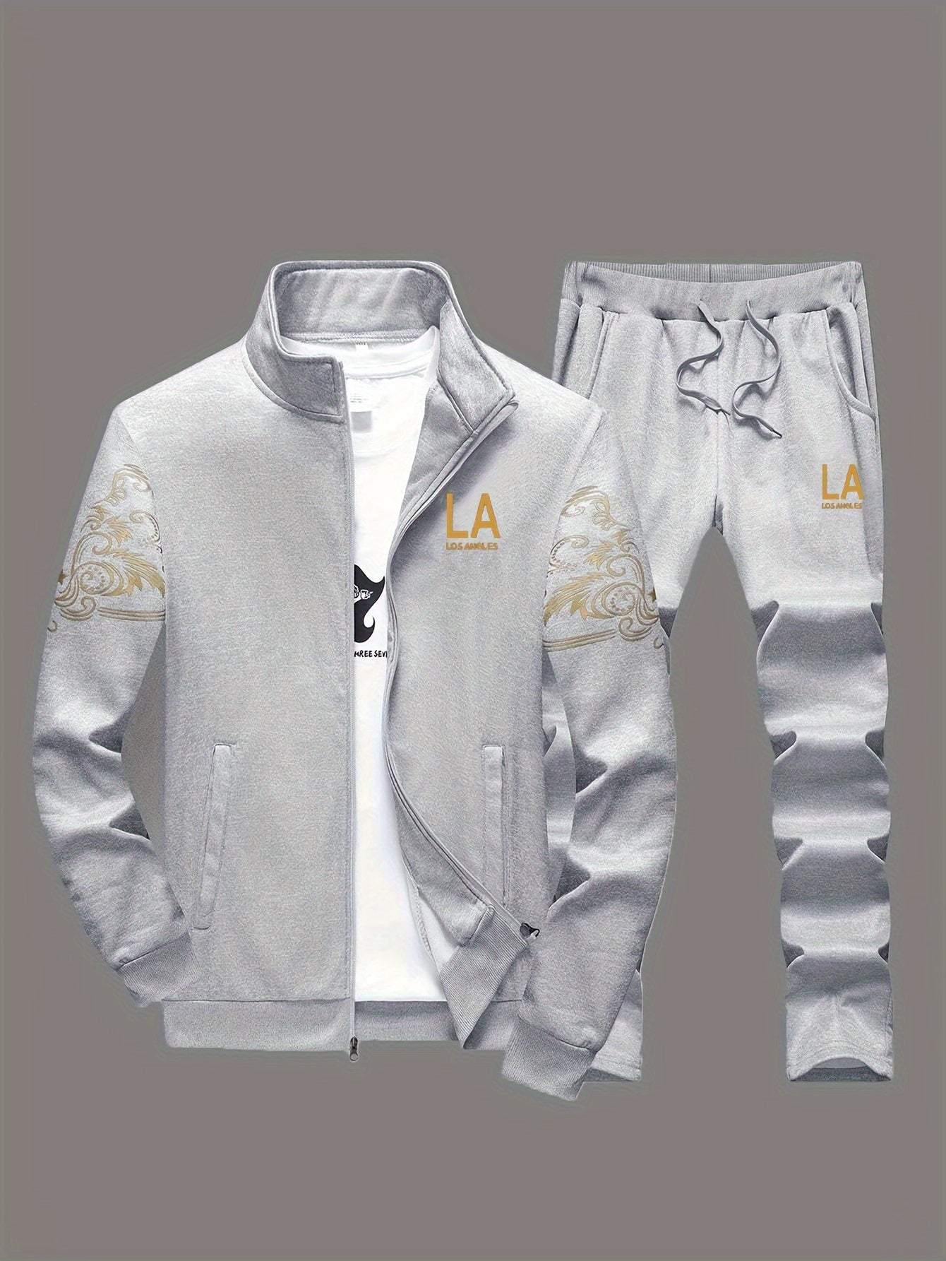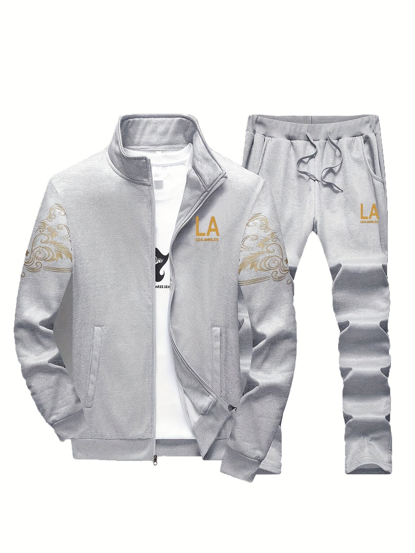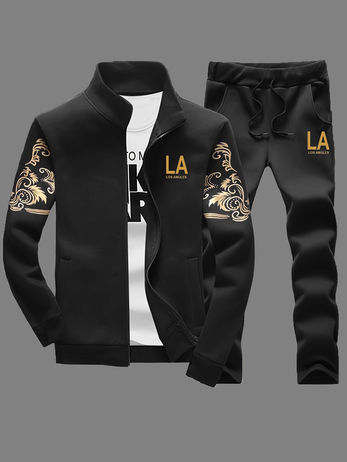 Տղամարդկանց պատահական 2-կտորանոց հանդերձանք, նորաոճ տպագրված ամբողջական կայծակաճարմանդ բաճկոն և շալվար, ամենօրյա սպորտային կոստյում