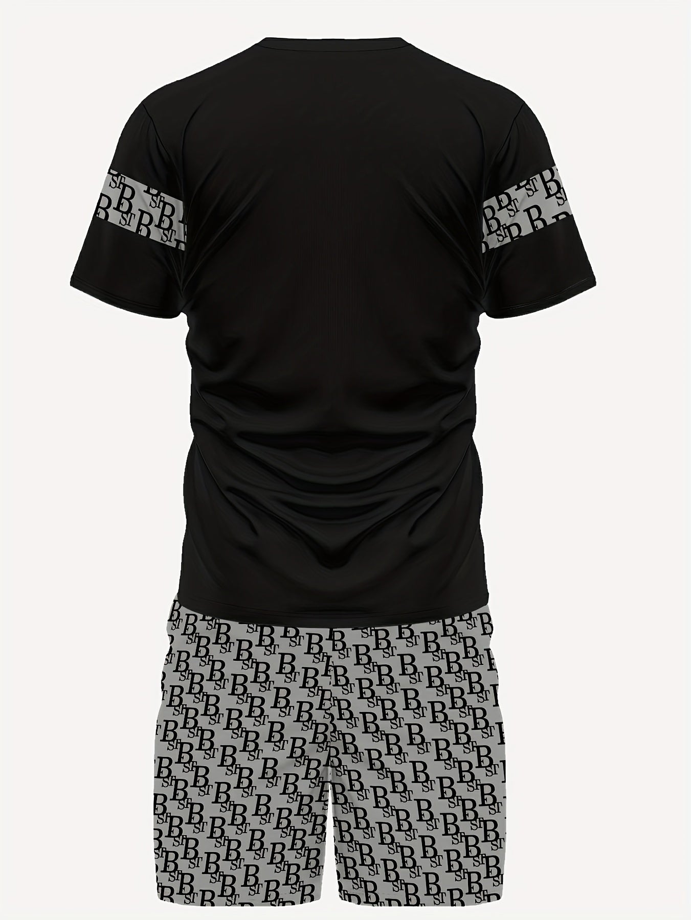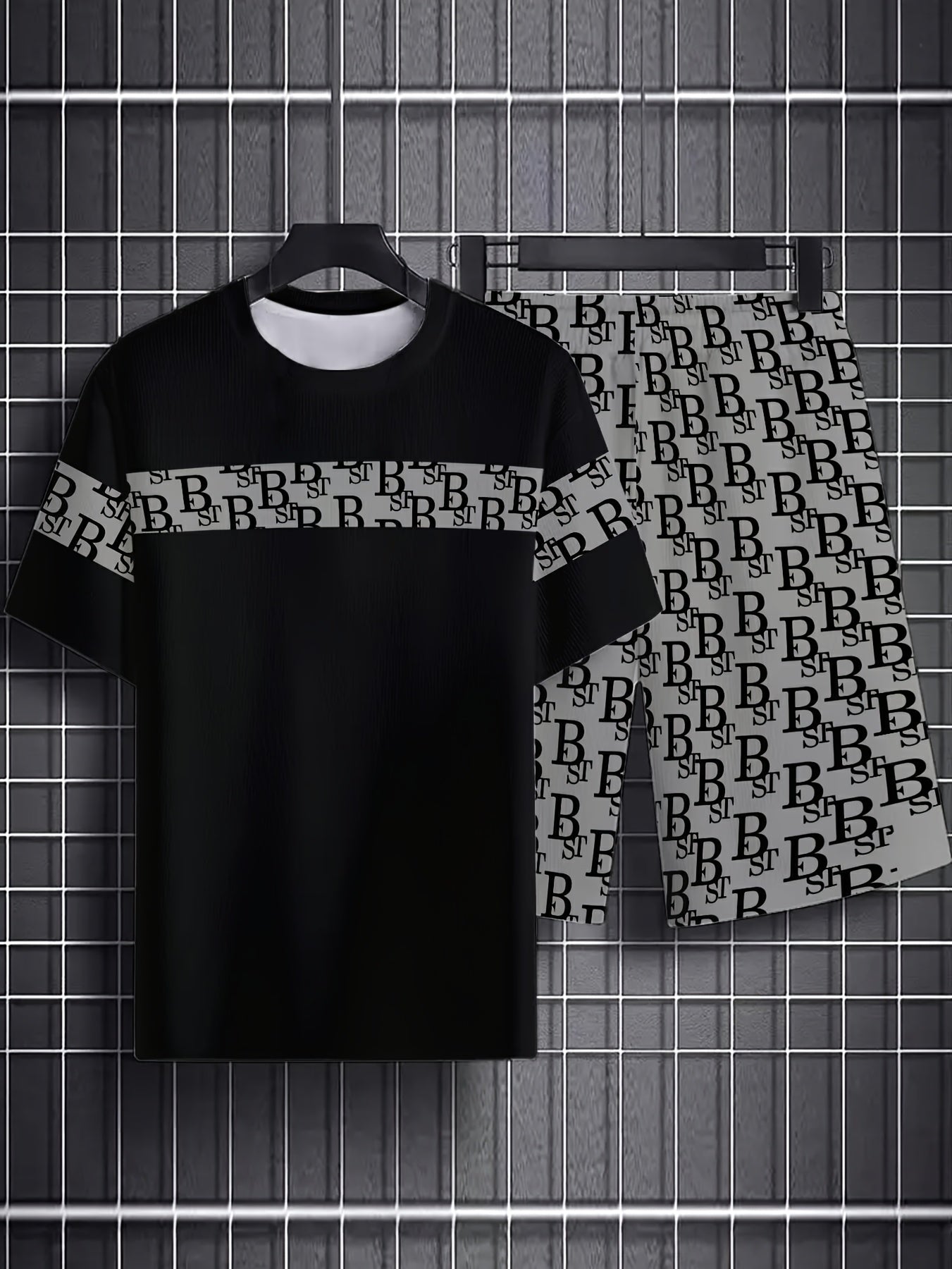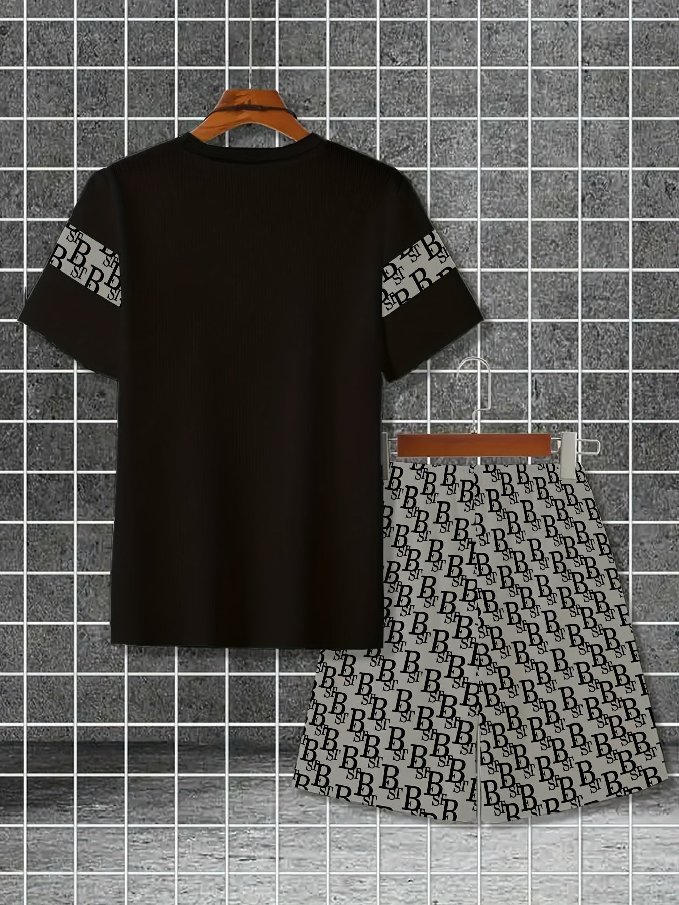 Տղամարդկանց առօրյա 3D տպագրությամբ սպորտային հագուստ՝ ամառային կլոր վզնոցով կարճ թևքերով շապիկ և շորտերի հավաքածու