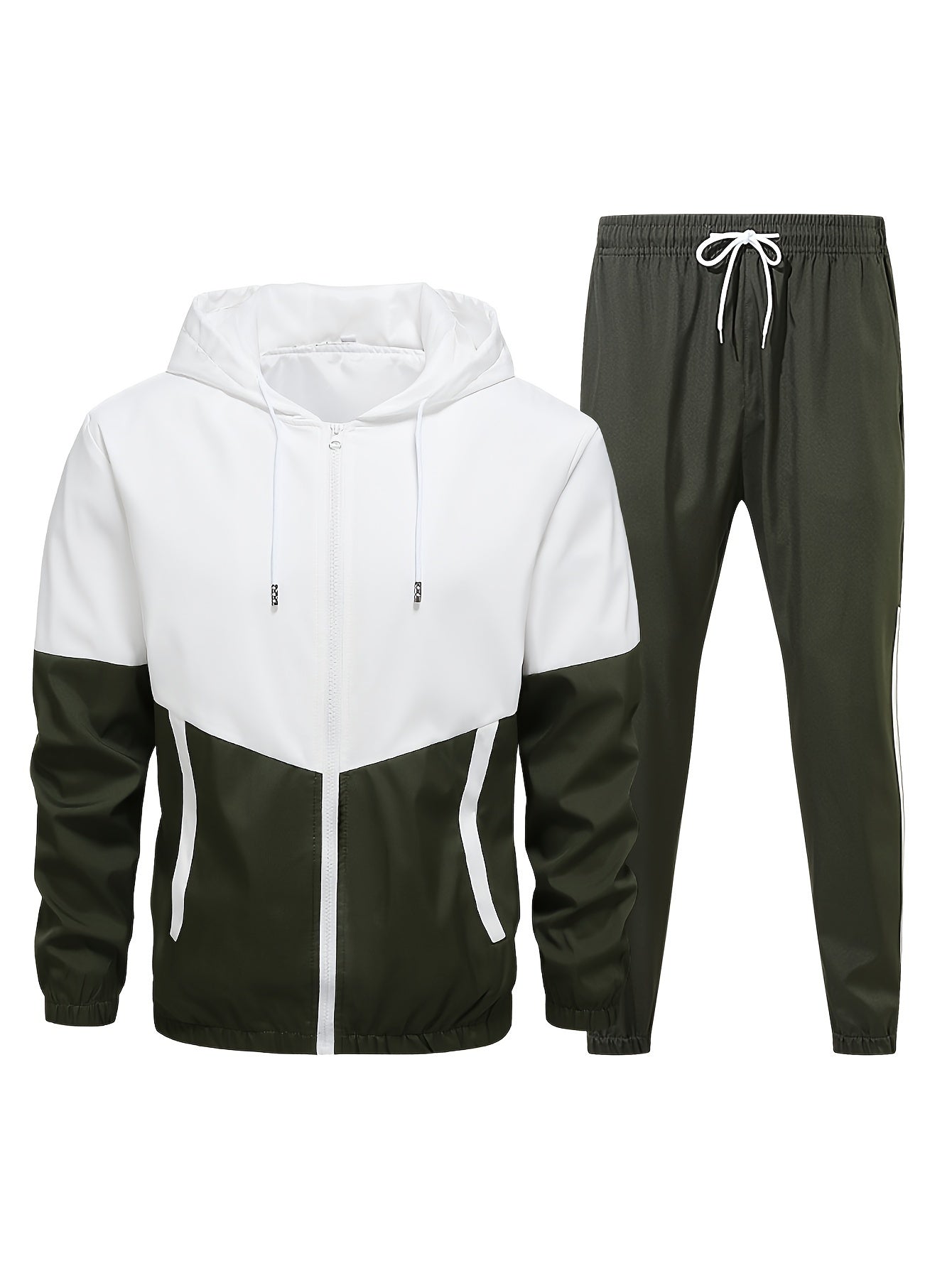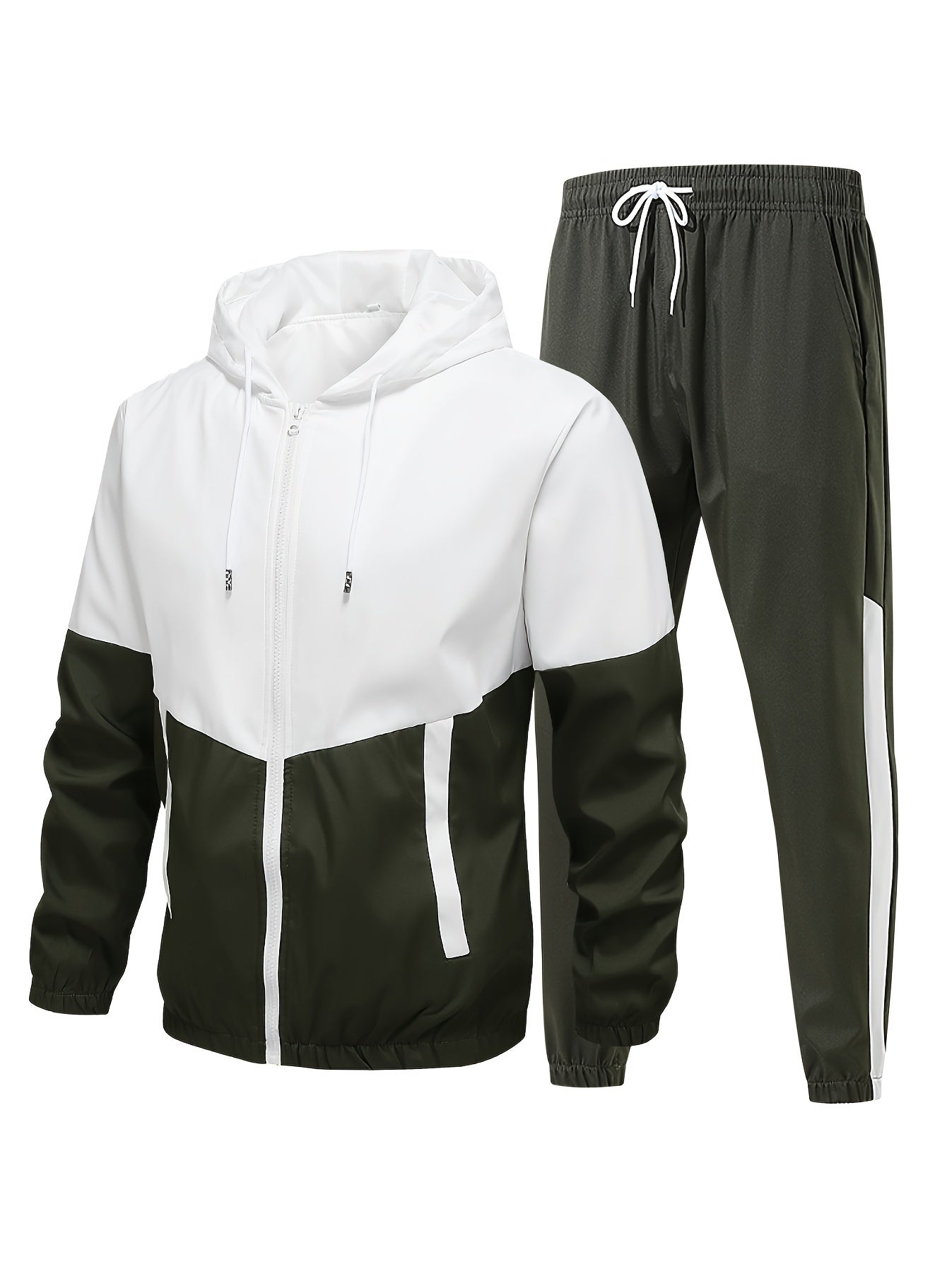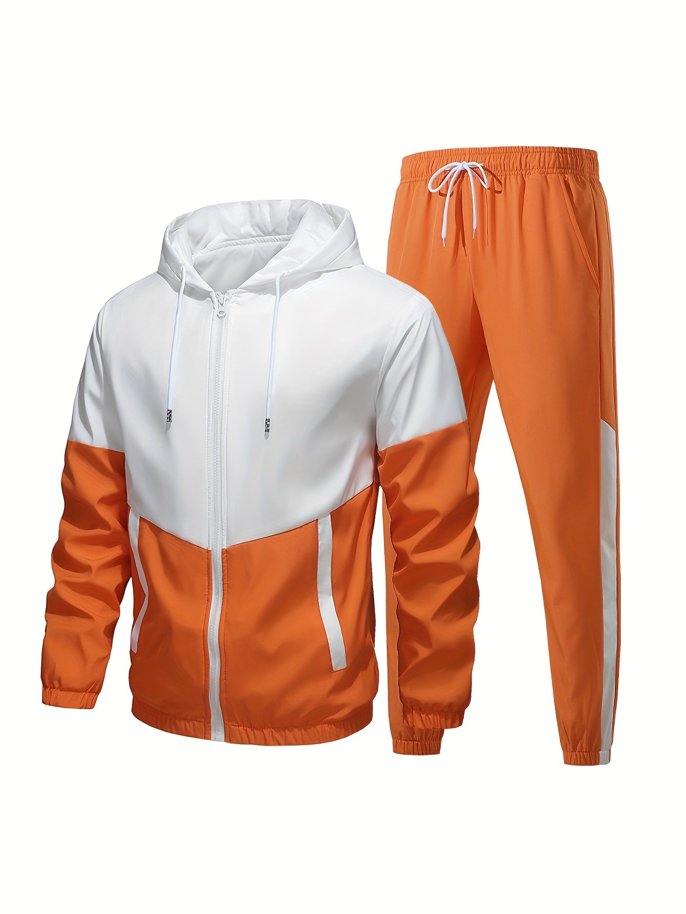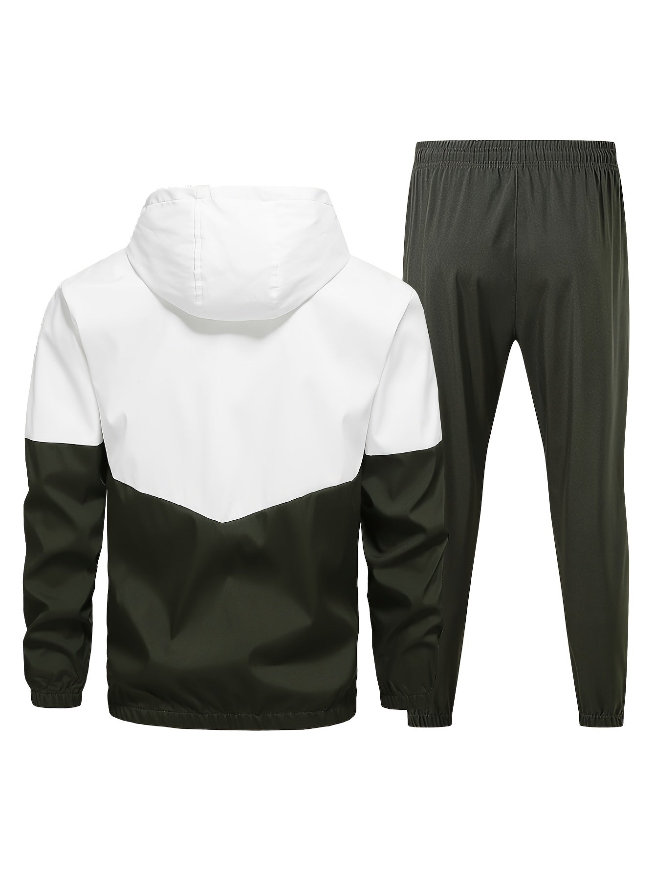 Men's Casual Athletic Hoodie and Pants Set - Color Block Design, Polyester, Machine Washable, Spring/Fall Sportswear, Blue & White Two-Piece Outfit, Everyday Activewear|Modern Athletic Look|Polyester Sportswear