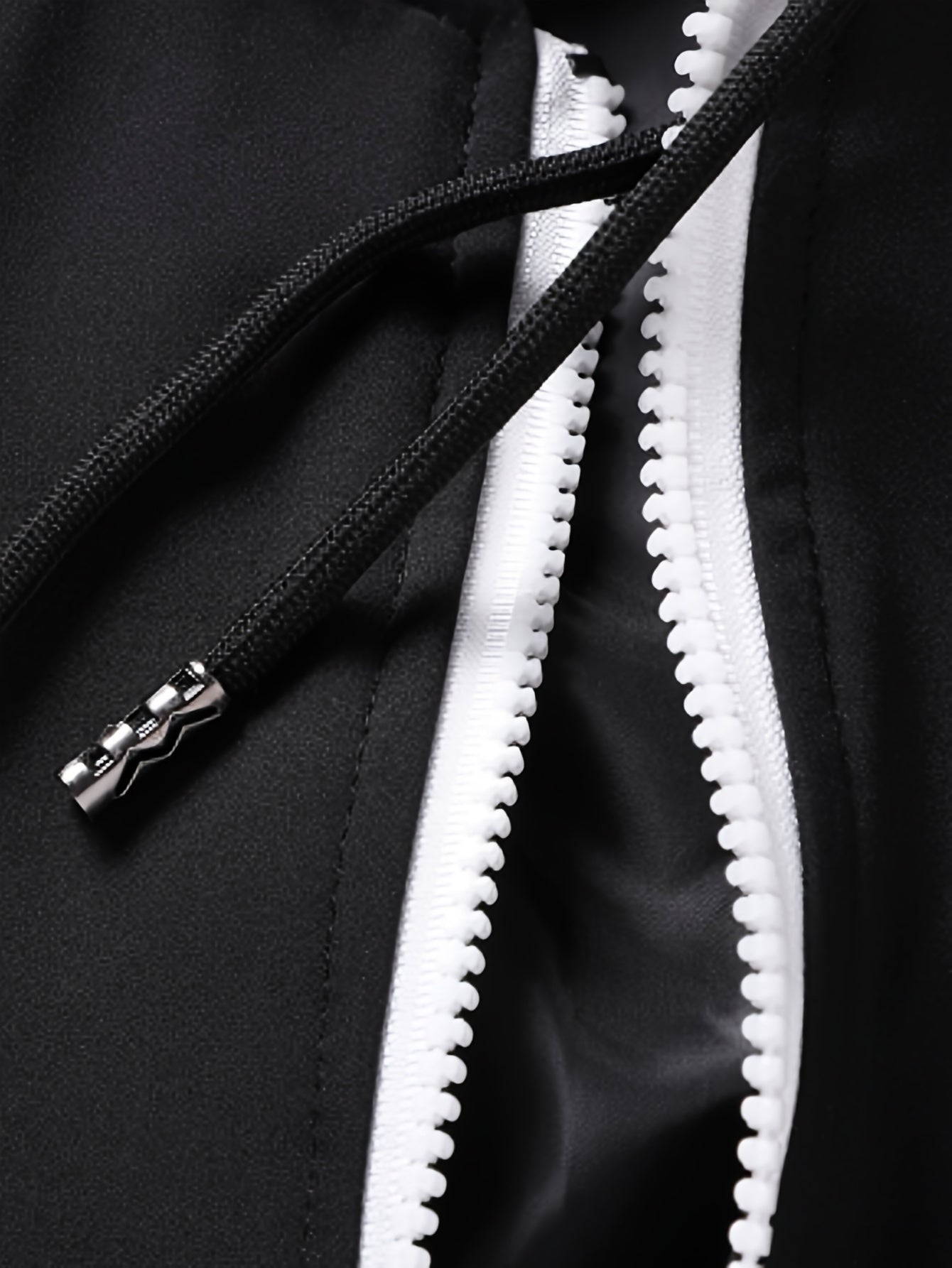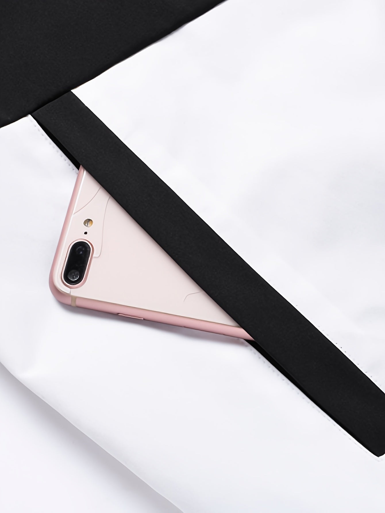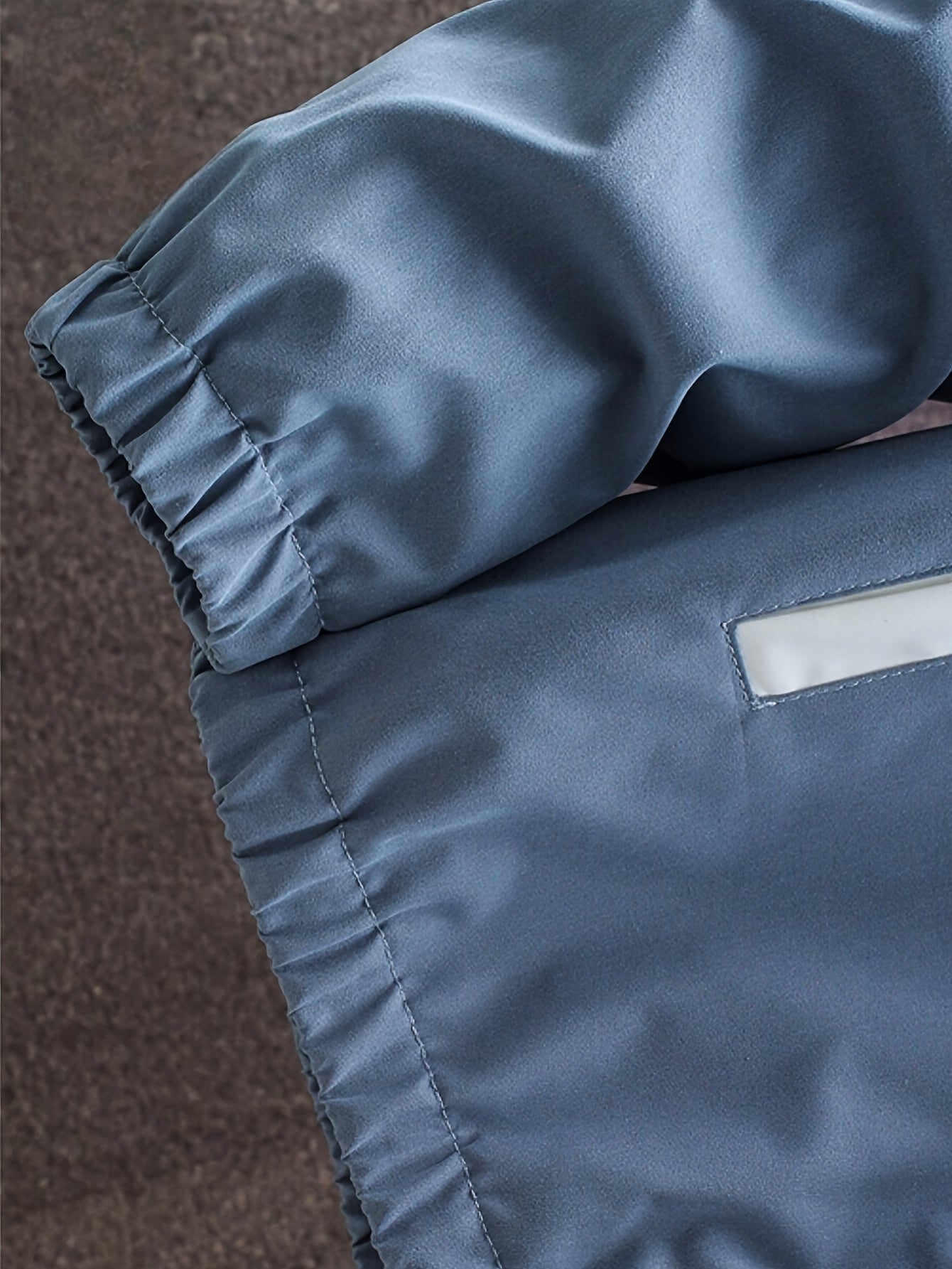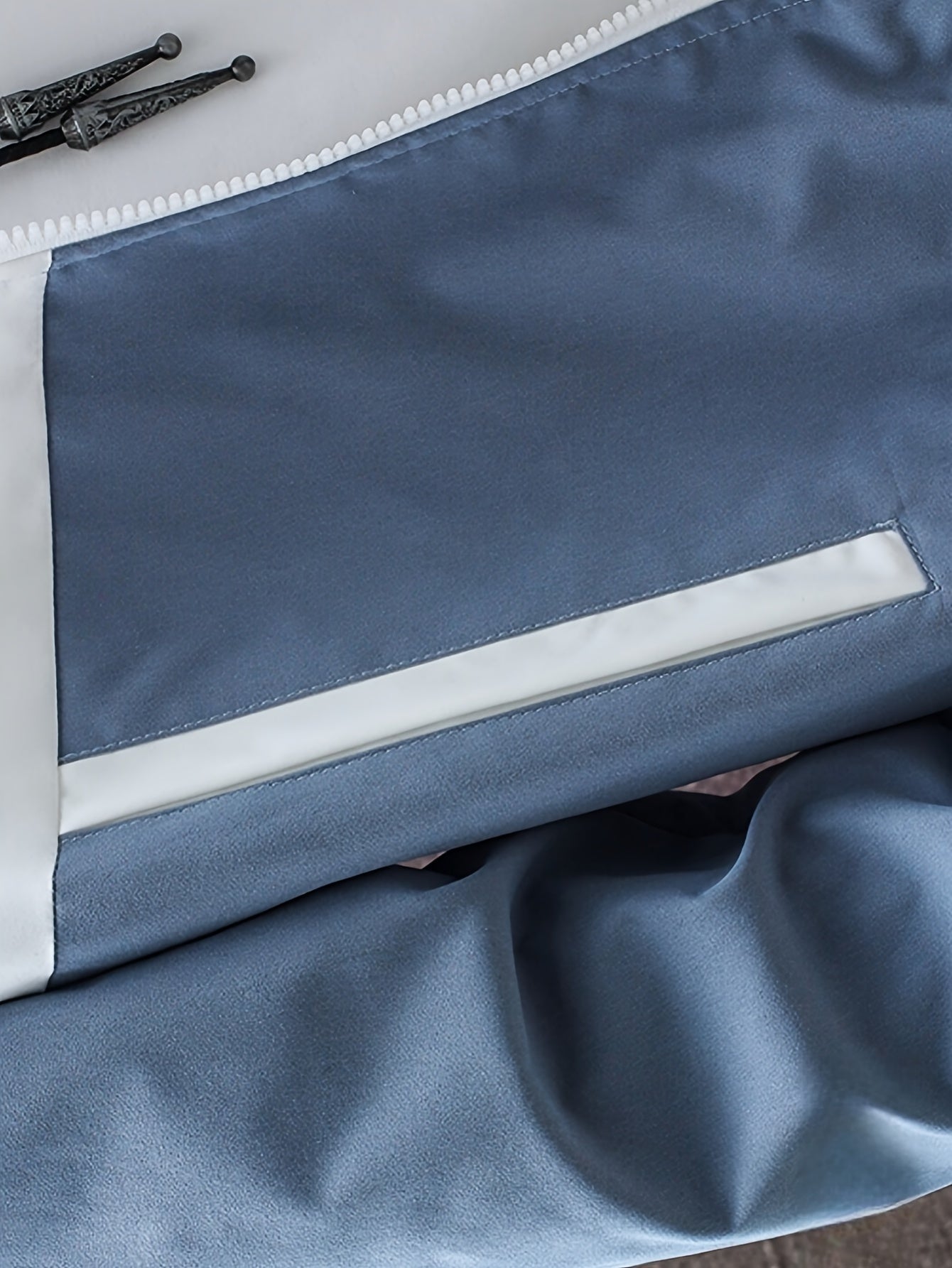 Men's Casual Athletic Hoodie and Pants Set - Color Block Design, Polyester, Machine Washable, Spring/Fall Sportswear, Blue & White Two-Piece Outfit, Everyday Activewear|Modern Athletic Look|Polyester Sportswear