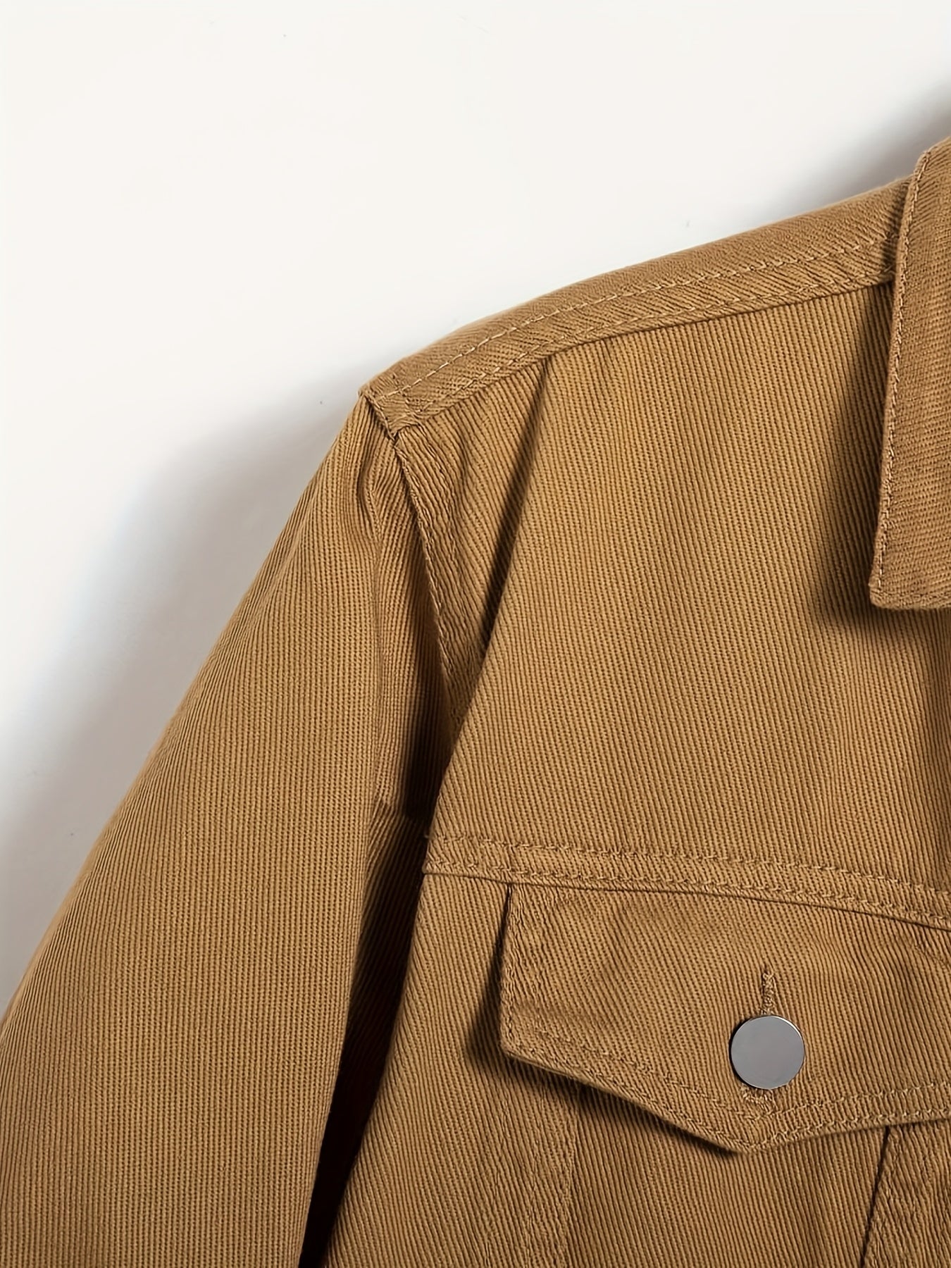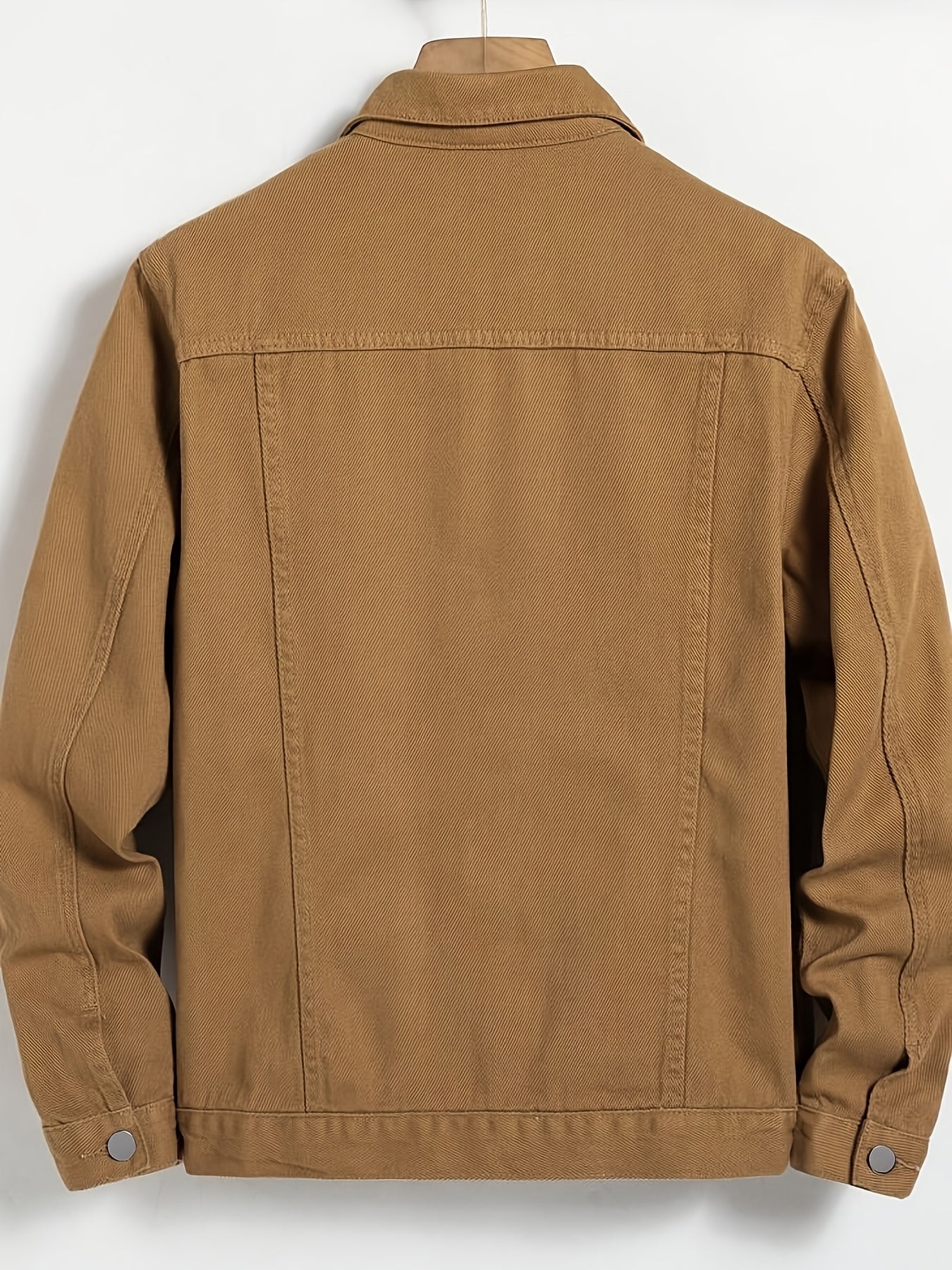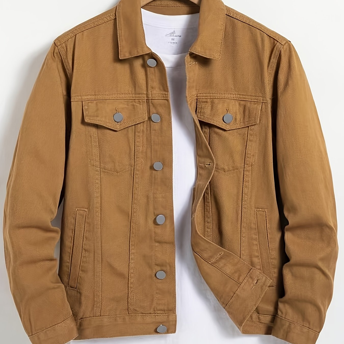 Տղամարդկանց պատահական շագանակագույն ջինսե բաճկոն - երկարաթև, փակվող առջևի կոճակով, կրծքավանդակի գրպաններ, չձգվող, մեքենայով լվացվող, դասական միաձույլ դիզայն, պատահական վերնազգեստ | Դասական բաճկոնների դիզայն | Երկարակյաց ջինսե գործվածք
