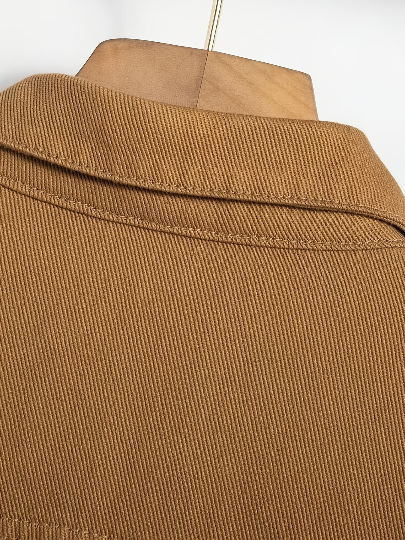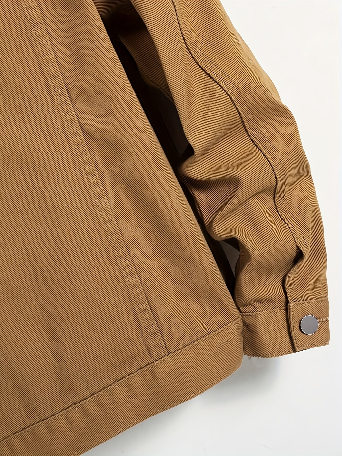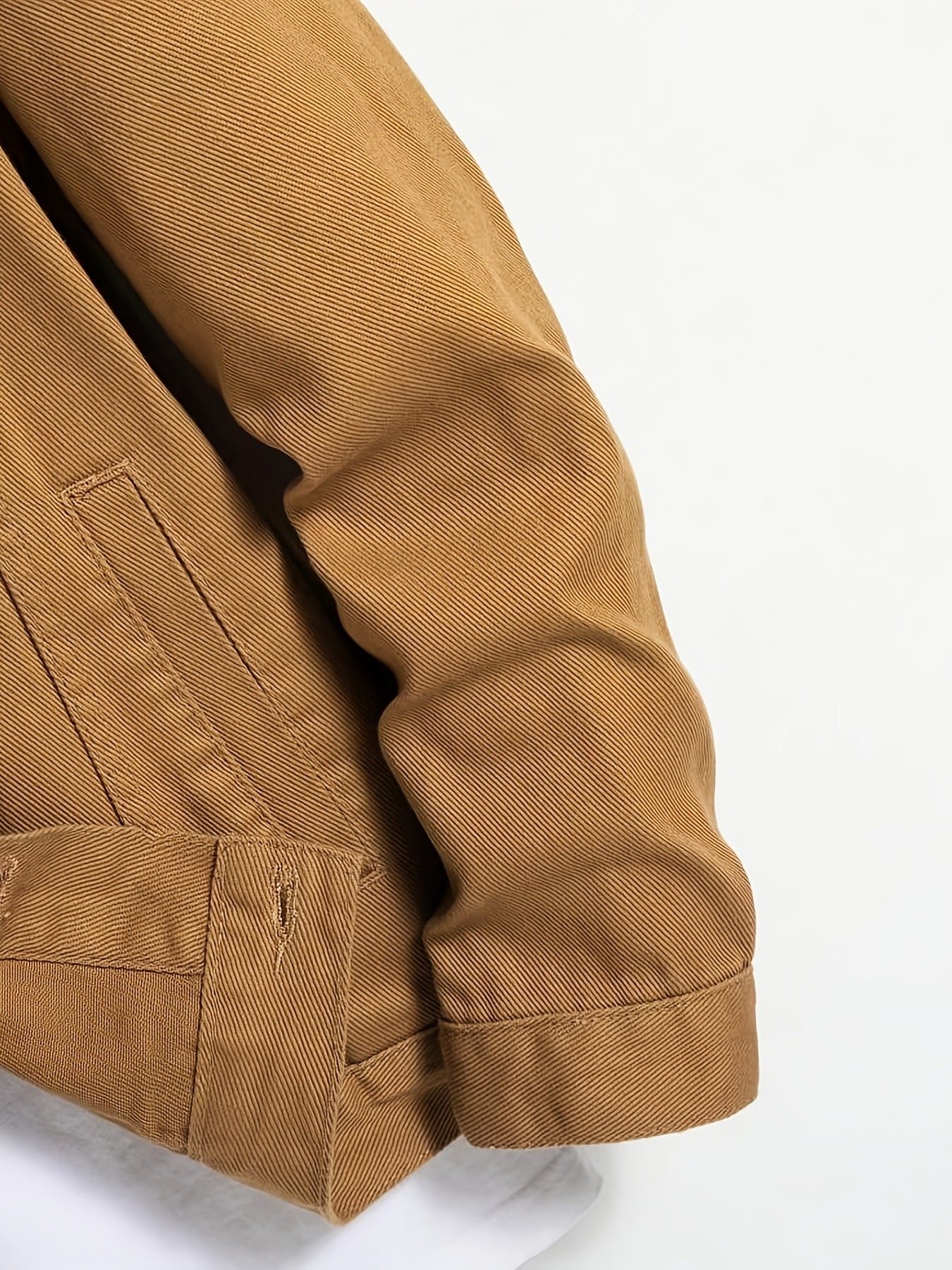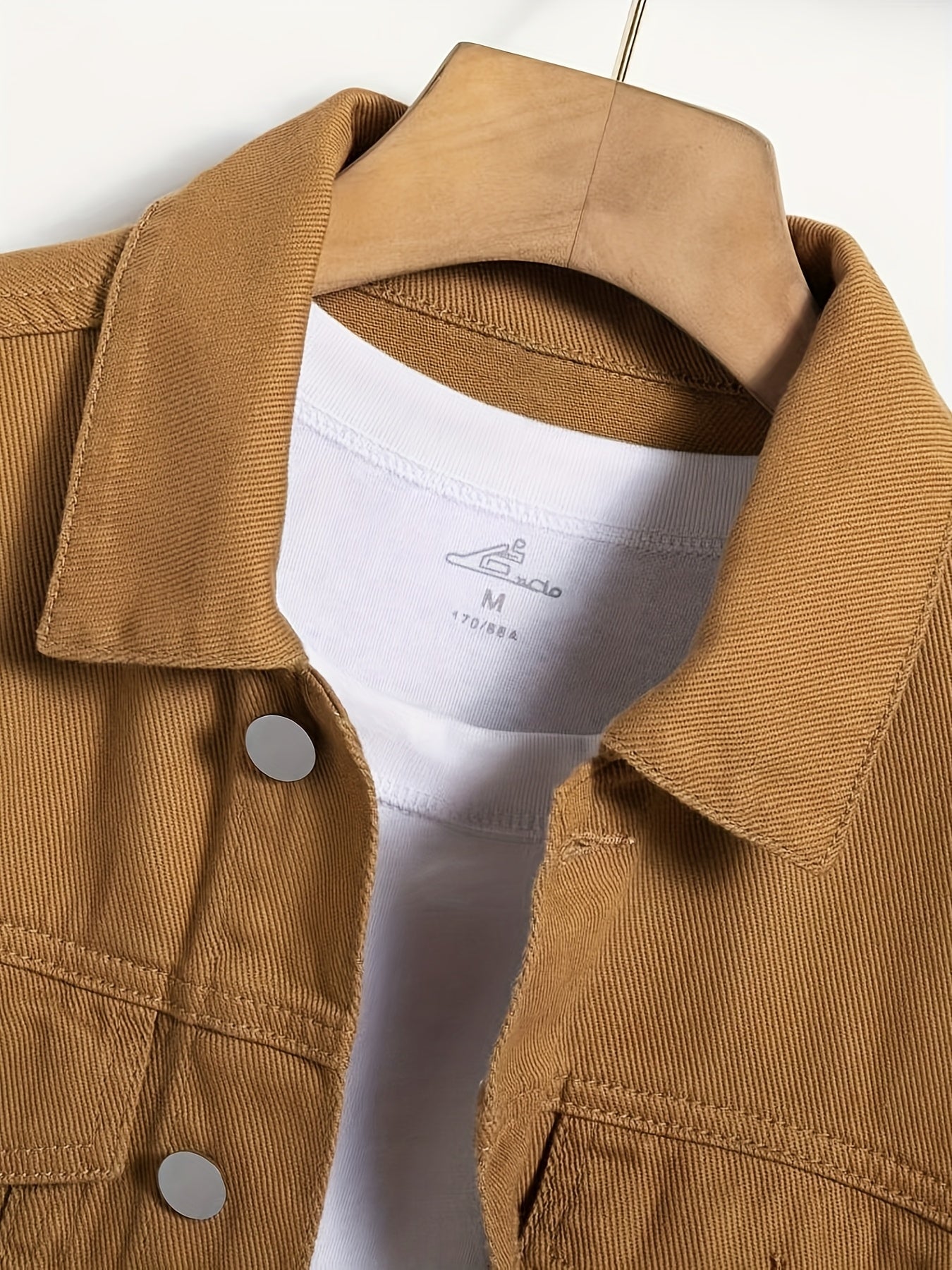 Տղամարդկանց պատահական շագանակագույն ջինսե բաճկոն - երկարաթև, փակվող առջևի կոճակով, կրծքավանդակի գրպաններ, չձգվող, մեքենայով լվացվող, դասական միաձույլ դիզայն, պատահական վերնազգեստ | Դասական բաճկոնների դիզայն | Երկարակյաց ջինսե գործվածք