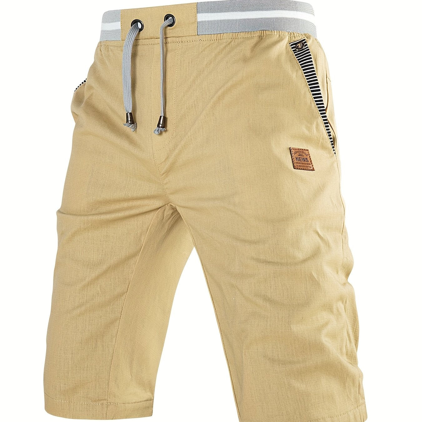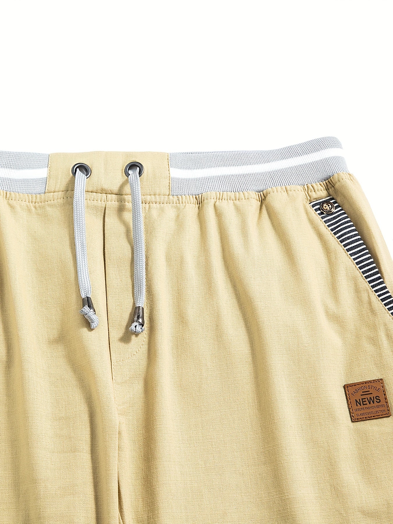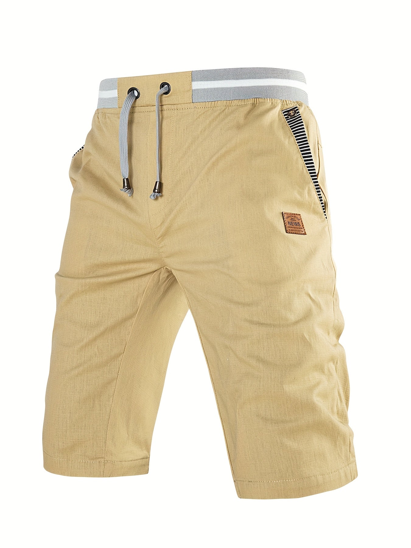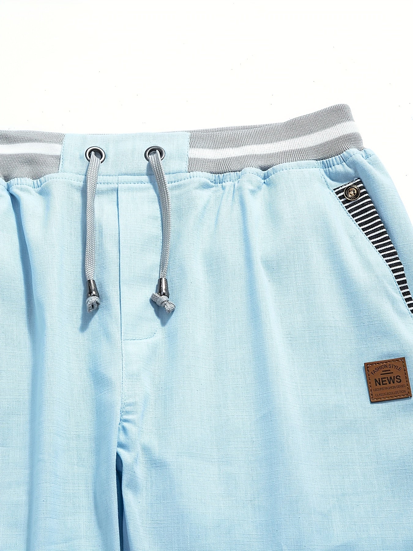 Տղամարդկանց պատահական բամբակյա սպիտակեղենից շորտեր թելերով, առաձգական գոտկատեղով, նորաձև գրպանի ձևավորում, կանոնավոր ձևավորում, թեթև ձգվող, այբուբենային նախշ, 130 գ/մ² տրիկոտաժե գործվածք, ամառային լողափի հագուստ