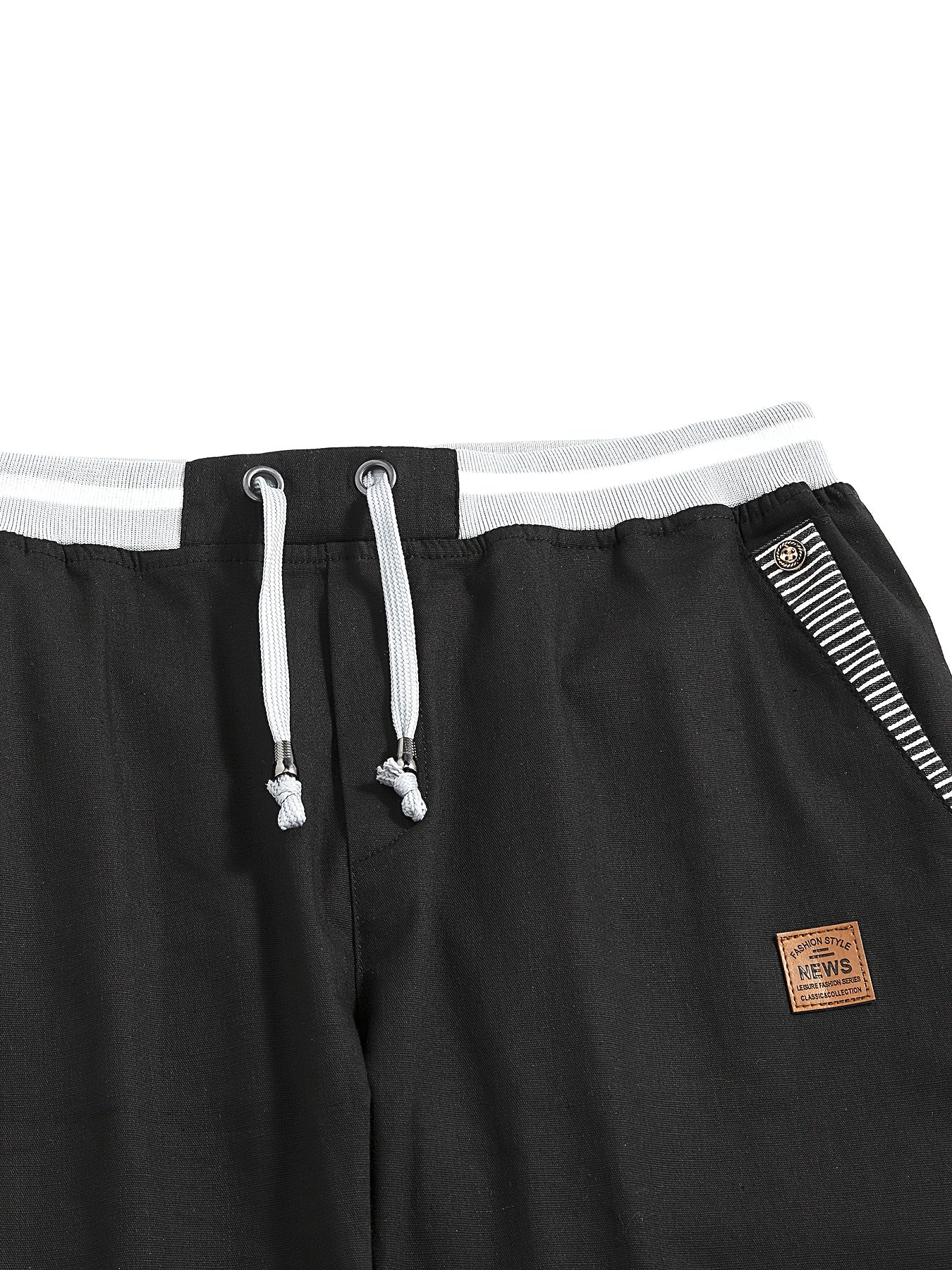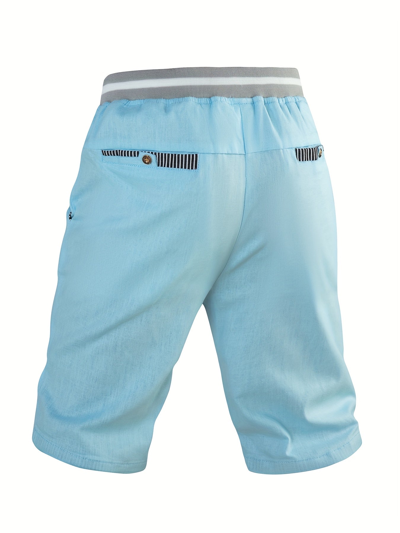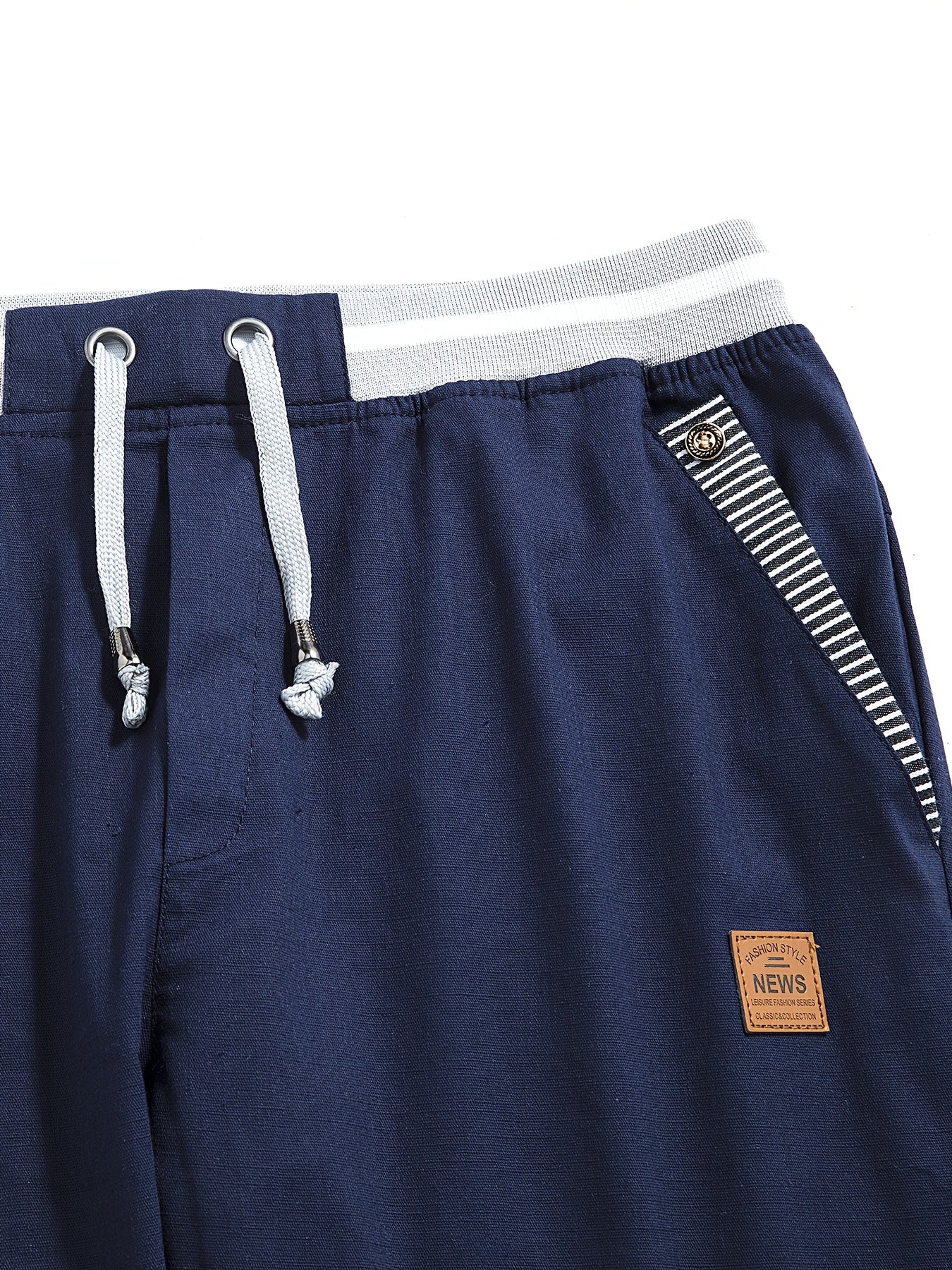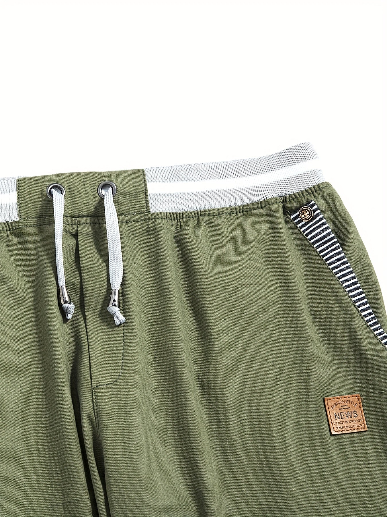 Տղամարդկանց պատահական բամբակյա սպիտակեղենից շորտեր թելերով, առաձգական գոտկատեղով, նորաձև գրպանի ձևավորում, կանոնավոր ձևավորում, թեթև ձգվող, այբուբենային նախշ, 130 գ/մ² տրիկոտաժե գործվածք, ամառային լողափի հագուստ