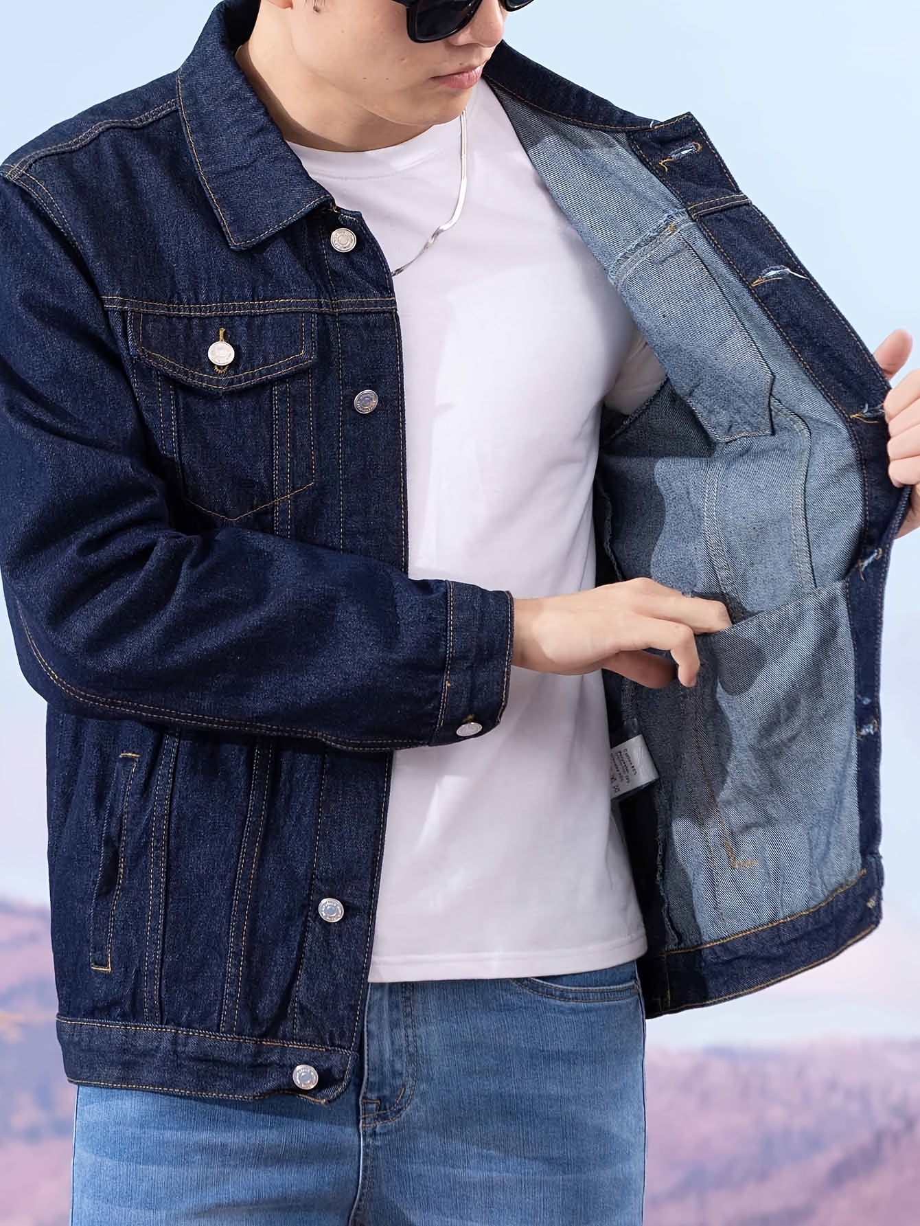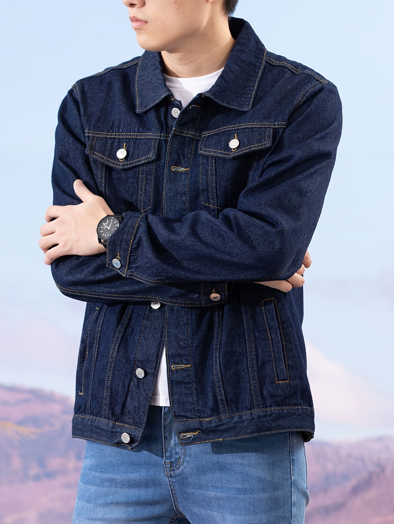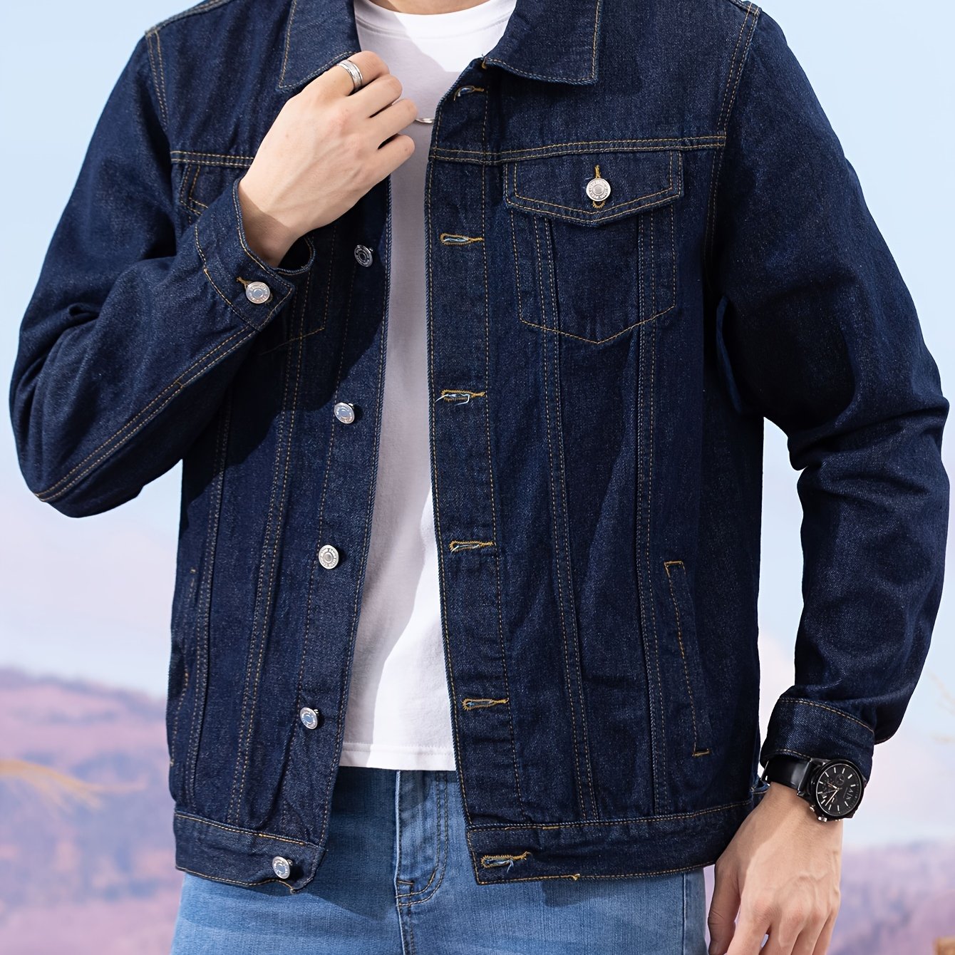 Տղամարդկանց պատահական ջինսե բաճկոն՝ բամբակյա խառնուրդ, երկարաթև, գրպաններով կոճակով, լվացվող մեքենայում՝ կատարյալ գարնան և աշնան համար
