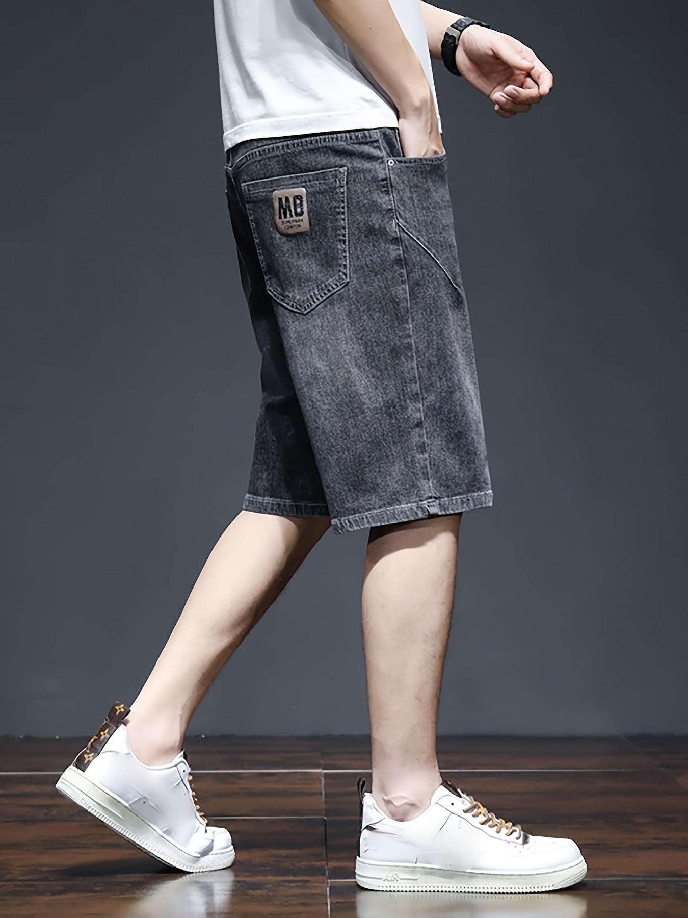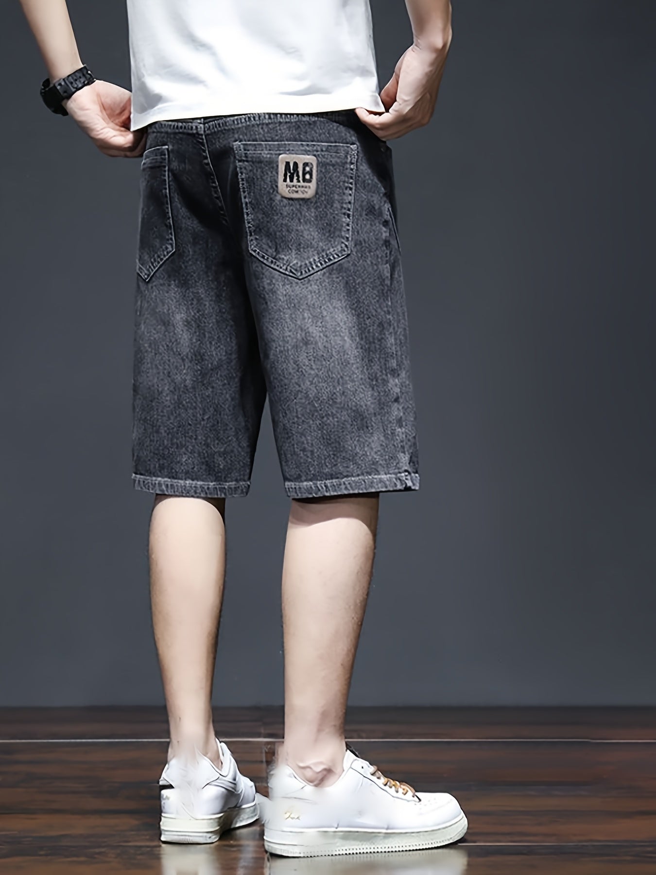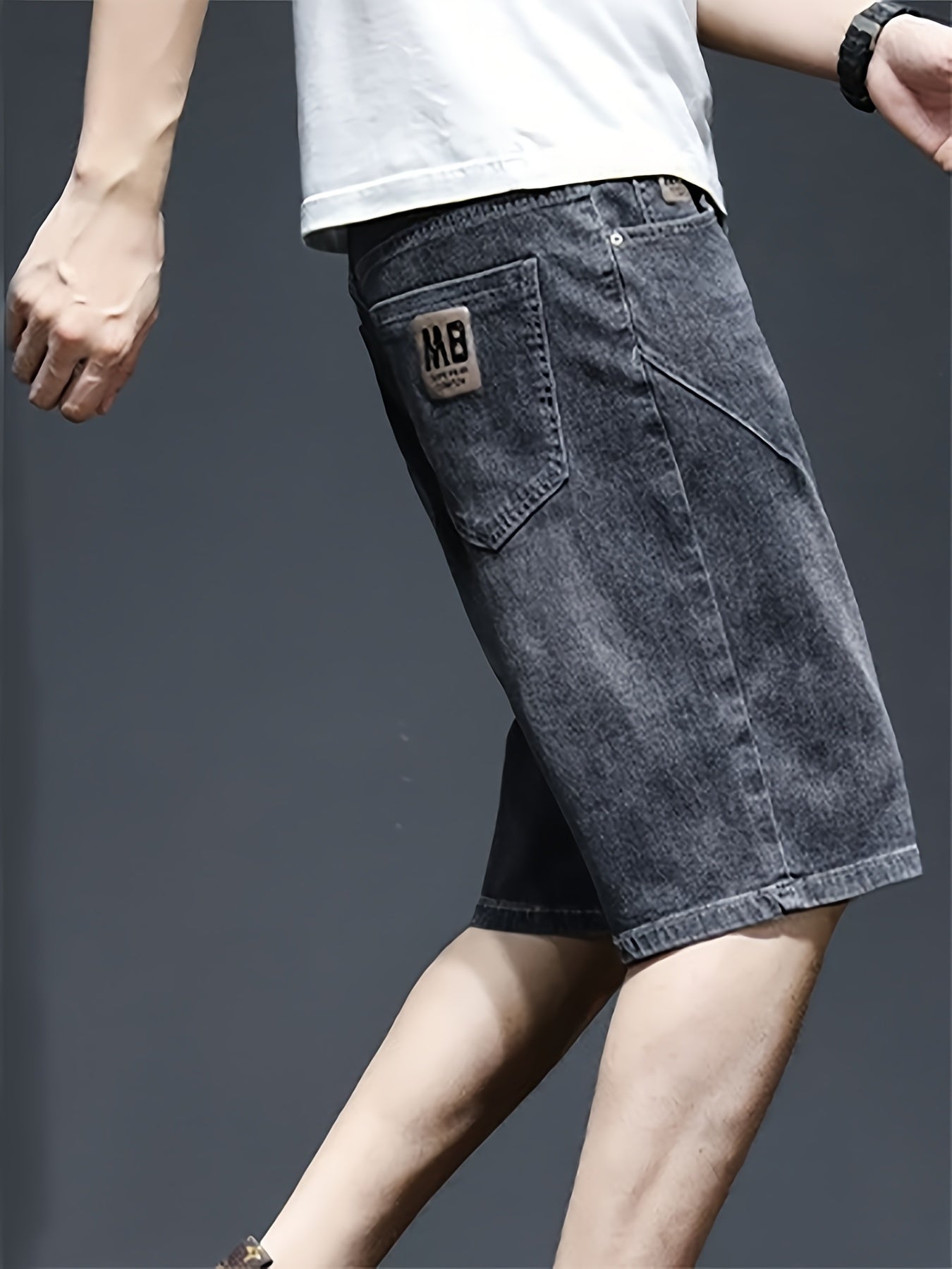 Տղամարդկանց պատահական ջինսե շորտեր, միաձույլ գույնի, թեթև ձգվող, սովորական, կարճ երկարությամբ, բամբակի խառնուրդ (75% բամբակ, 23% պոլիեսթեր, 2% սպանդեքս), հյուսված բերմուդա գրպաններով