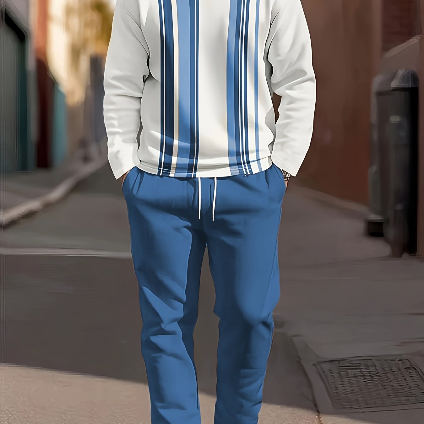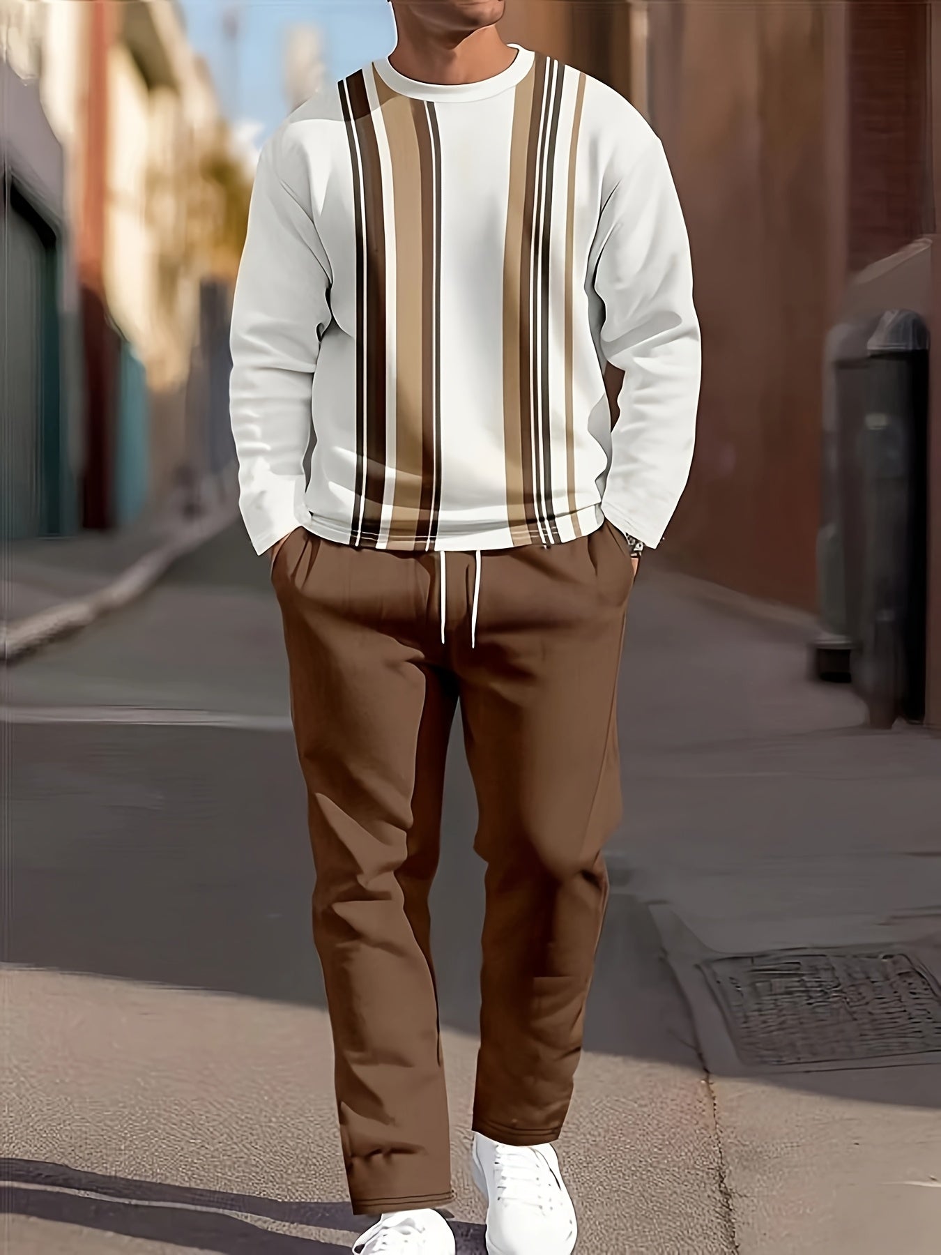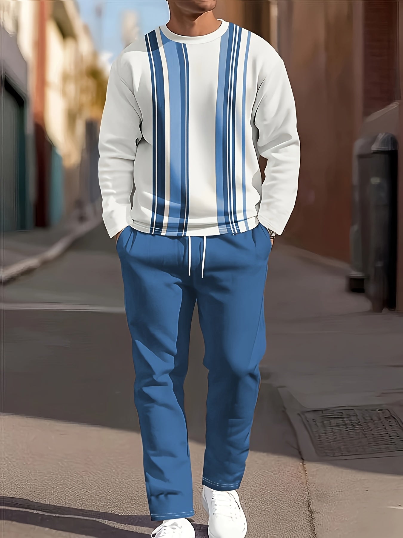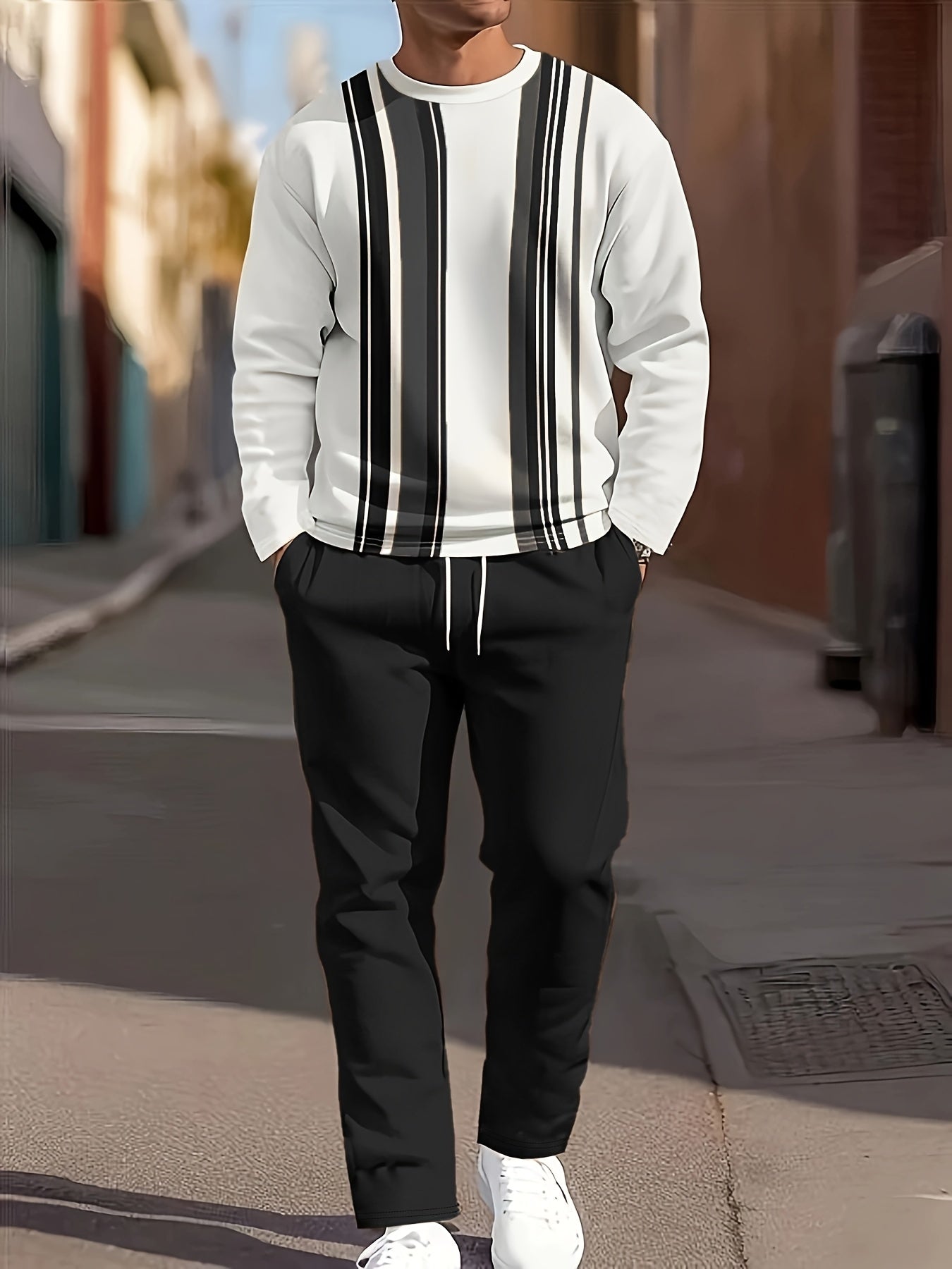 Men's Casual Fashion Round Neck Sweatshirt & Joggers Set - Polyester, Machine Washable, Printed Design for Spring/Fall