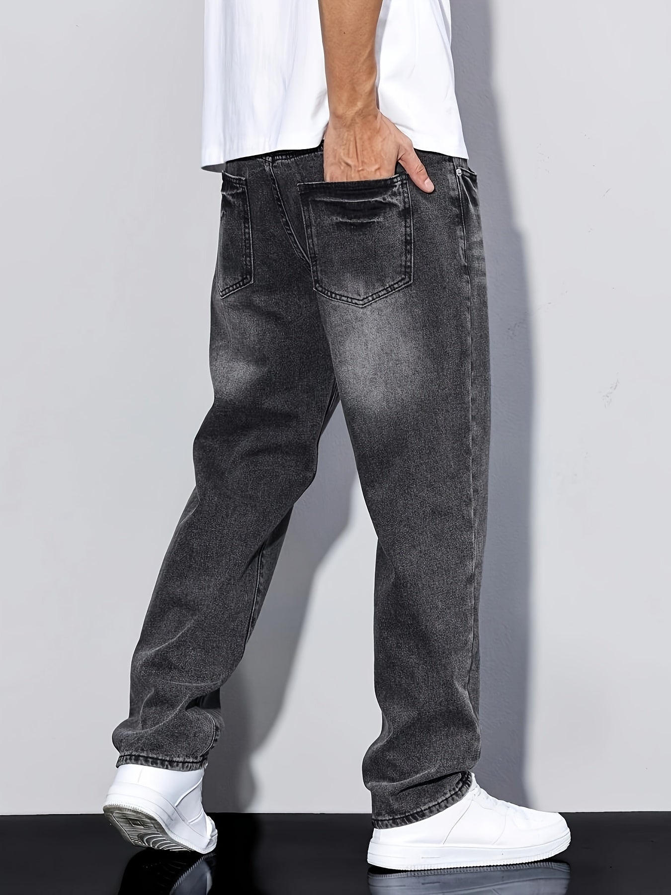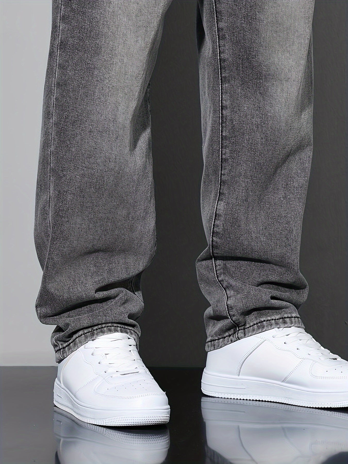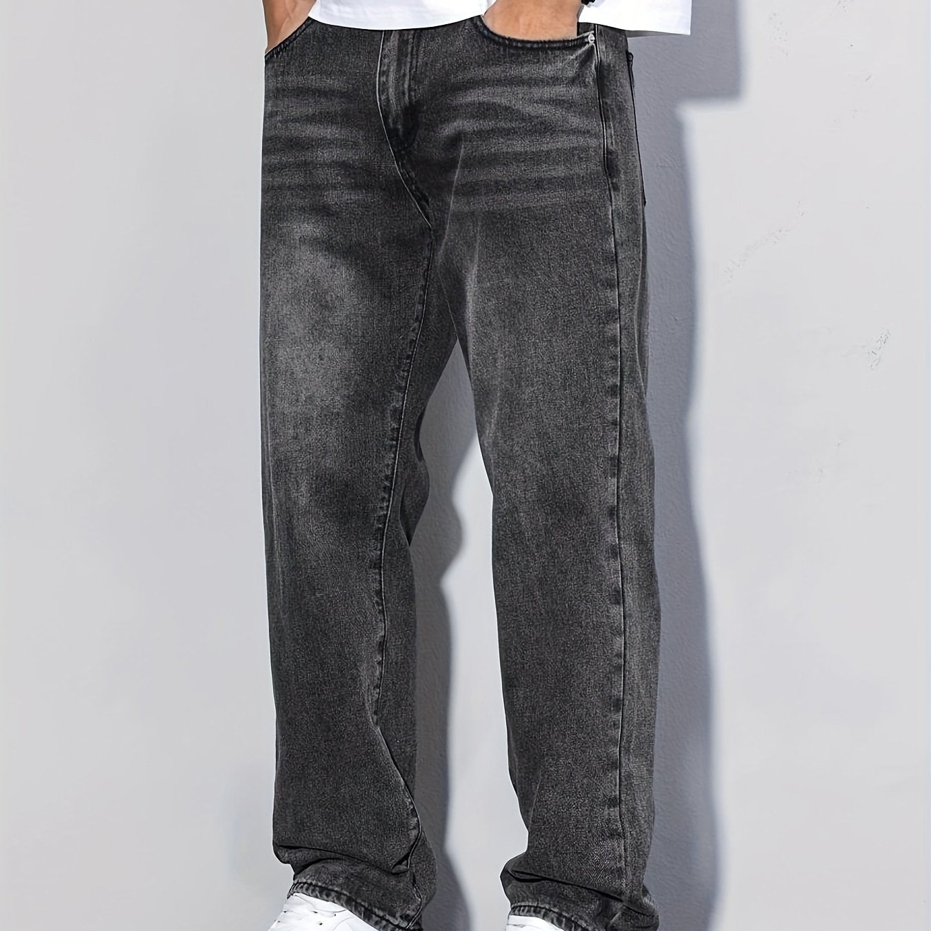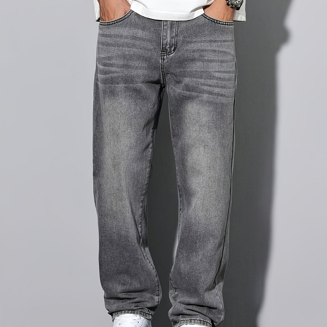Տղամարդկանց առաձգական շիտակ ջինսեր, բաց մոխրագույն լվացվող ջինսեր՝ առաձգական գոտկատեղով և պարանով. հարմարավետ խառնուրդ բոլոր եղանակների համար