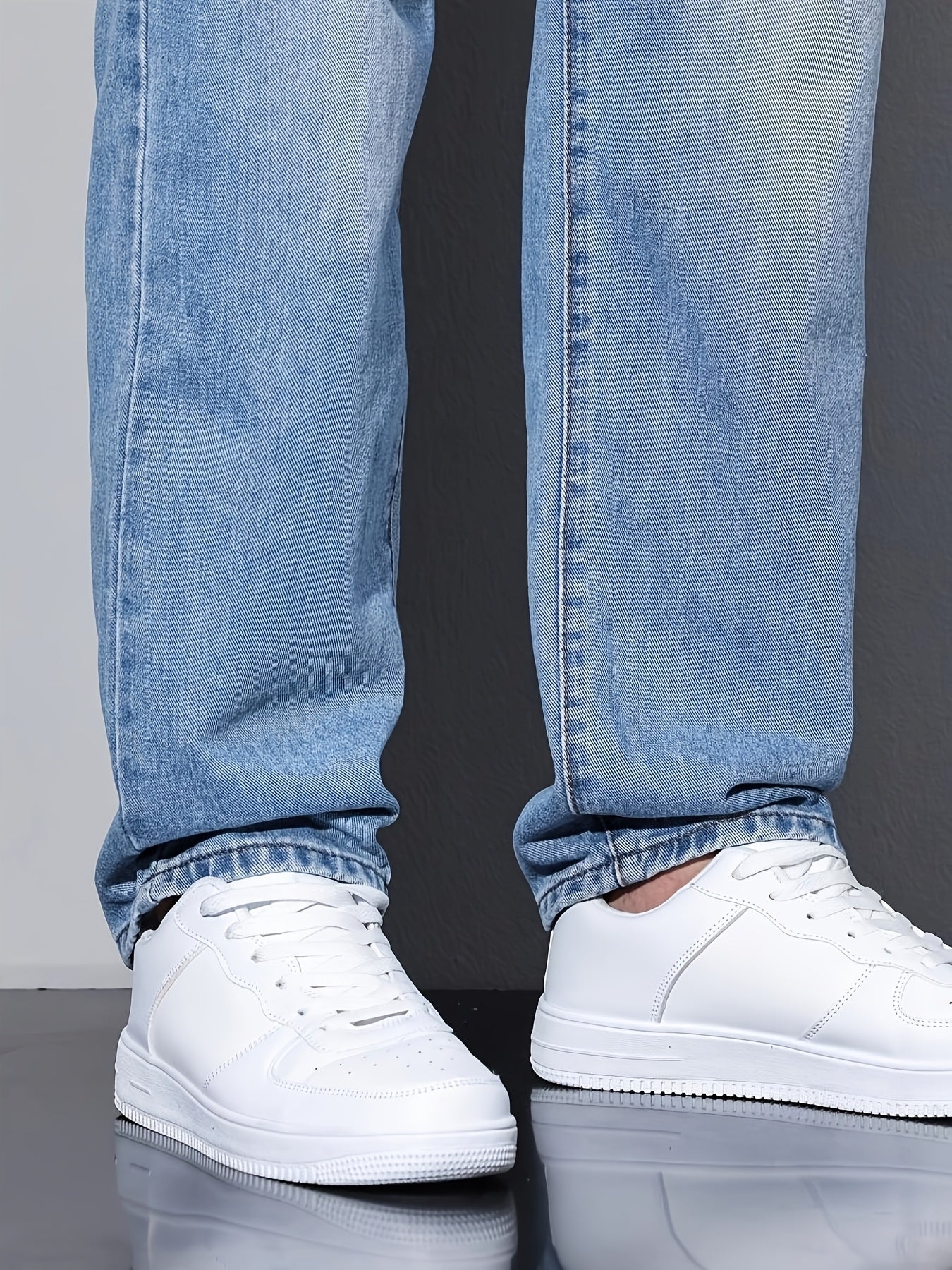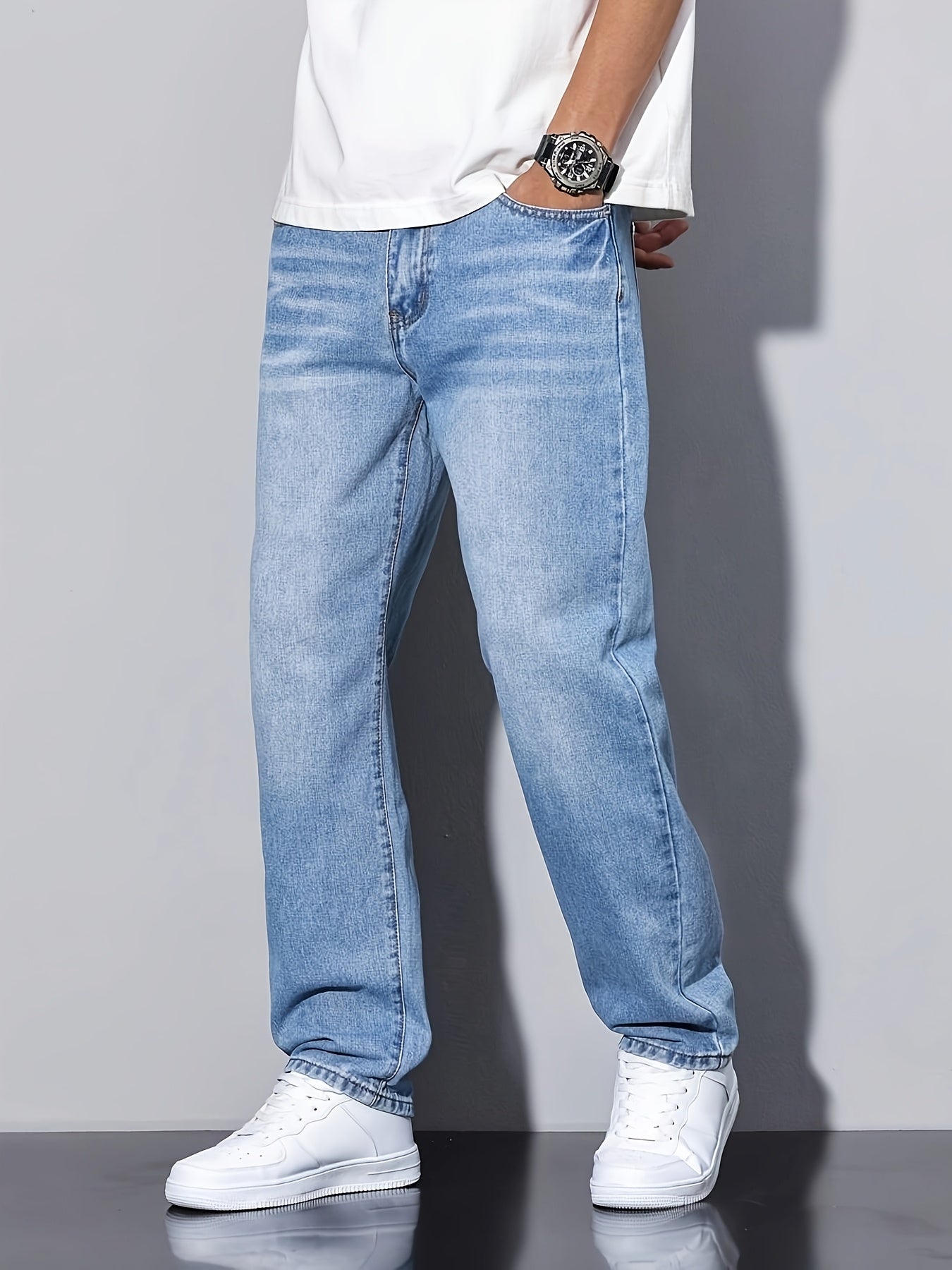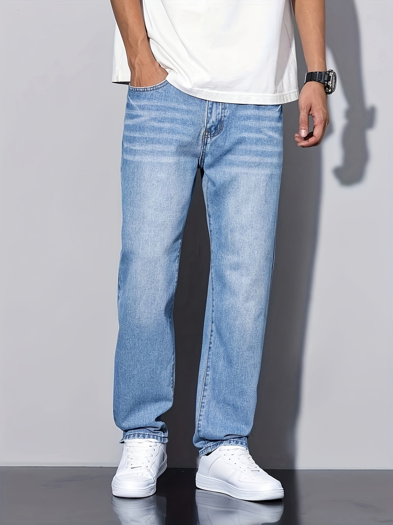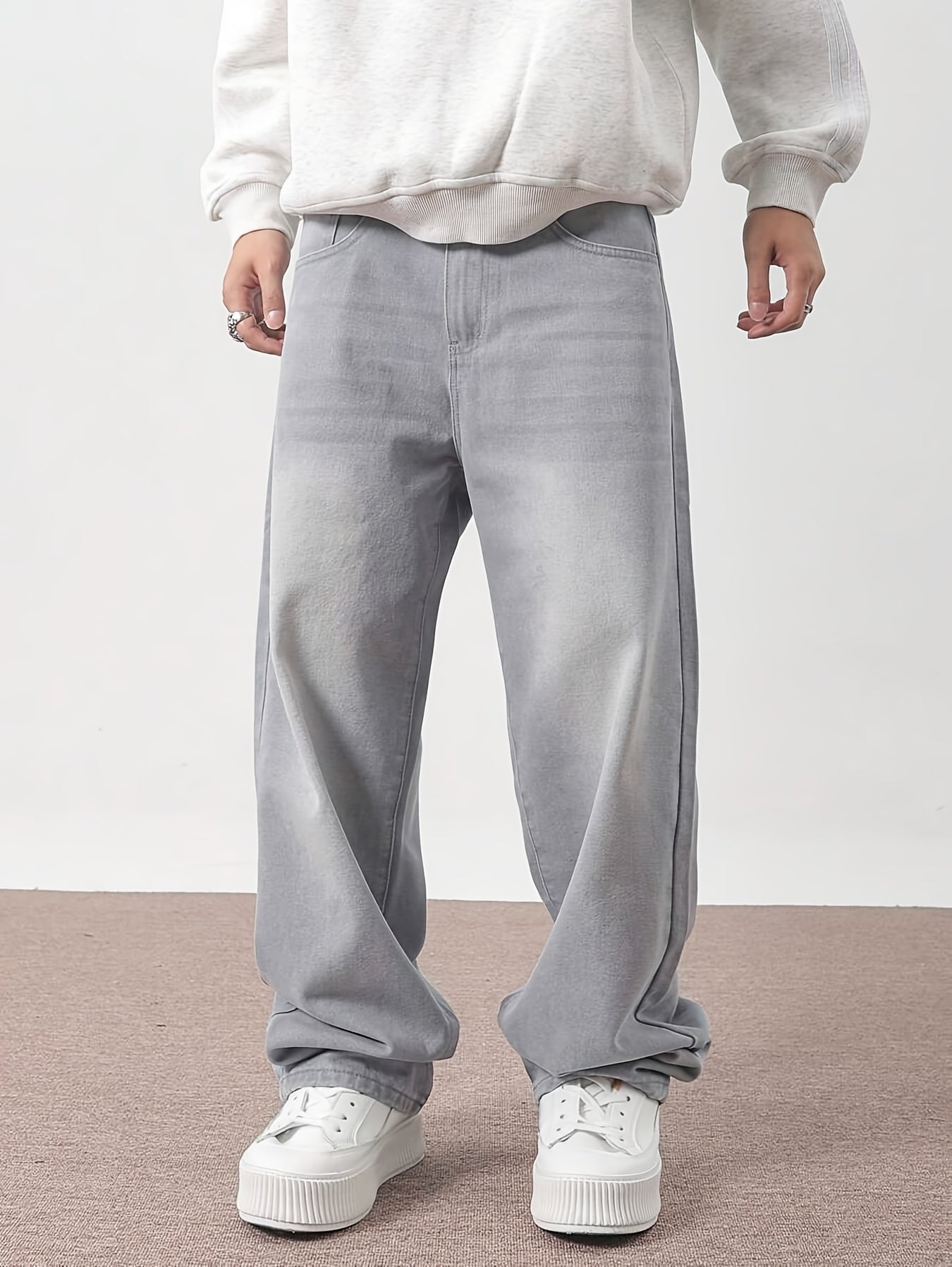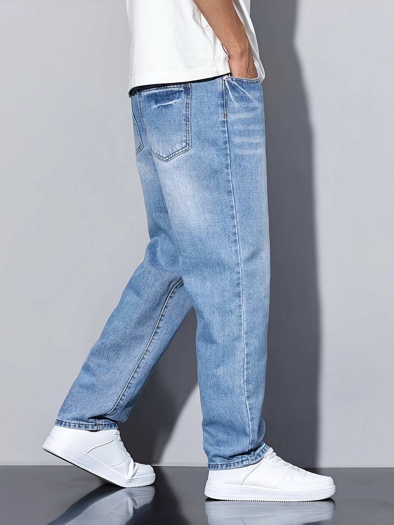Տղամարդկանց առաձգական շիտակ ջինսեր, բաց մոխրագույն լվացվող ջինսեր՝ առաձգական գոտկատեղով և պարանով. հարմարավետ խառնուրդ բոլոր եղանակների համար