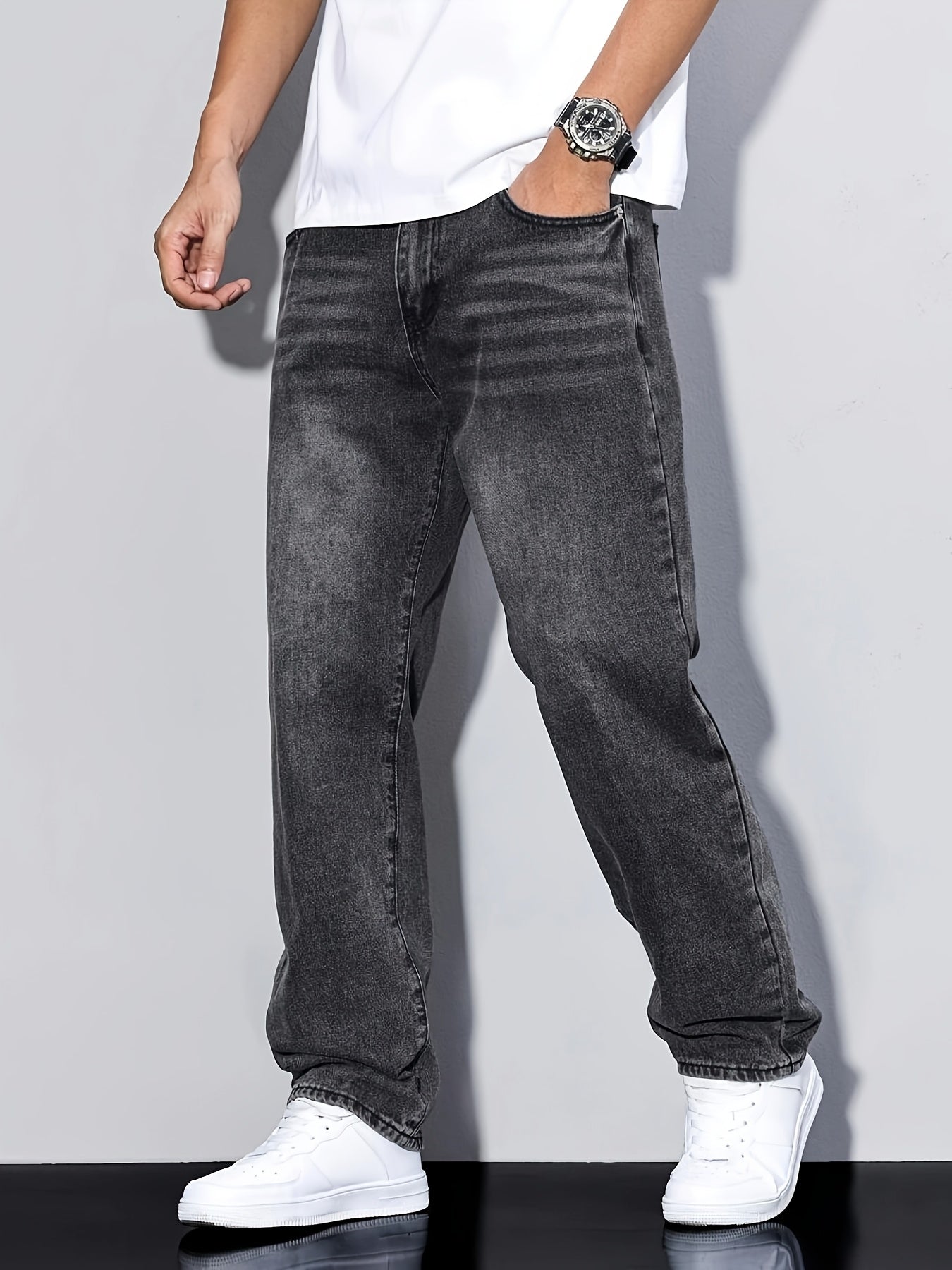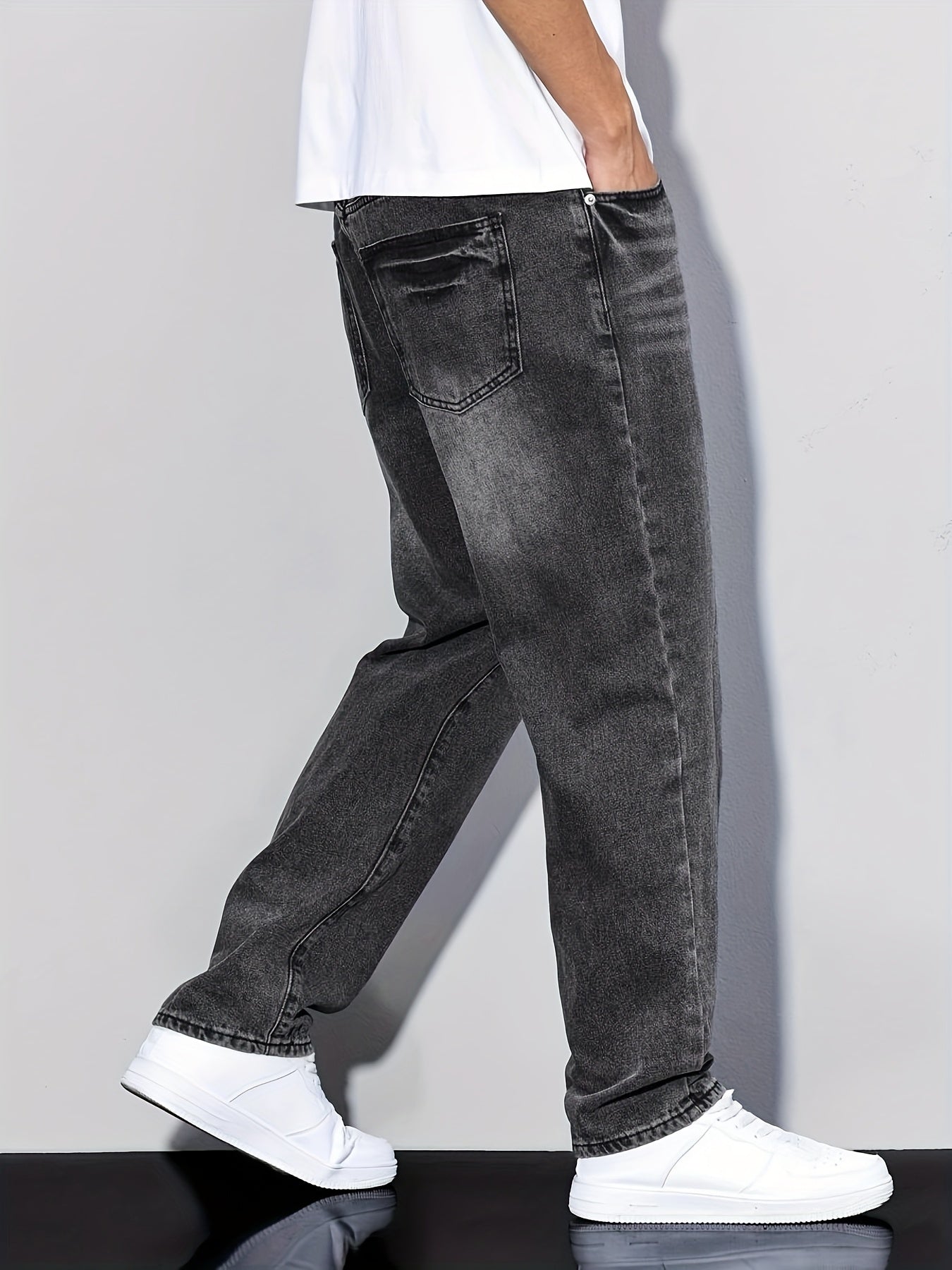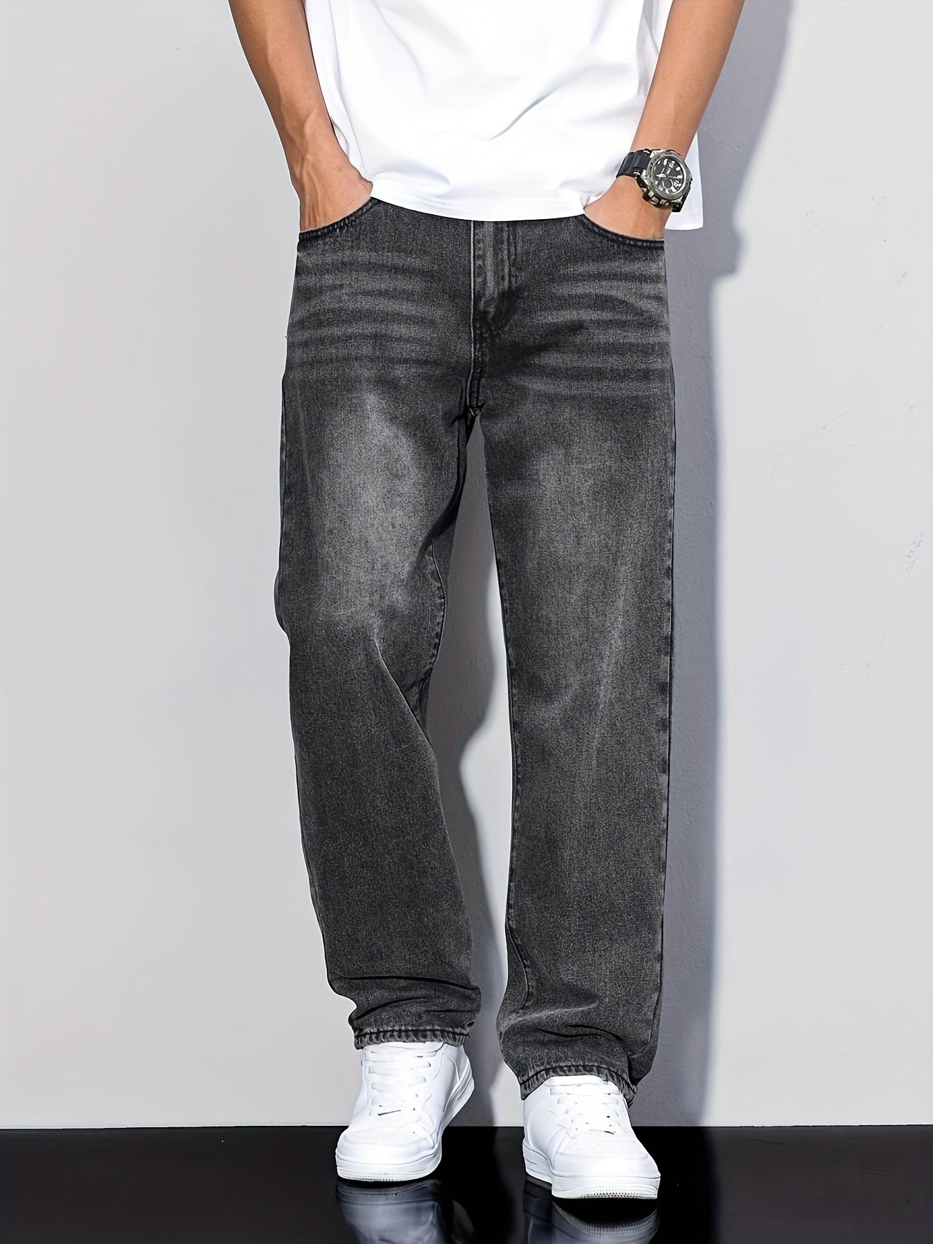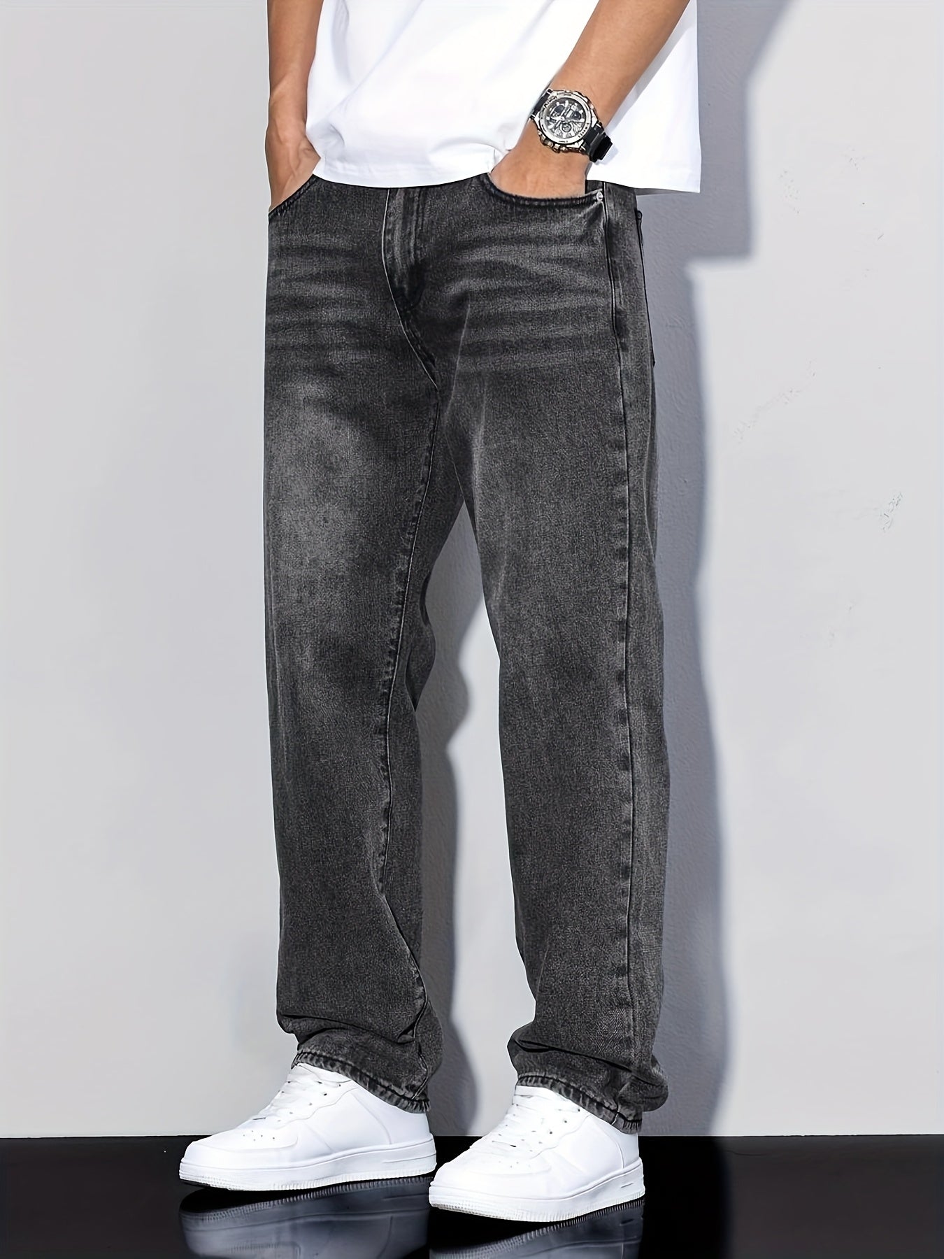 Տղամարդկանց առաձգական շիտակ ջինսեր, բաց մոխրագույն լվացվող ջինսեր՝ առաձգական գոտկատեղով և պարանով. հարմարավետ խառնուրդ բոլոր եղանակների համար