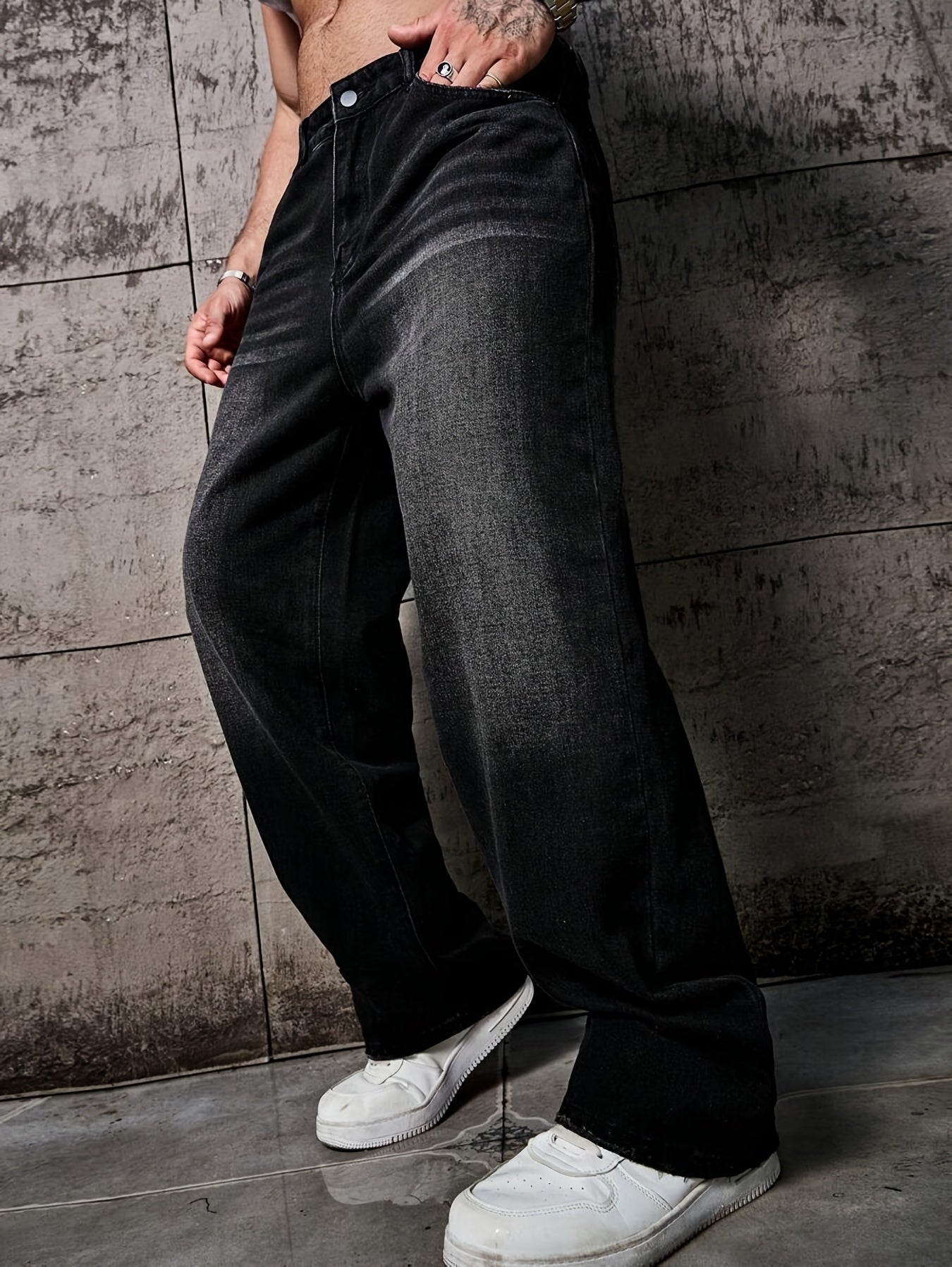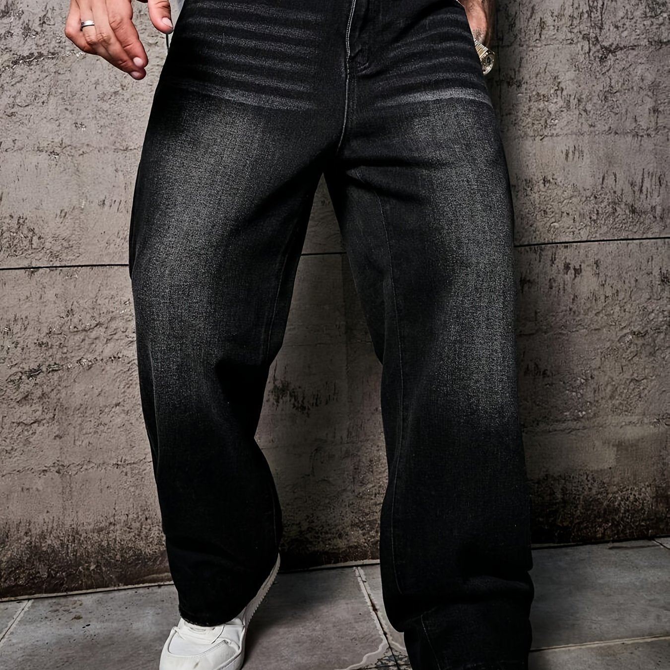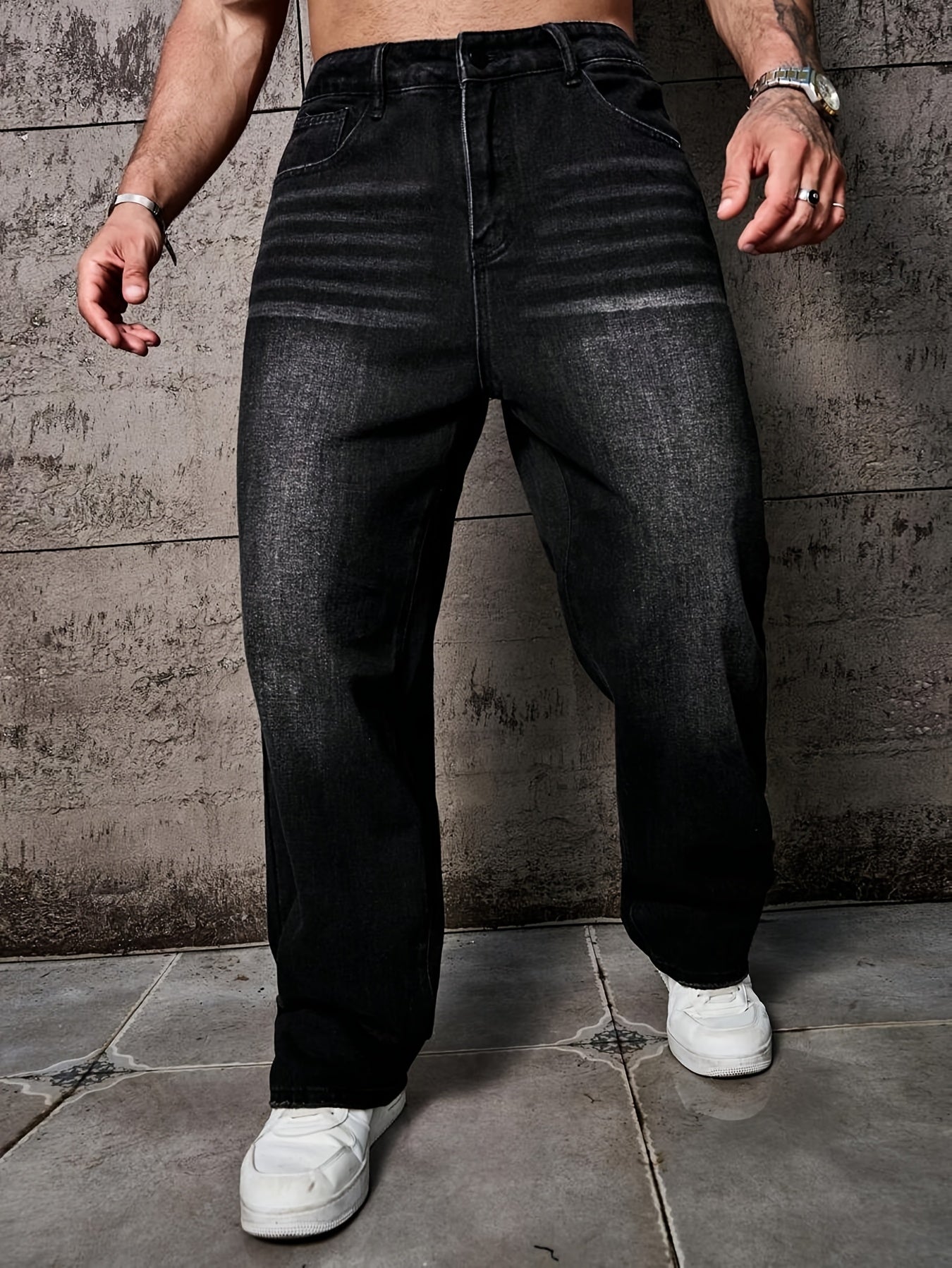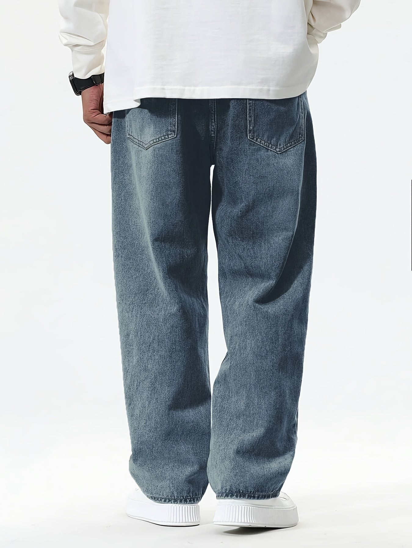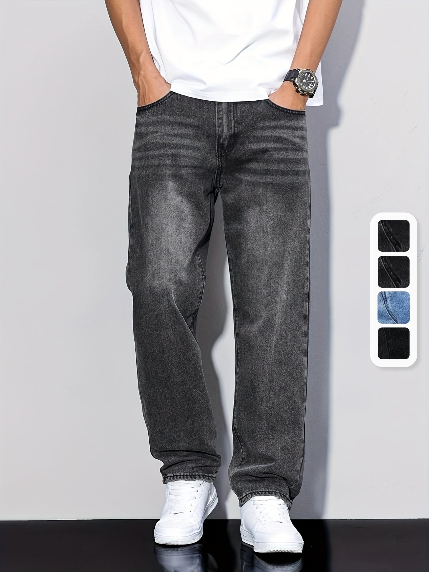 Տղամարդկանց առաձգական շիտակ ջինսեր, բաց մոխրագույն լվացվող ջինսեր՝ առաձգական գոտկատեղով և պարանով. հարմարավետ խառնուրդ բոլոր եղանակների համար