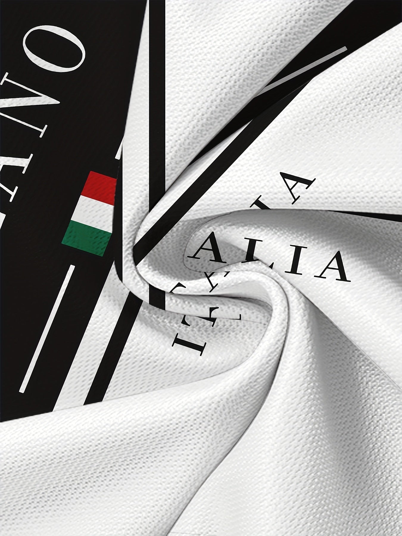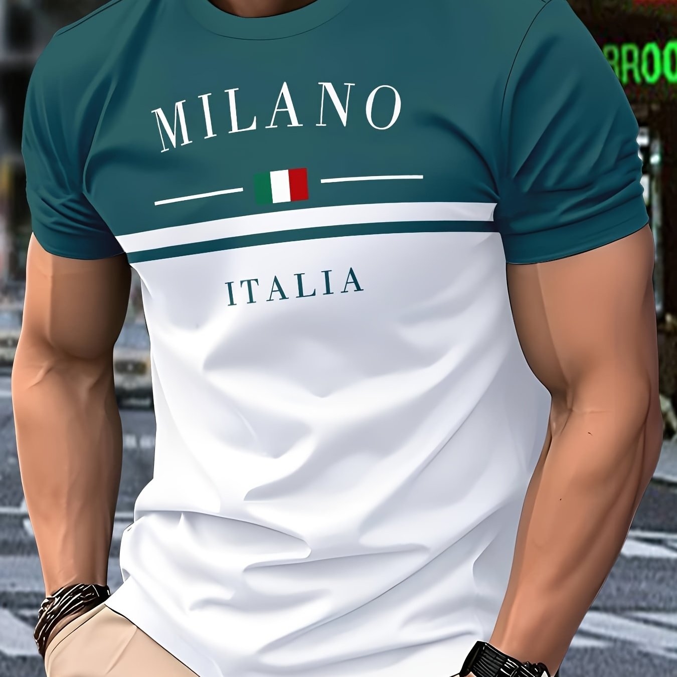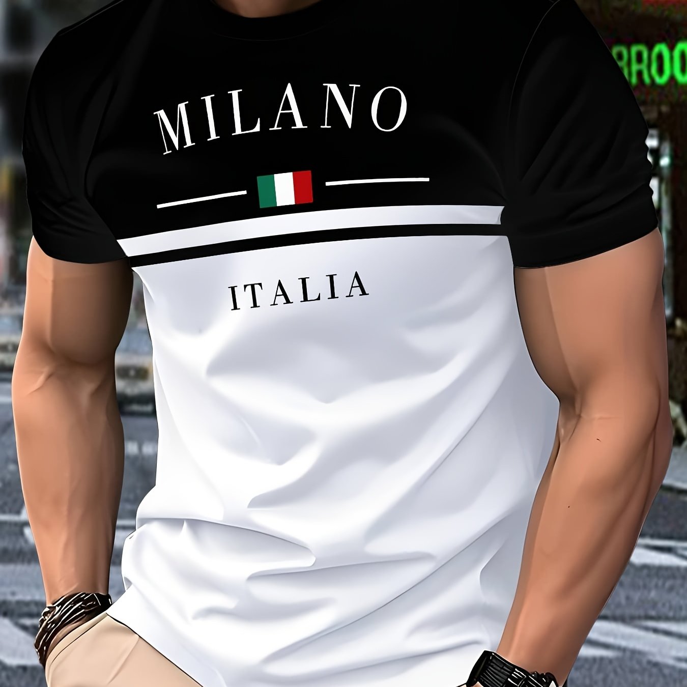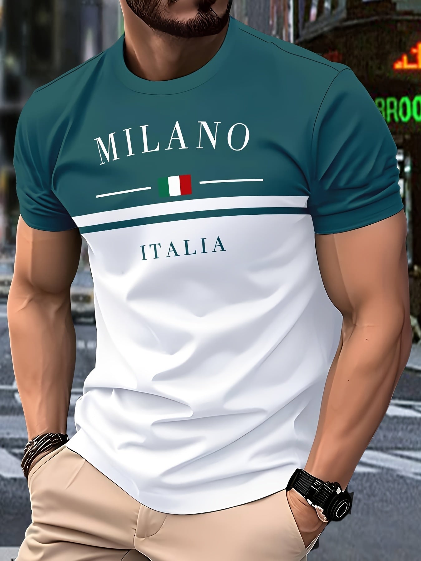 Տղամարդու կարճ թևքով, կլոր վզնոցով, շերտավոր պոլիեսթերային տրիկոտաժե մարզաշապիկ, շնչող, 110 գ/մ², թեթևակի ձգվող, կանոնավոր չափսերով, հարթ հյուսվածքով, հարմար է ամառային հանգստյան օրերին կրելու համար։