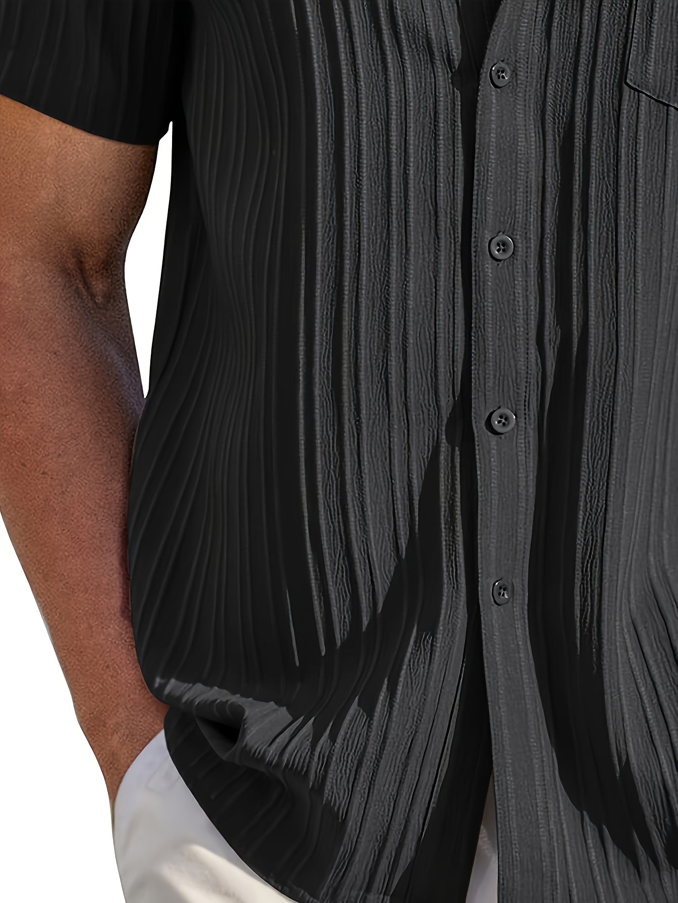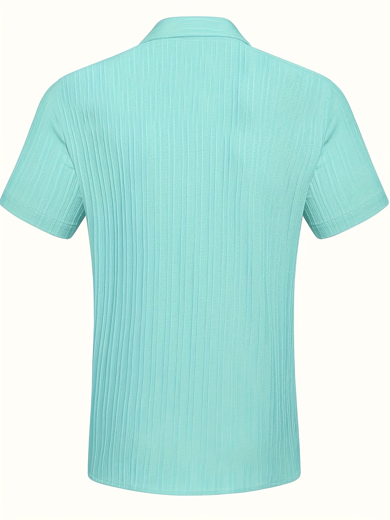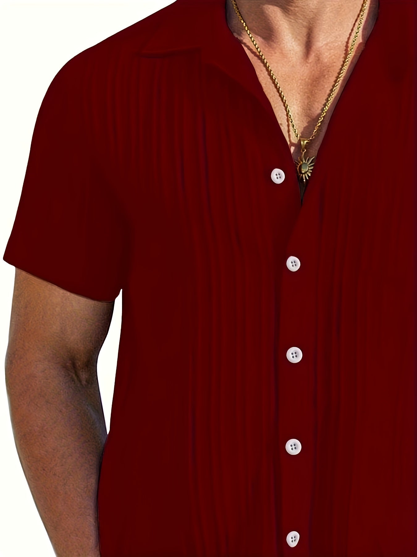 Տղամարդկանց պատահական կարճաթև վերնաշապիկ, 100% պոլիեսթեր պինդ գույնի օձիքի կոճակով հյուսված գործվածք, բոլոր սեզոնային սովորական, կարճ թևերի կոճակը վեր