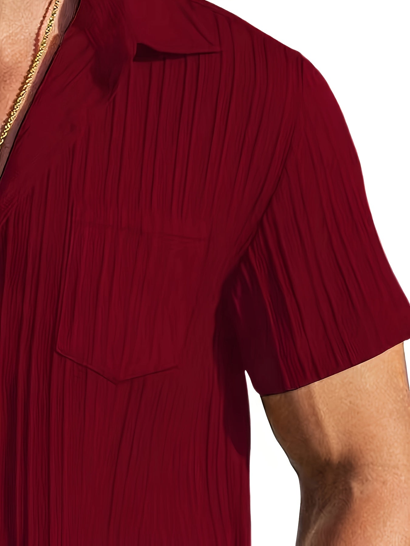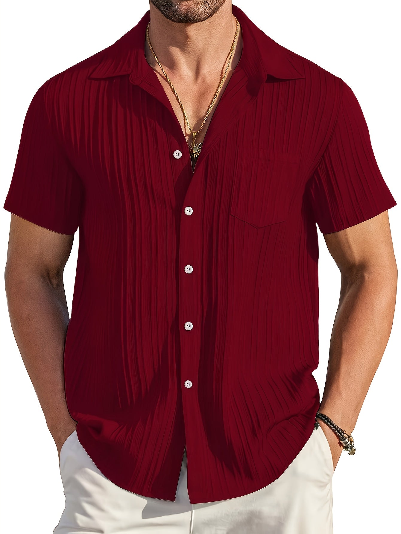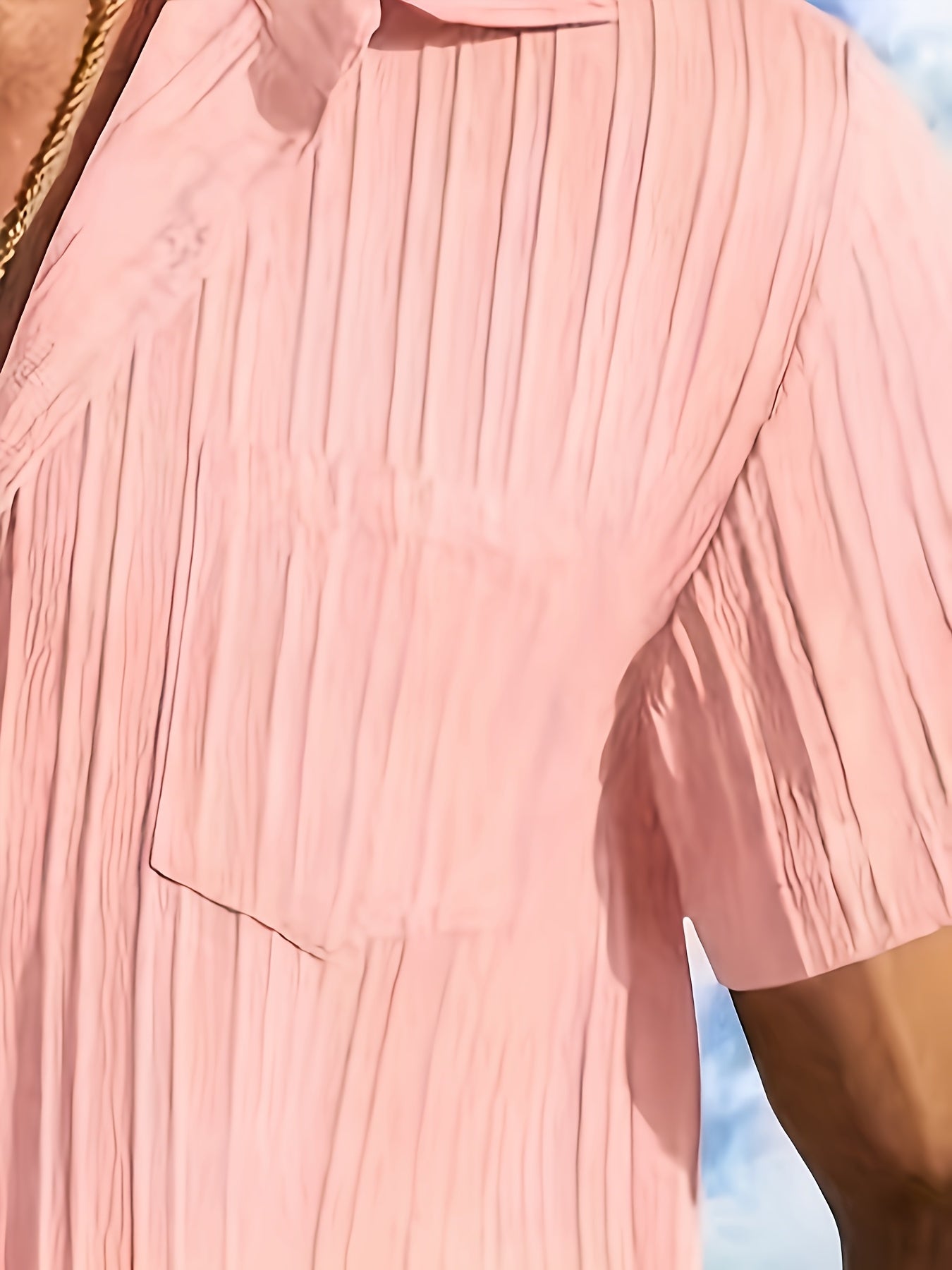 Տղամարդկանց պատահական կարճաթև վերնաշապիկ, 100% պոլիեսթեր պինդ գույնի օձիքի կոճակով հյուսված գործվածք, բոլոր սեզոնային սովորական, կարճ թևերի կոճակը վեր
