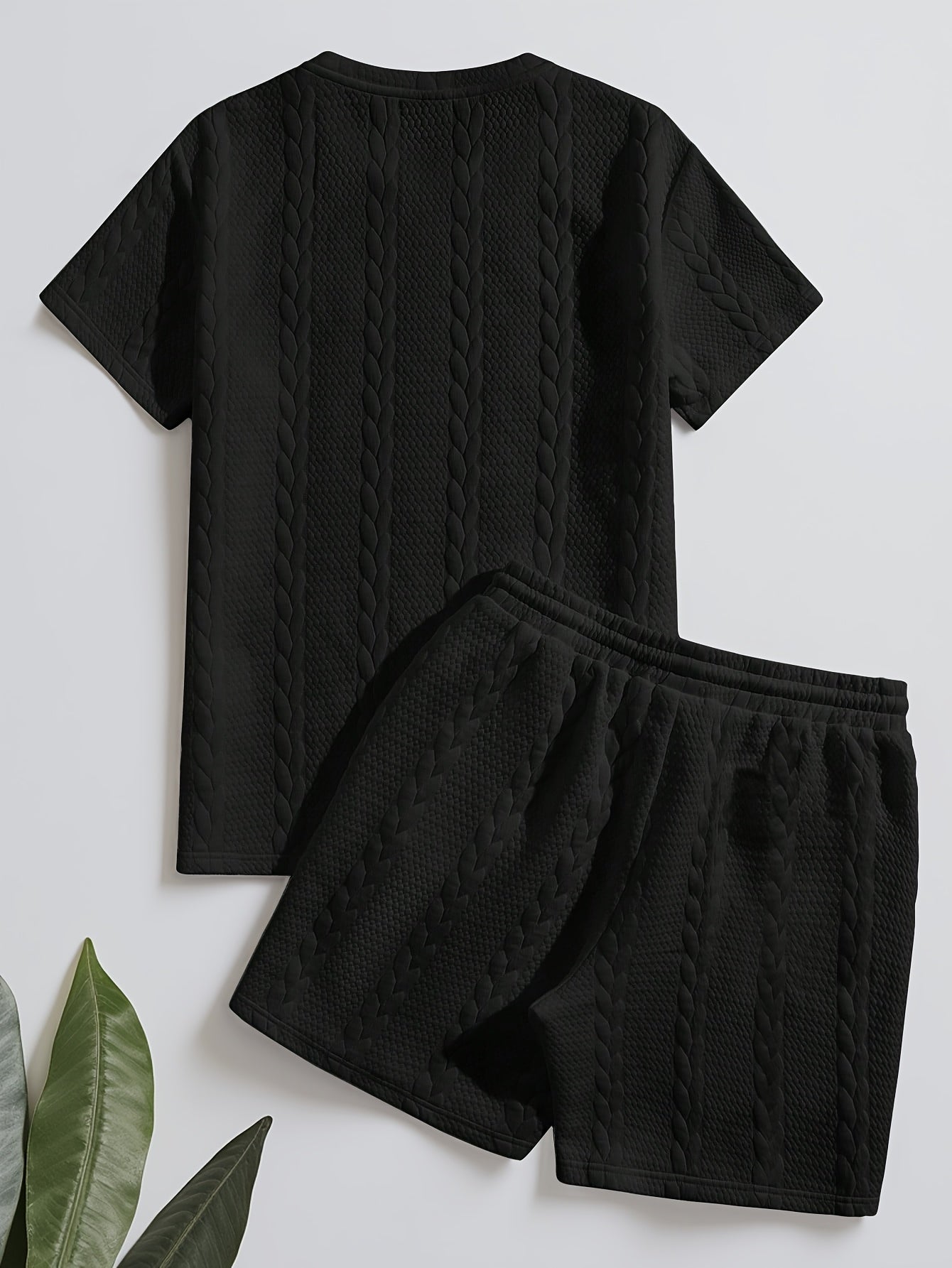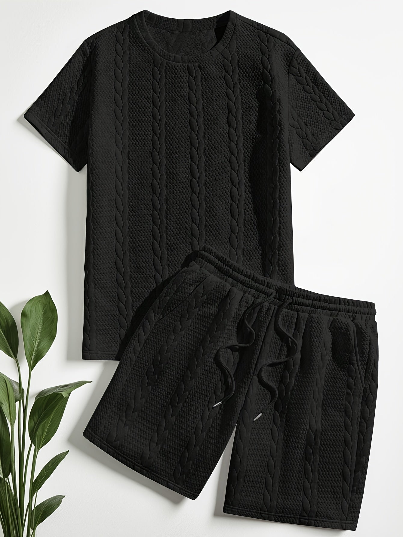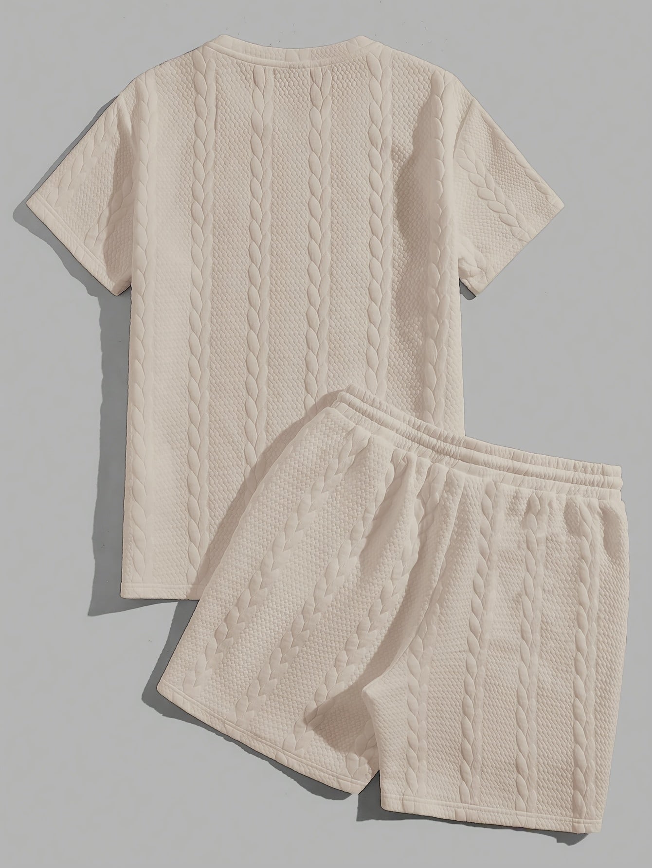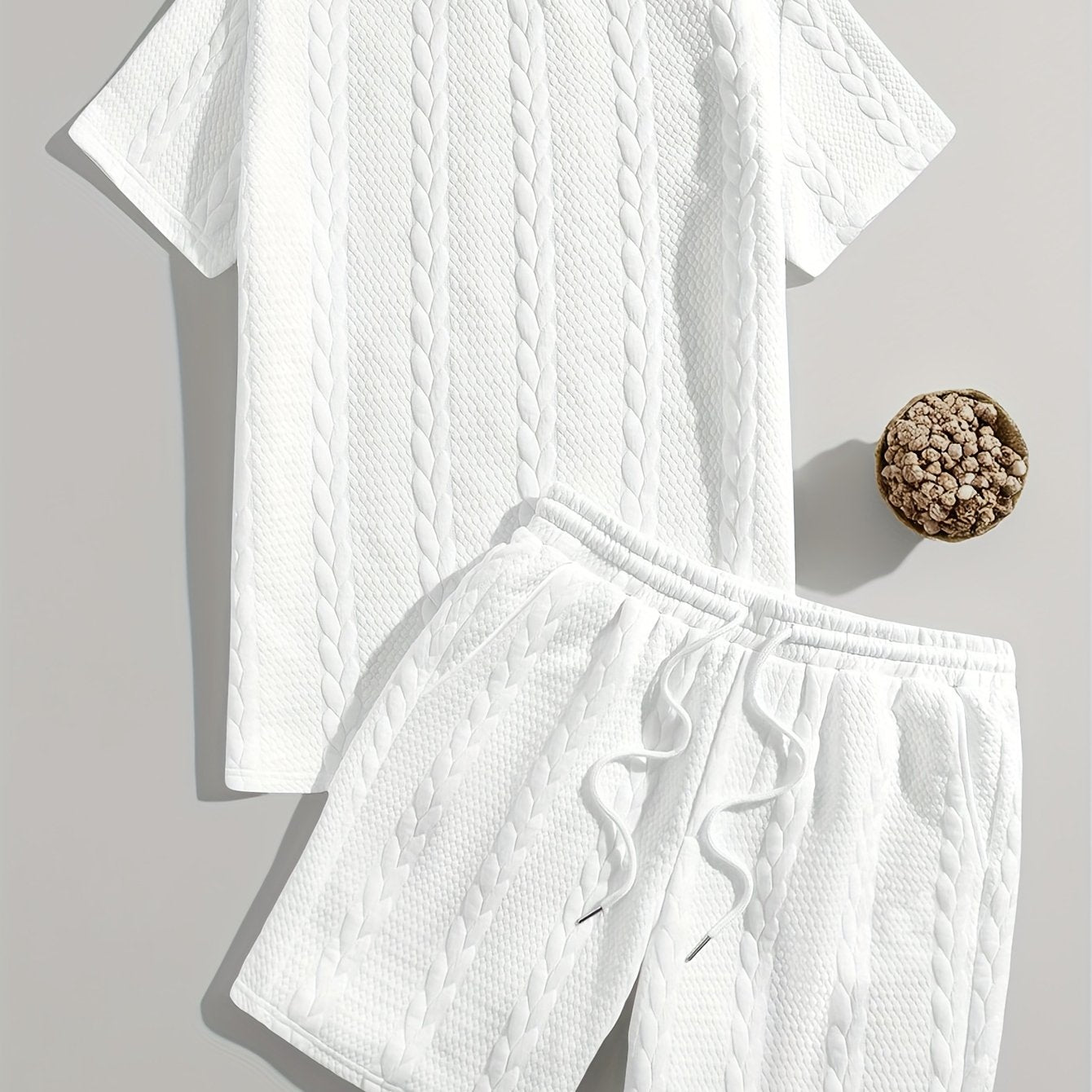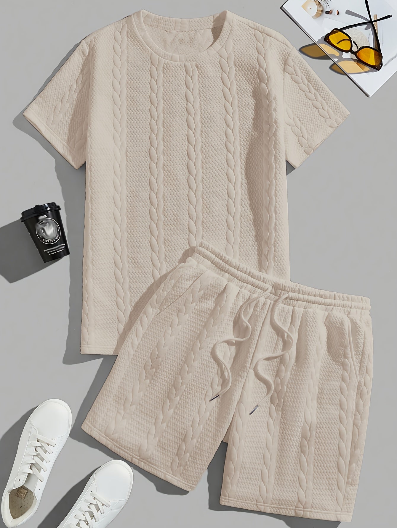 Men'S Casual Short Sleeve T-Shirt and Shorts Set - Knit, Light Gray, Two-Piece, All-Season Comfort, Drawstring Waist, Casual Style, Allseason Comfortwear | Casual Style Set | Knit Texture, Thick