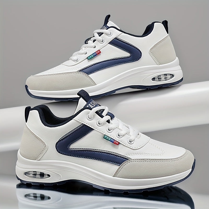 Men's Casual Skate Sneakers - Low-Top Breathable PU & Fabric Upper, Durable PVC Sole, Black/White Colorway for All-Season Urban Streetwear & Light Sports, Everyday Footwear | Sleek Sneaker Design | Fabric Lined Interior, Skat