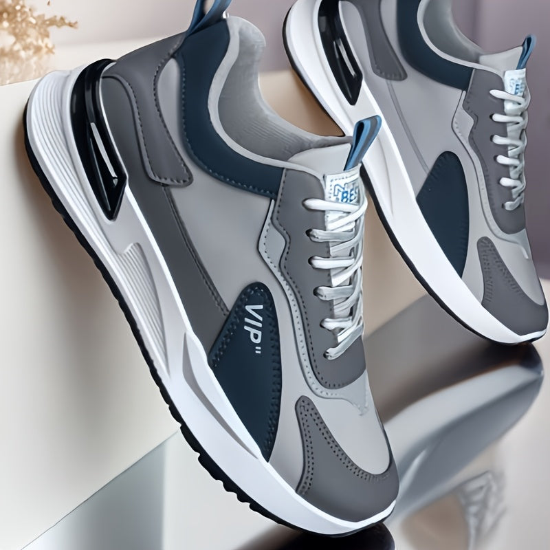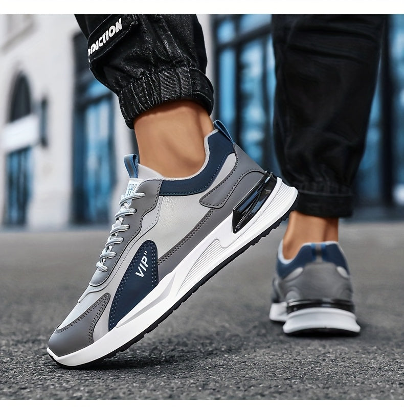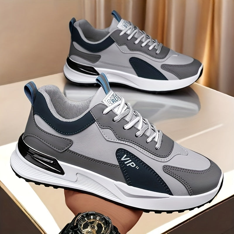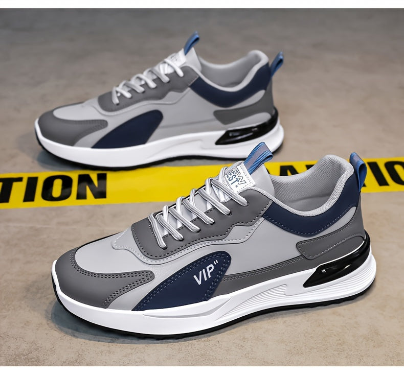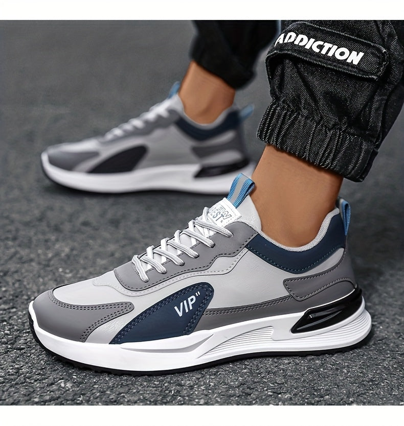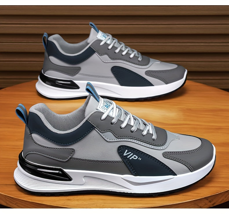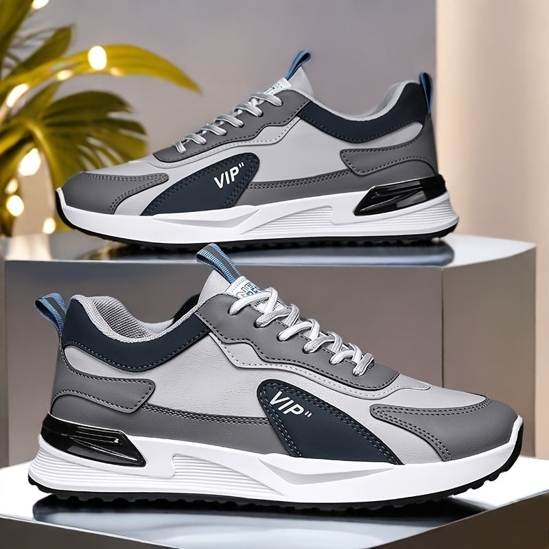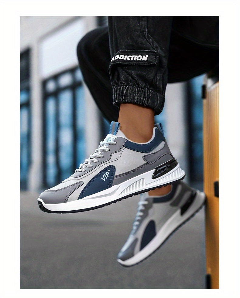 Men'S Casual Sneakers - Low Top, Lace-Up, All-Season Athletic Shoes with "VIP" Patch, White & Gray, Stylish Running & Hiking Boots, Casual Footwear | Modern Casual Sneakers | Durable Footwear