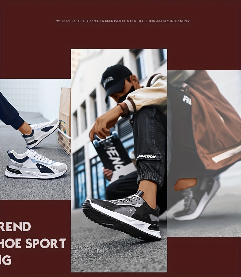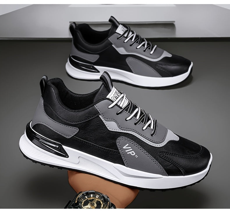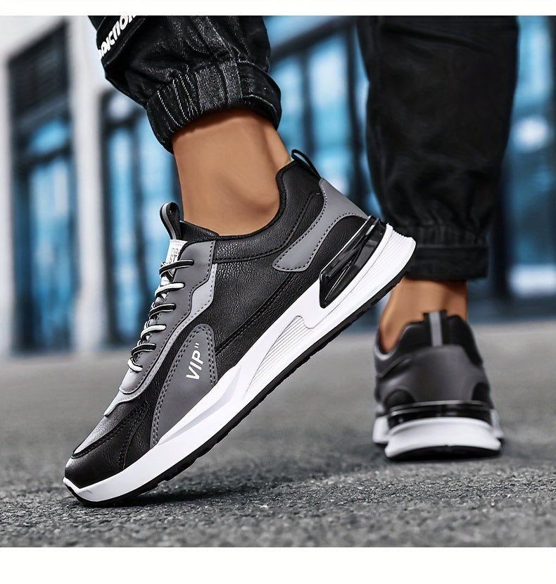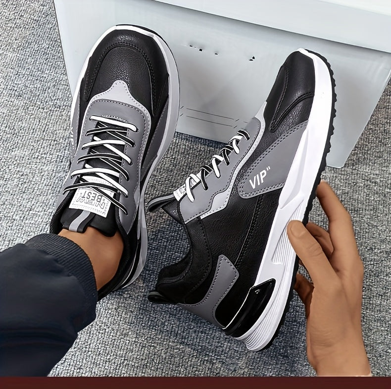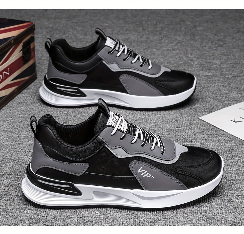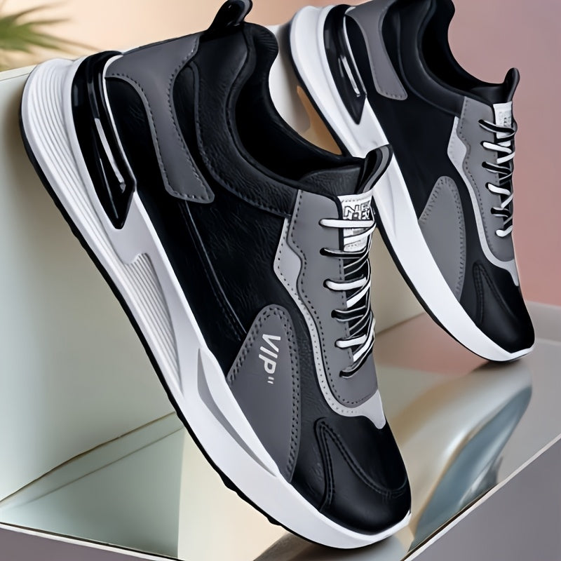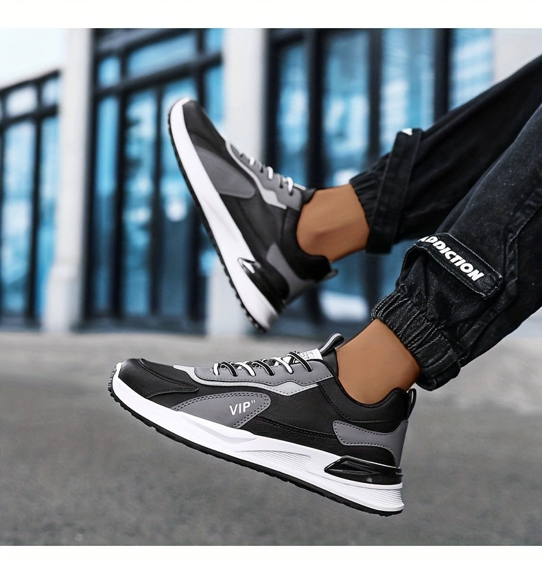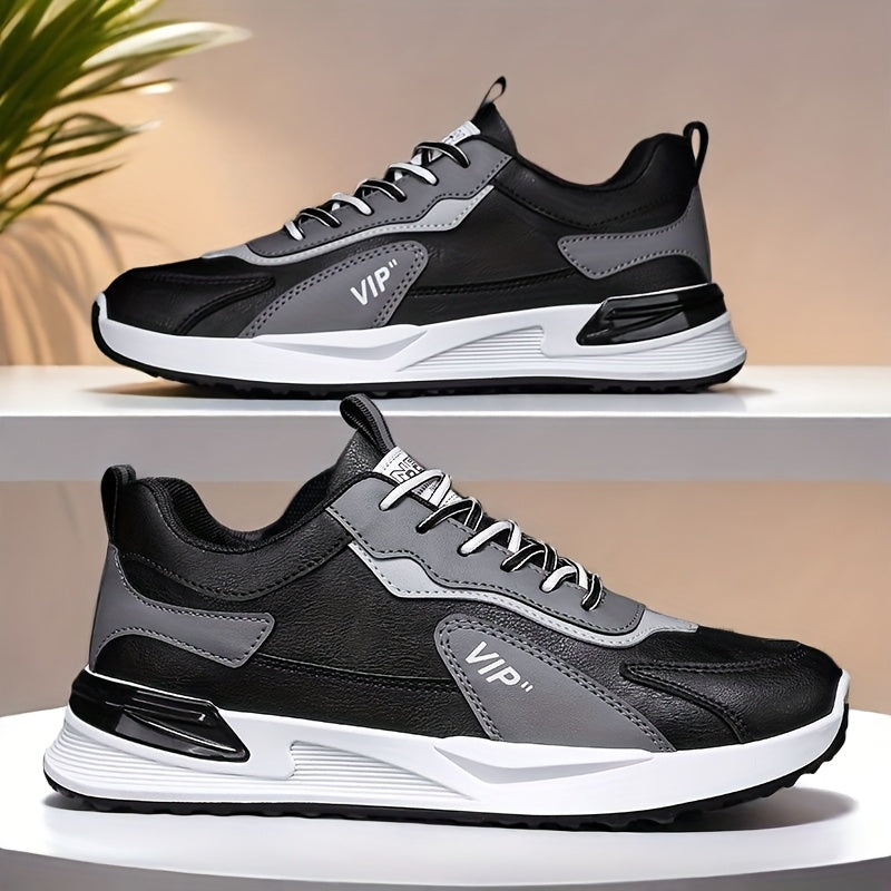 Men'S Casual Sneakers - Low Top, Lace-Up, All-Season Athletic Shoes with "VIP" Patch, White & Gray, Stylish Running & Hiking Boots, Casual Footwear | Modern Casual Sneakers | Durable Footwear